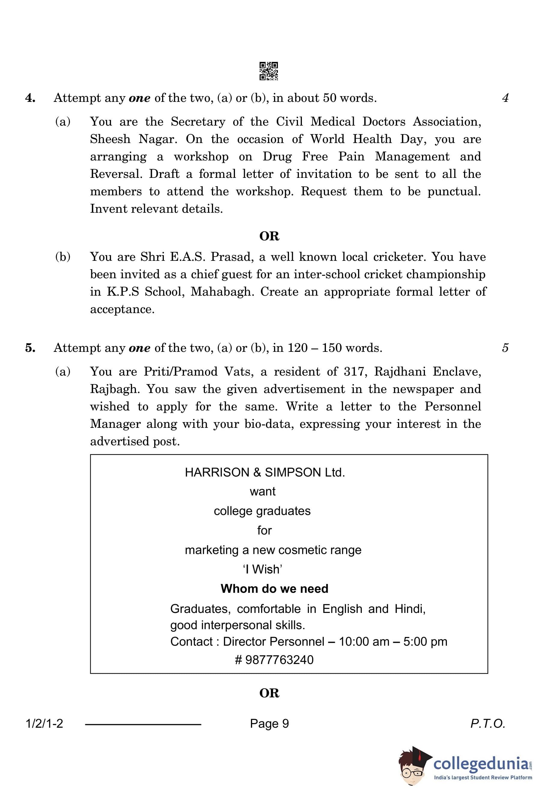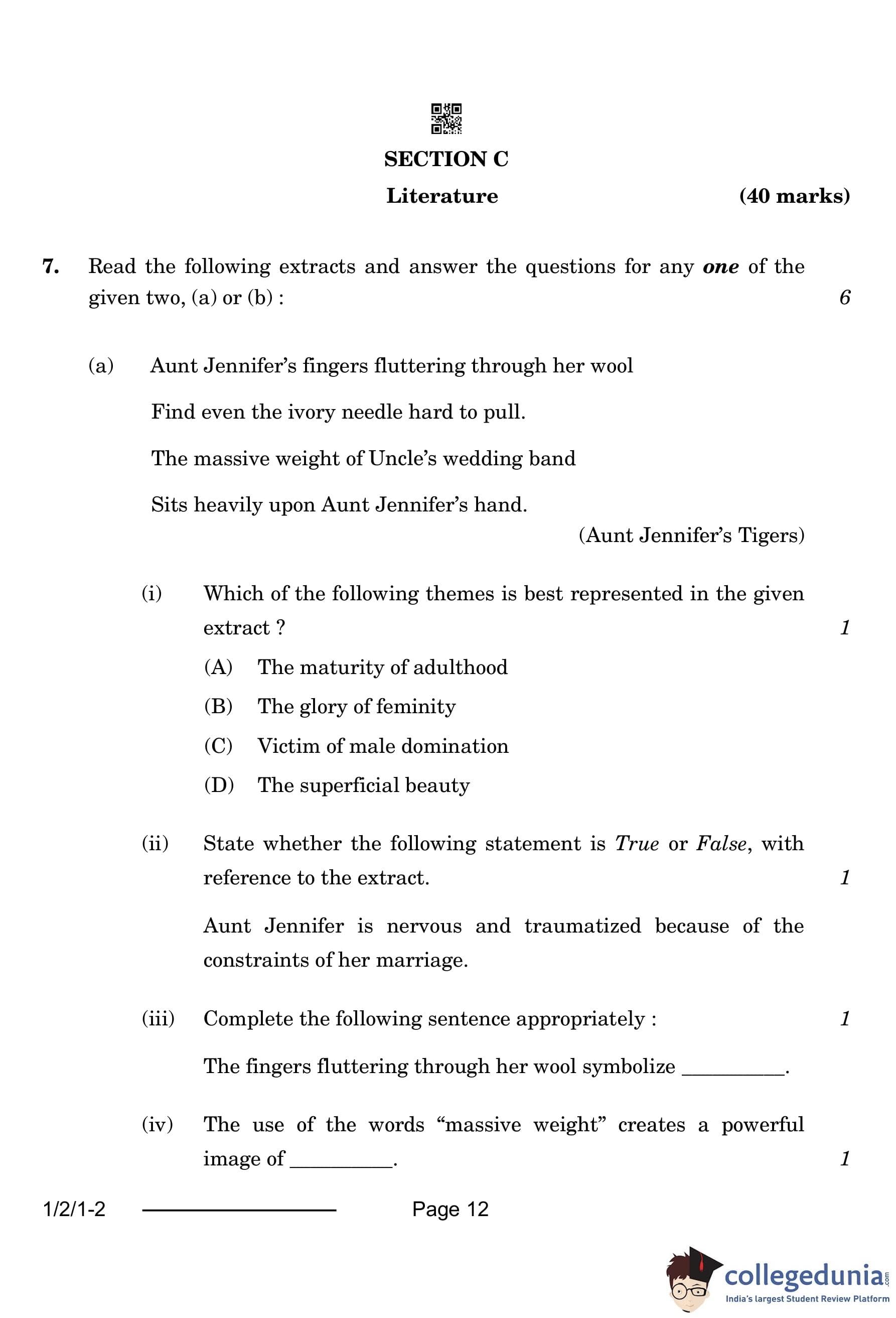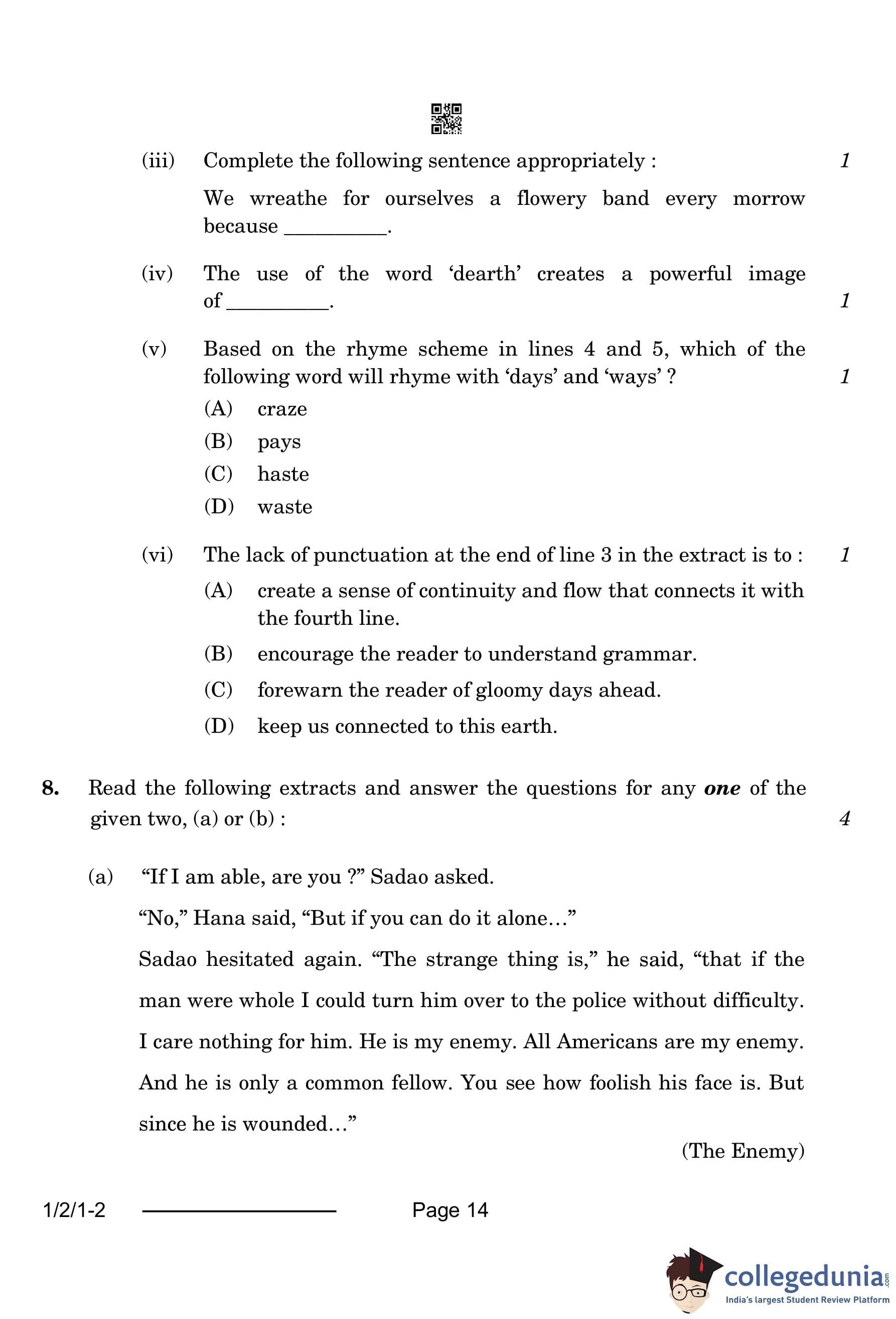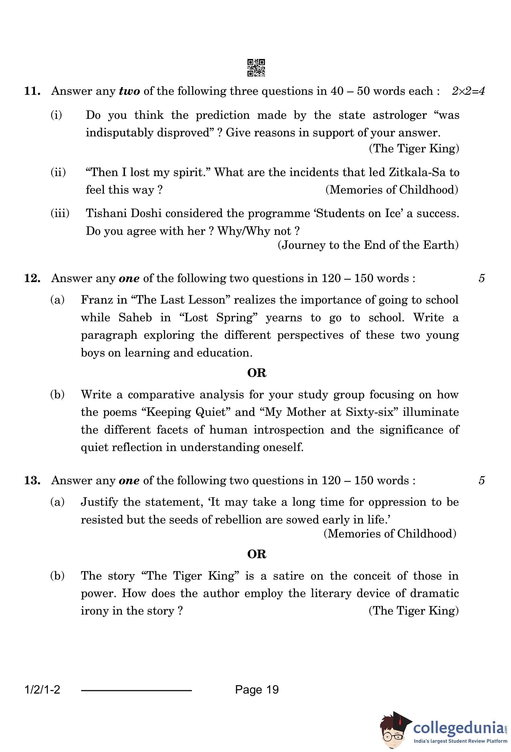 | CBSE Class 12 2024 English Question Paper with Answer Key | Check Solution |