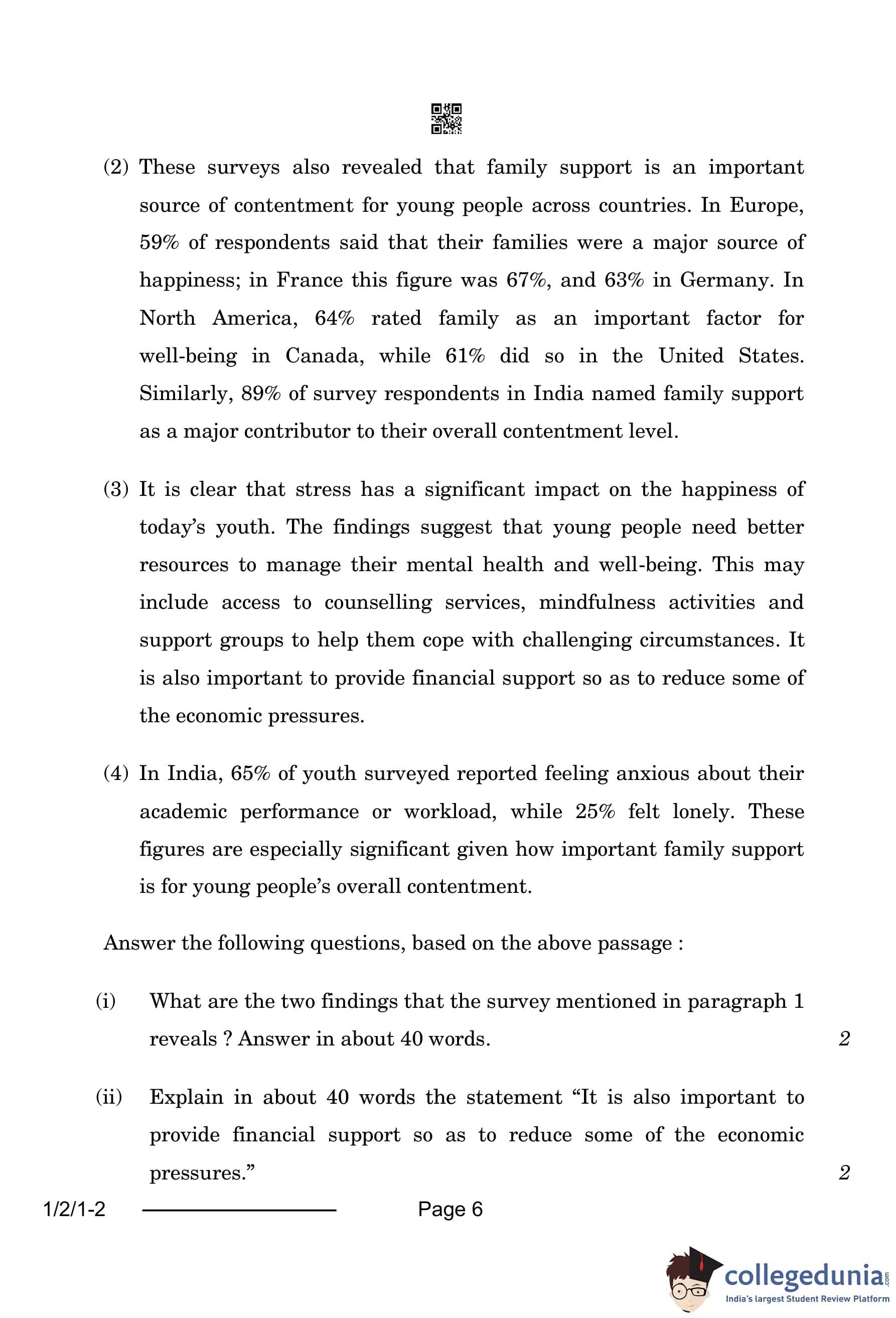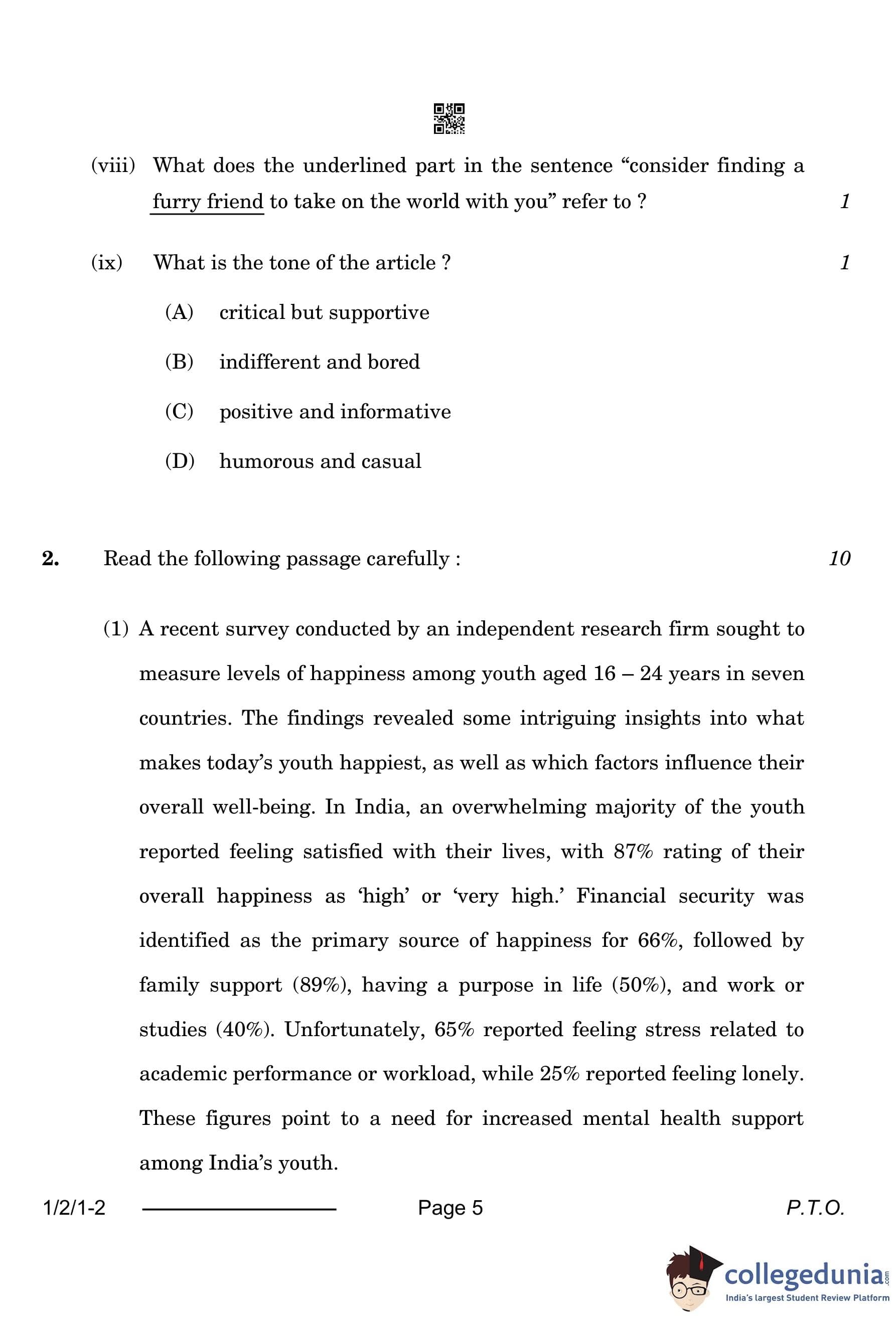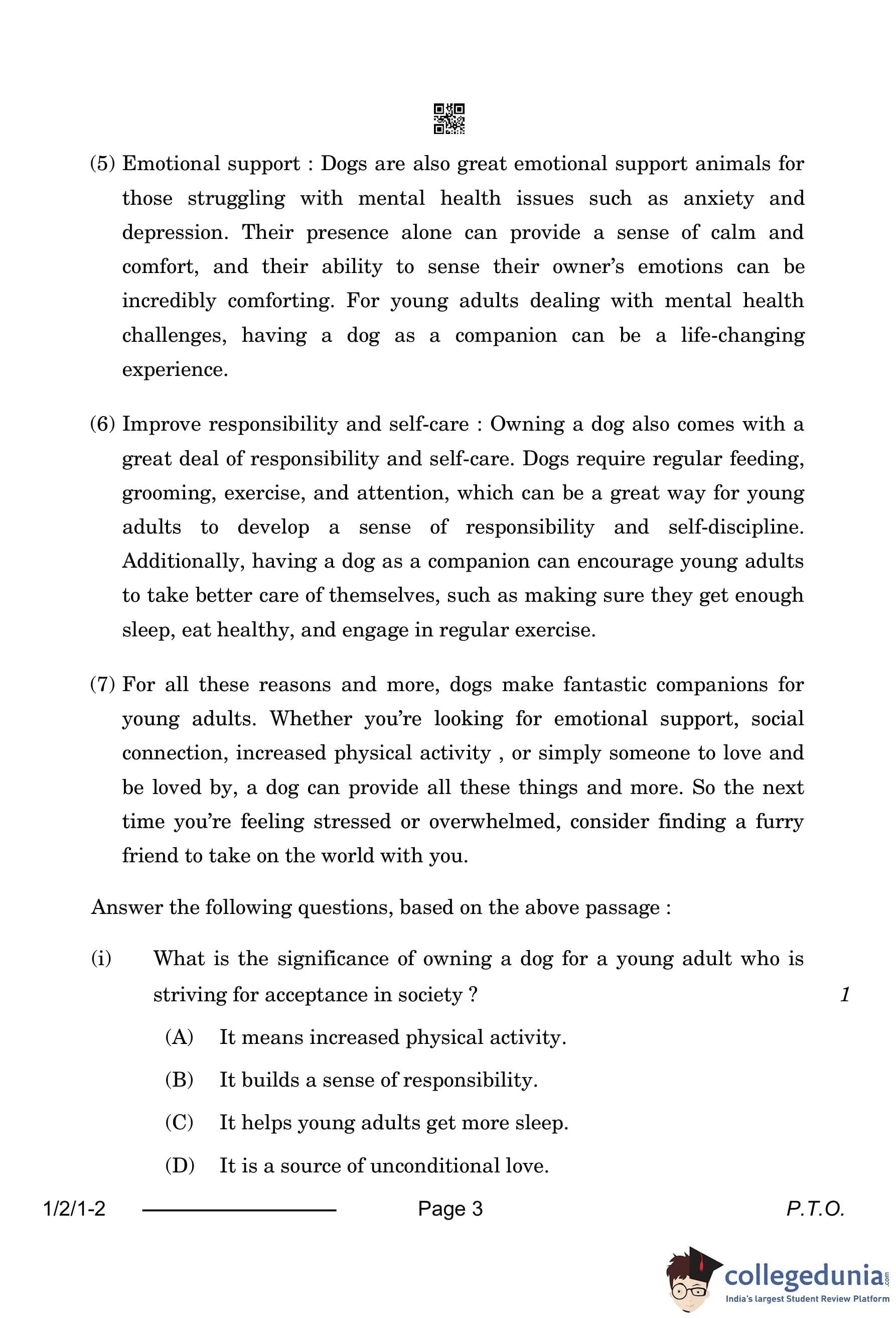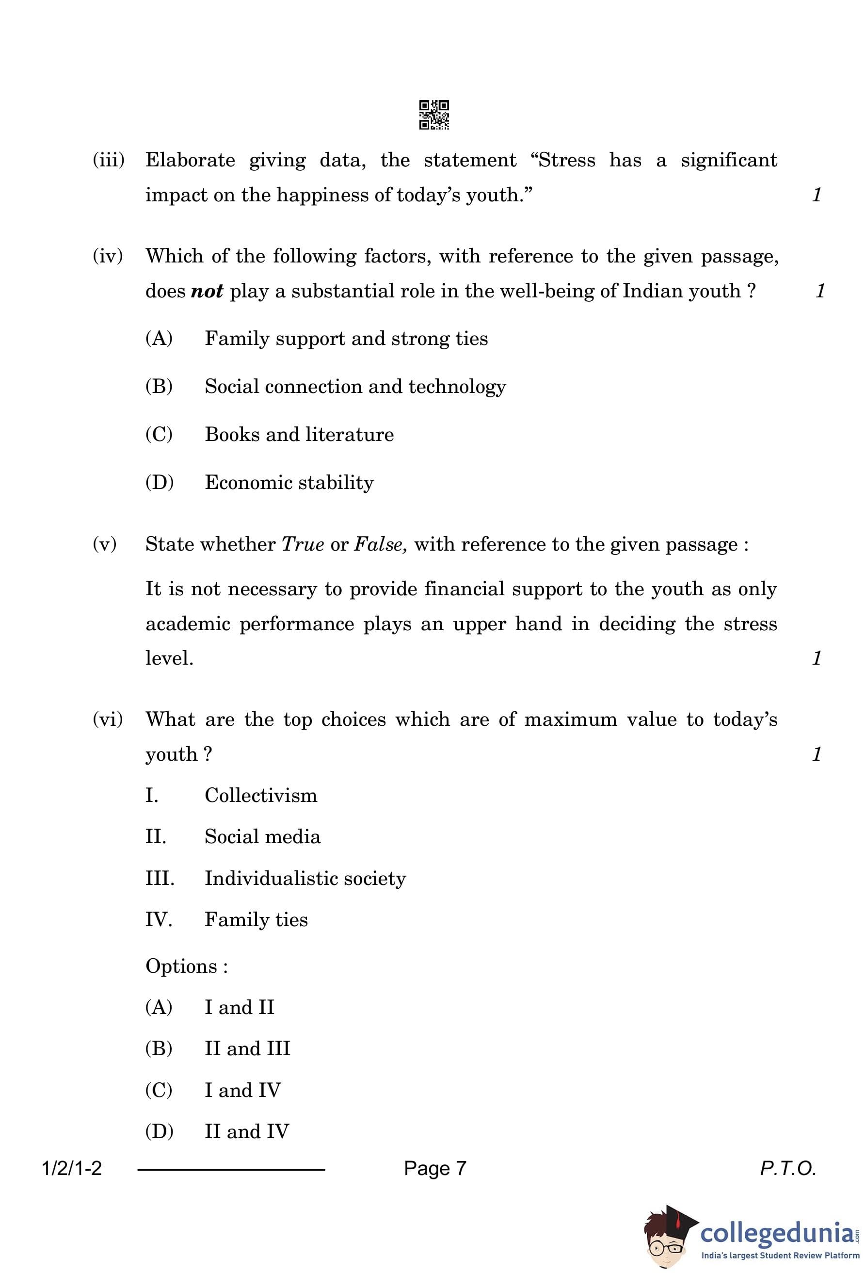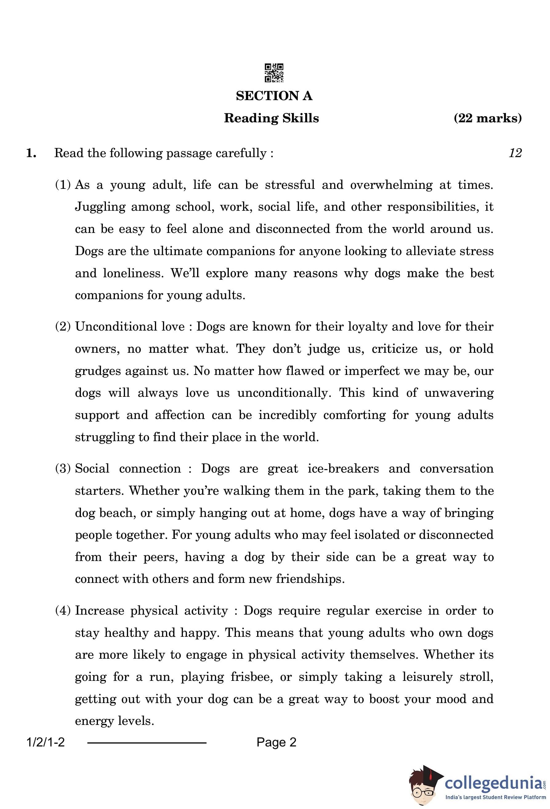 CBSE Class 12 English Question Paper 2024 (Set 1 - 1/2/1) with Answer Key