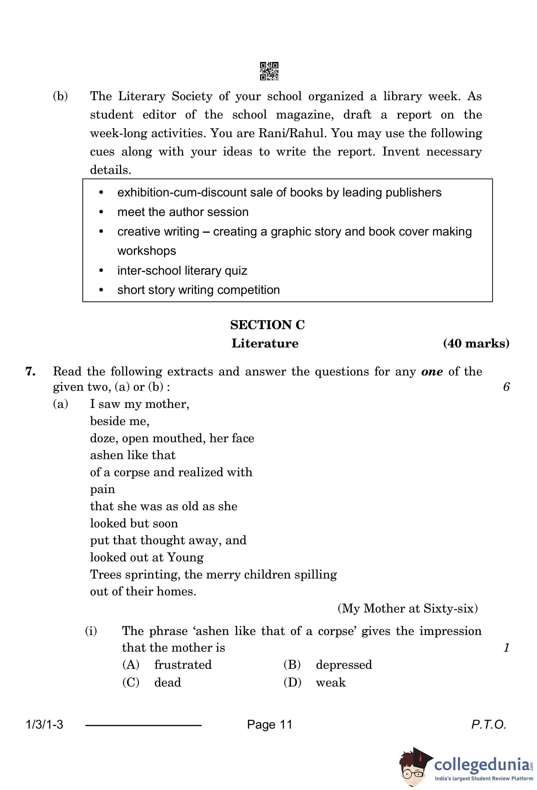 | CBSE Class 12 2024 English Question Paper with Answer Key | Check Solution |