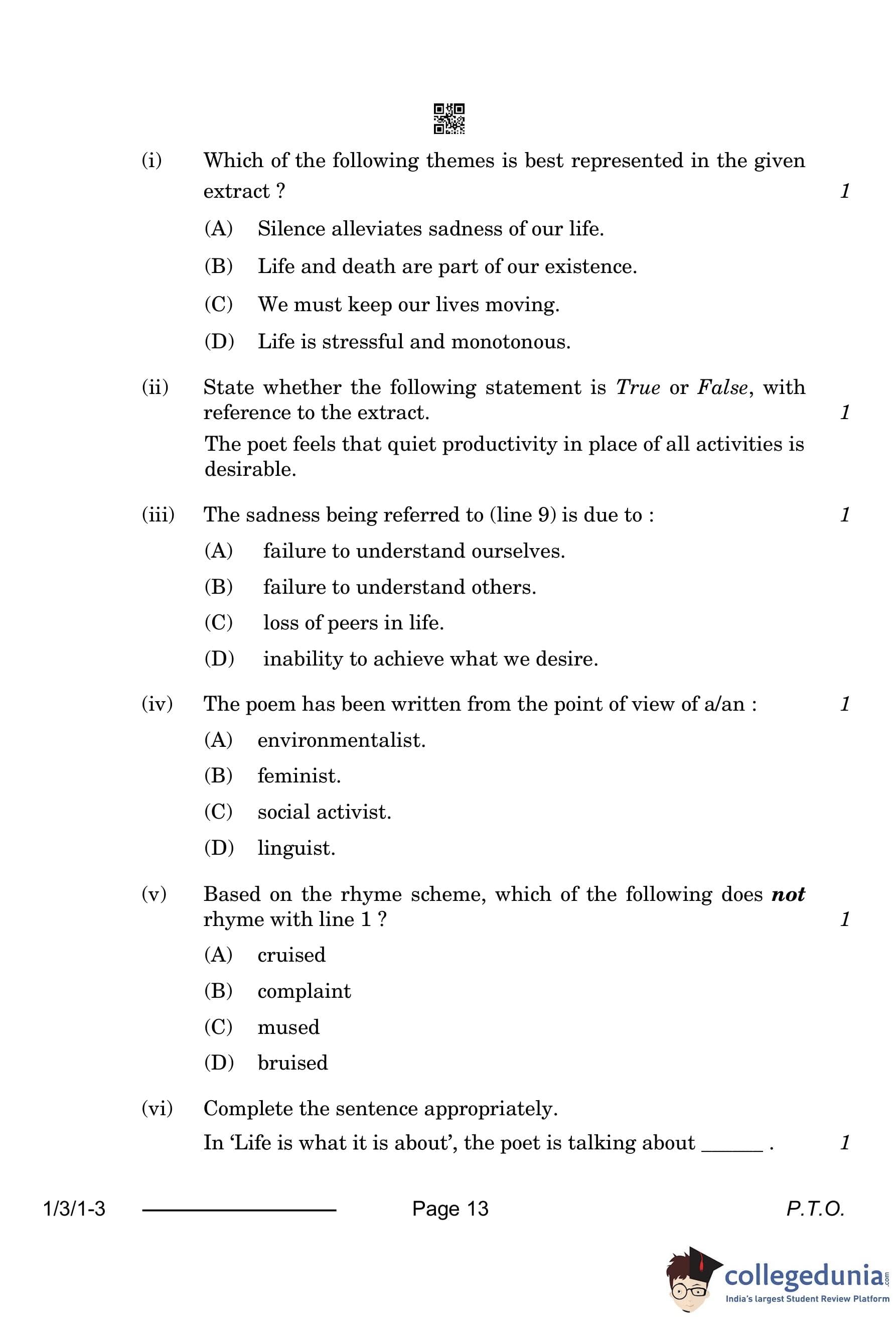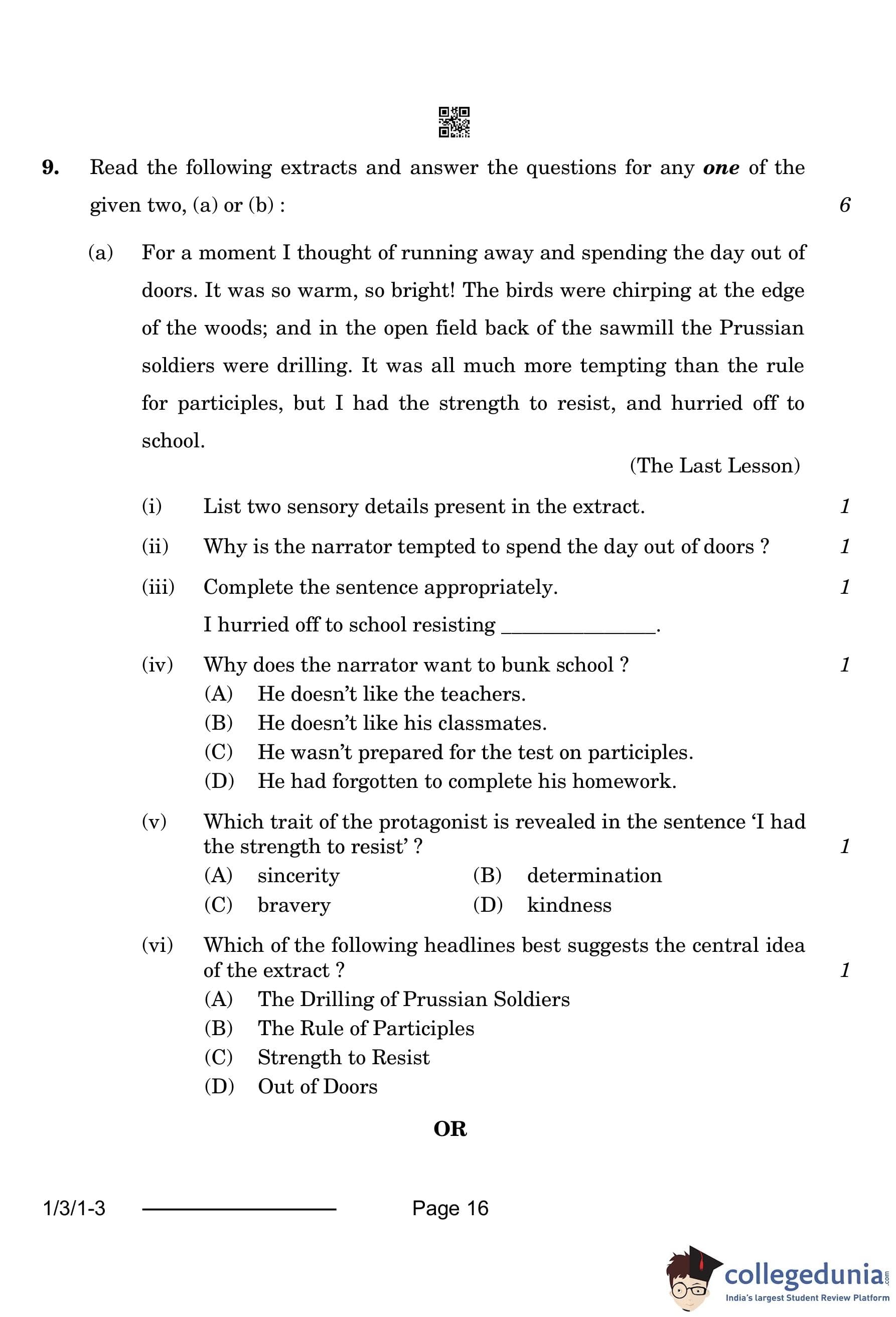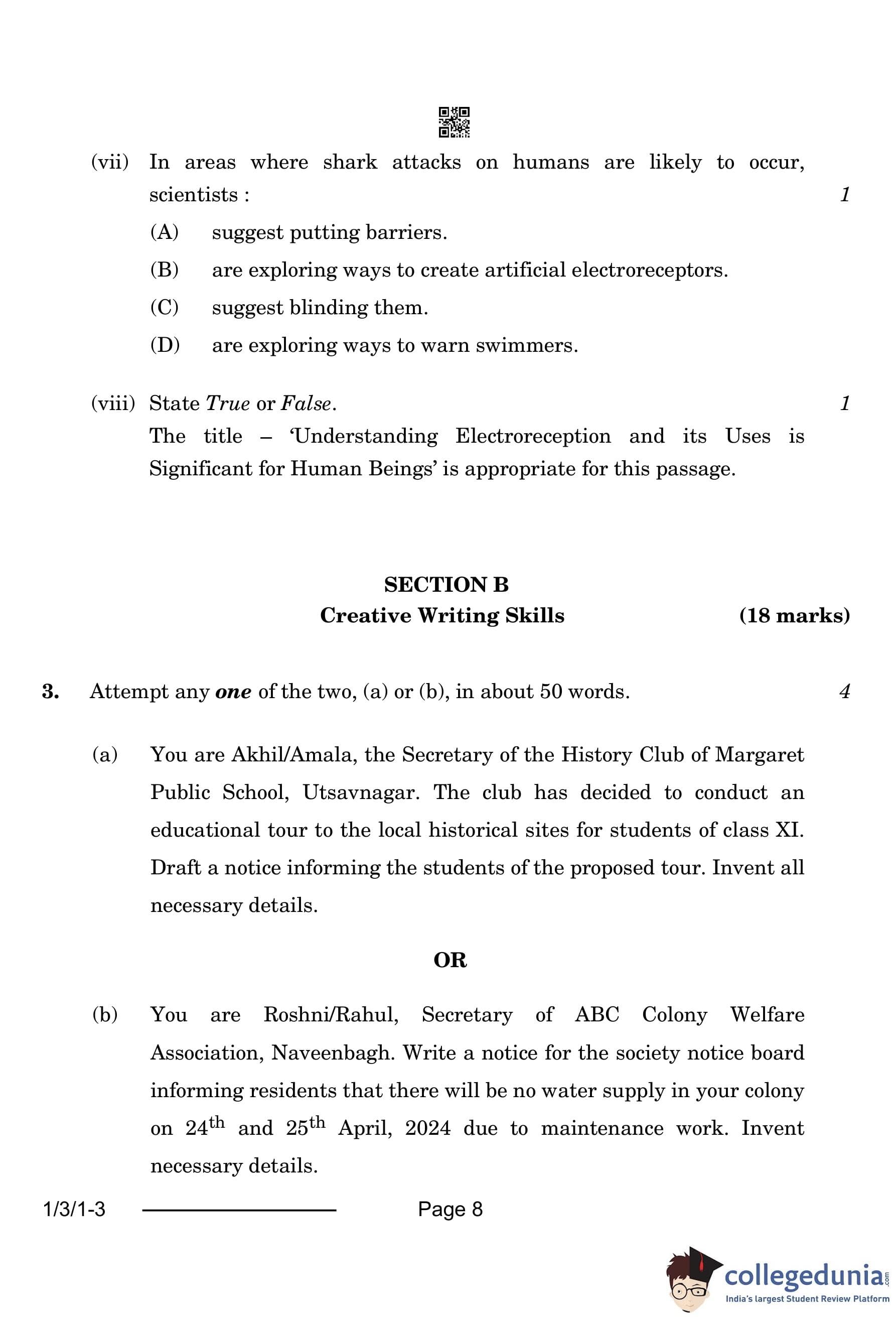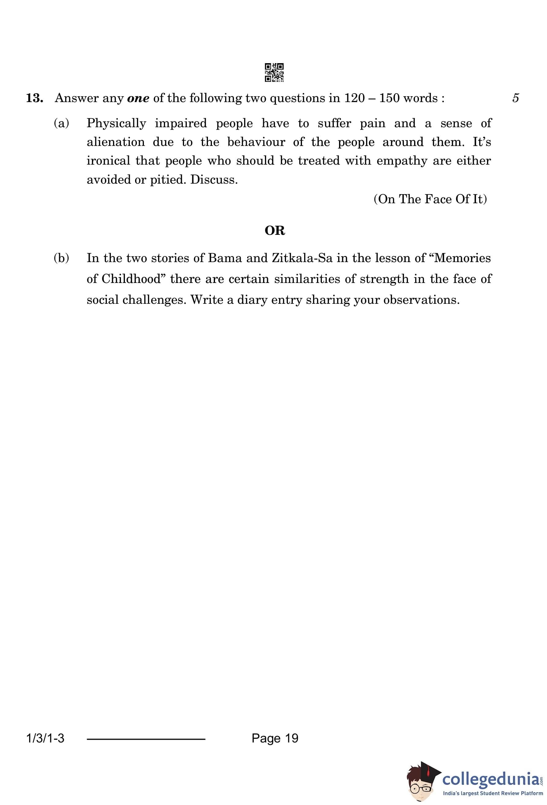 CBSE Class 12 English Question Paper 2024 (Set 1 - 1/3/1) with Answer Key