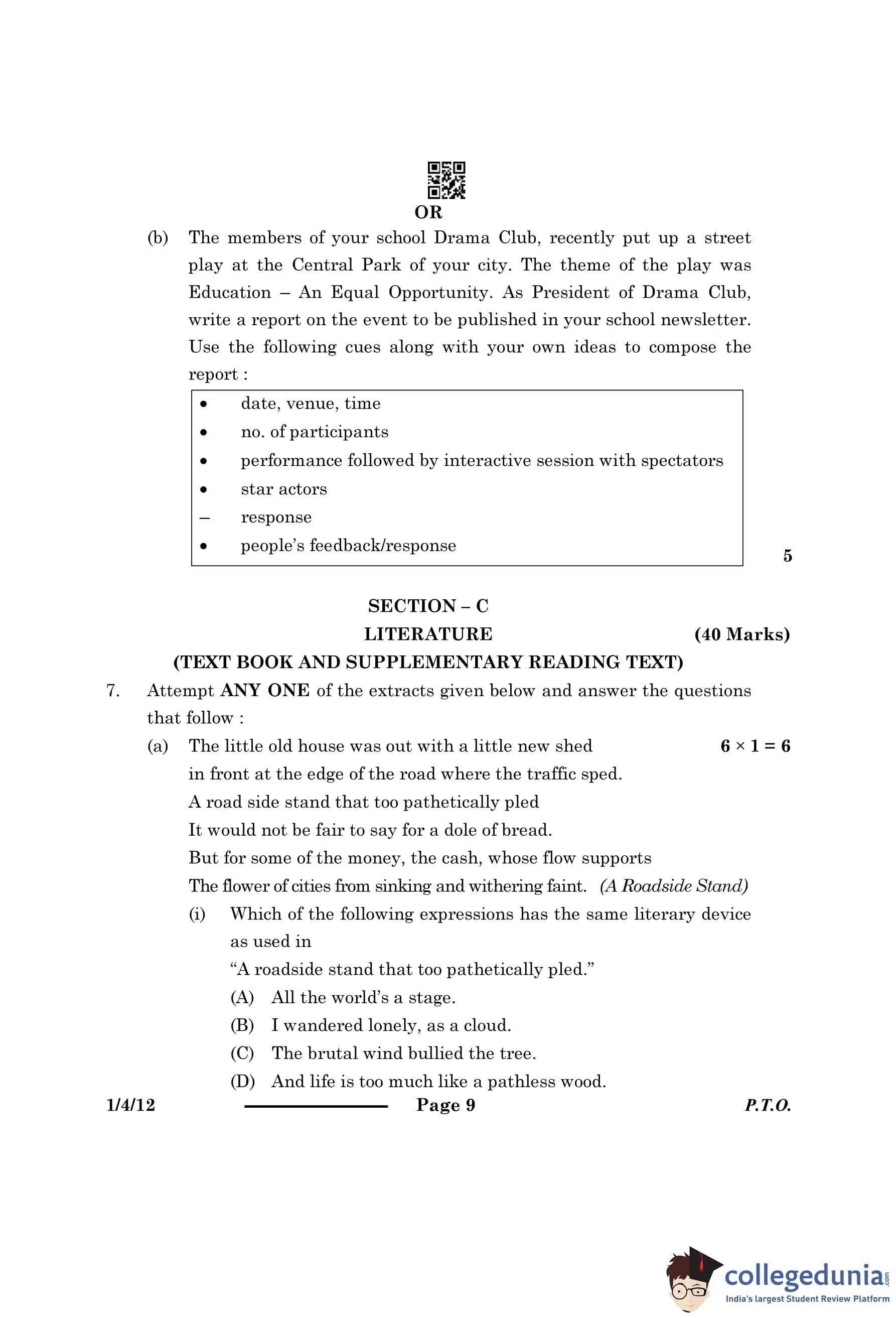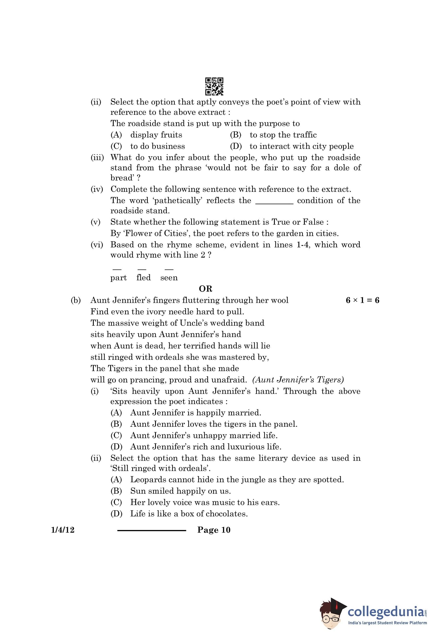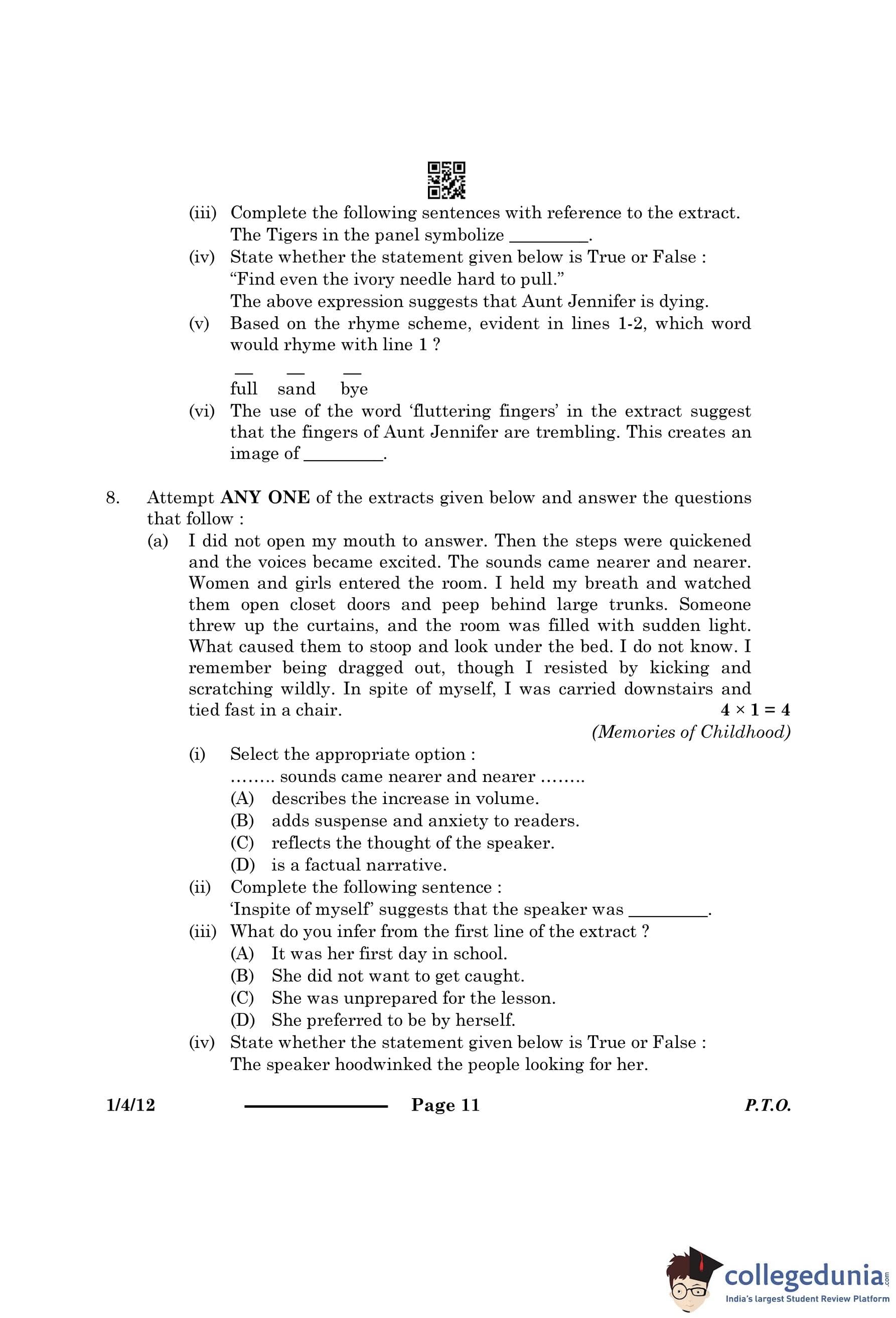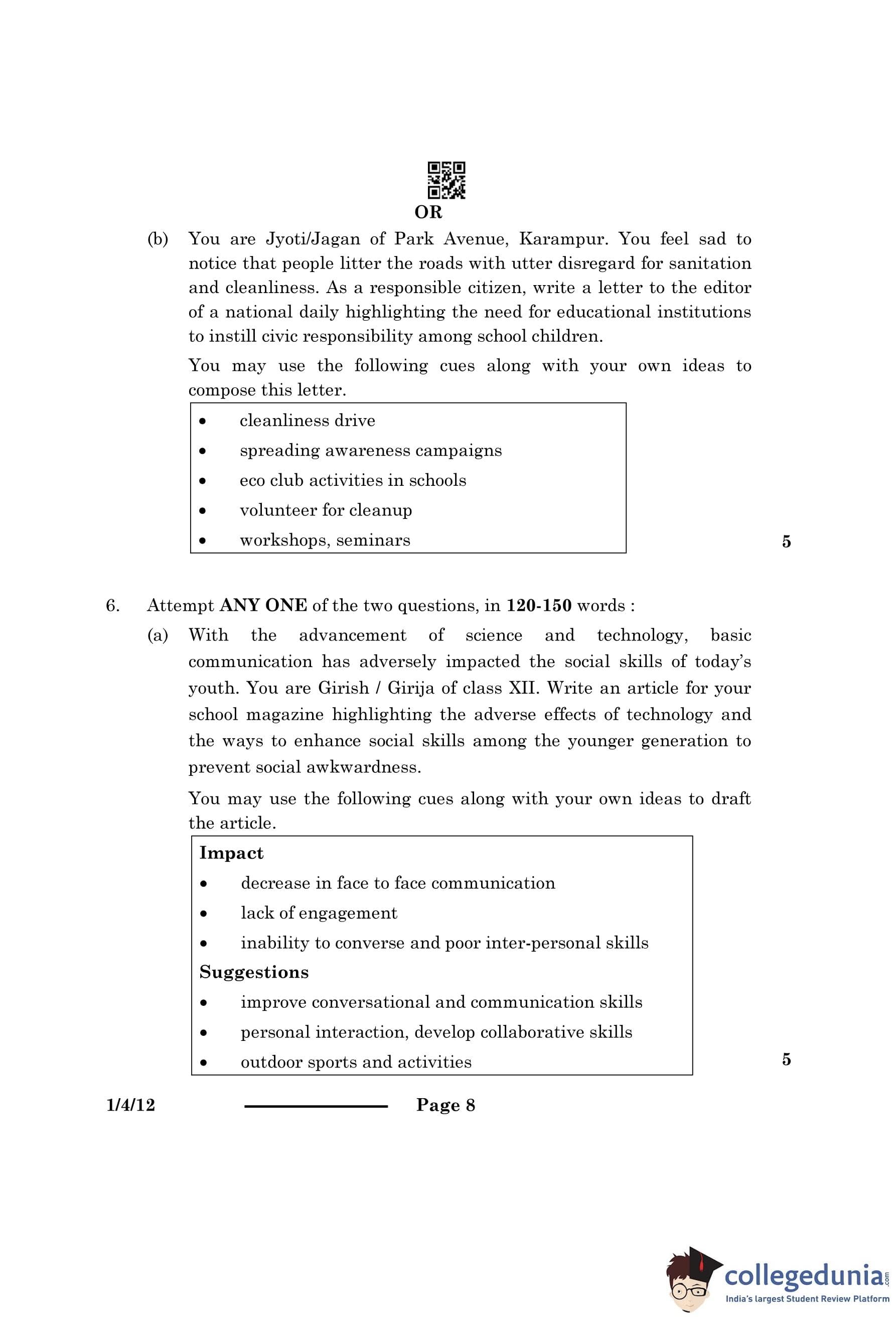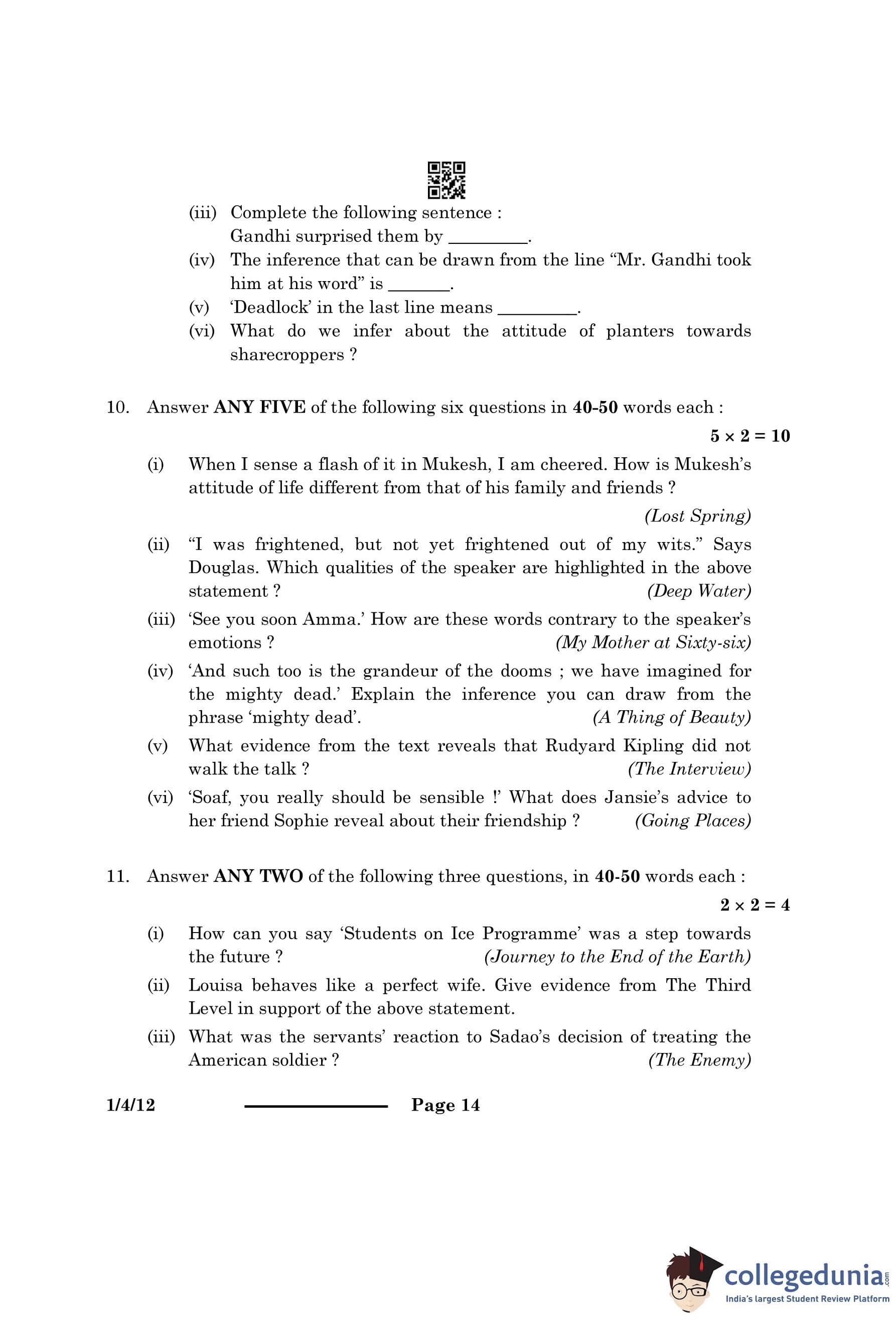 | CBSE Class 12 2024 English Question Paper with Answer Key | Check Solution |