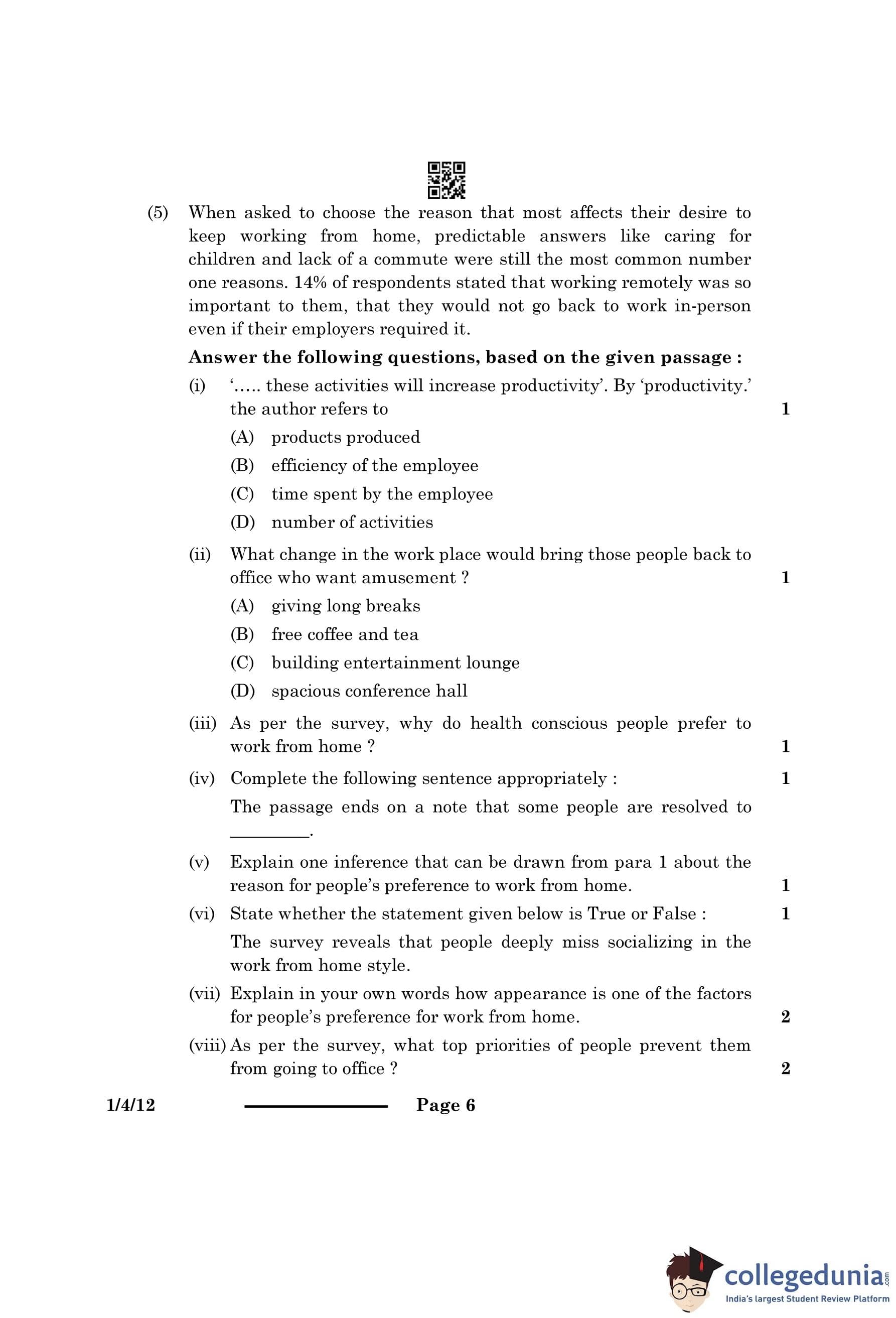 (v) Explain one inference that can be drawn from Paragraph 1 about the reason for people’s preference to work from home.