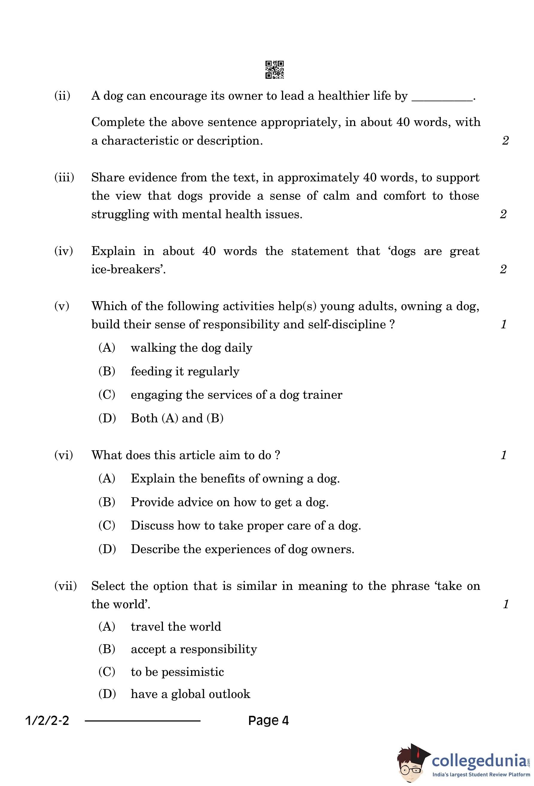 (iii) Share evidence from the text, in approximately 40 words, to support the view that dogs provide a sense of calm and comfort to those struggling with mental health issues.