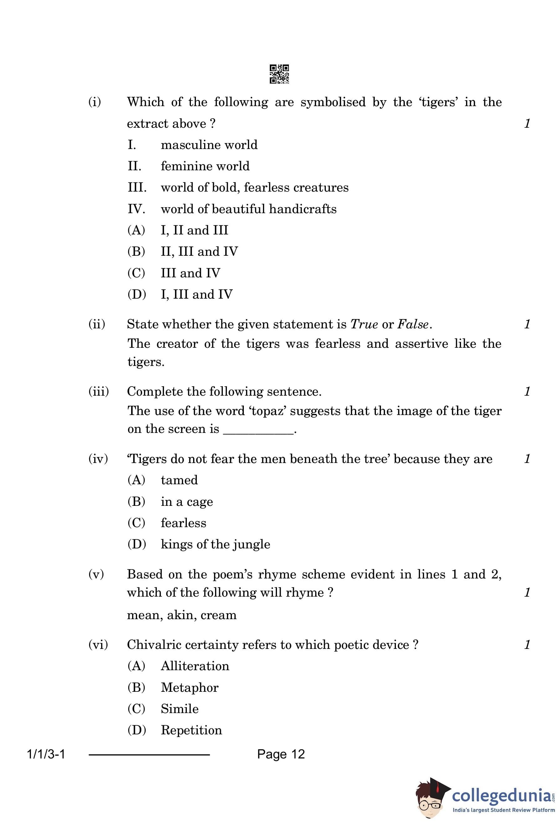 | CBSE Class 12 2024 English Question Paper with Answer Key | Check Solution |