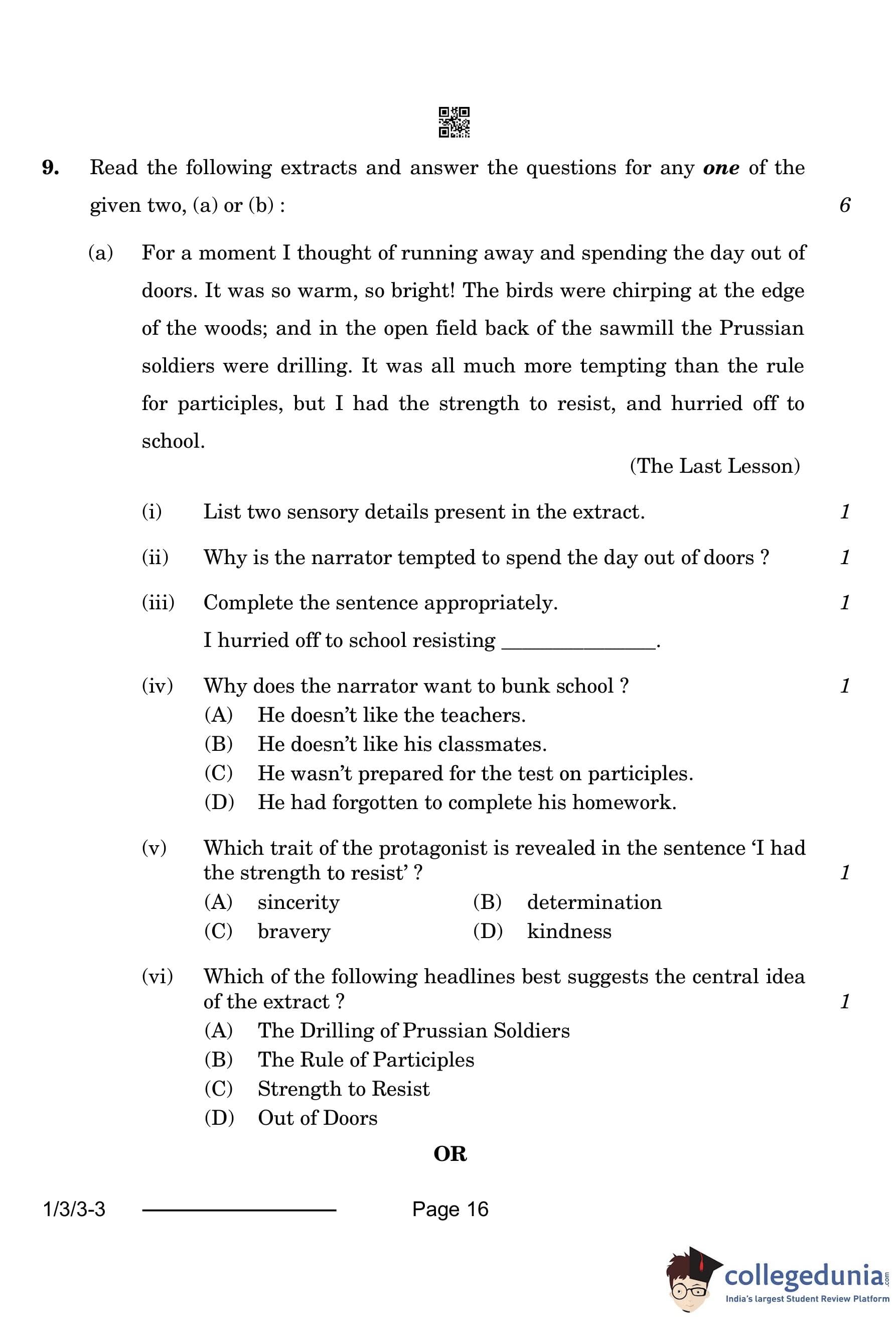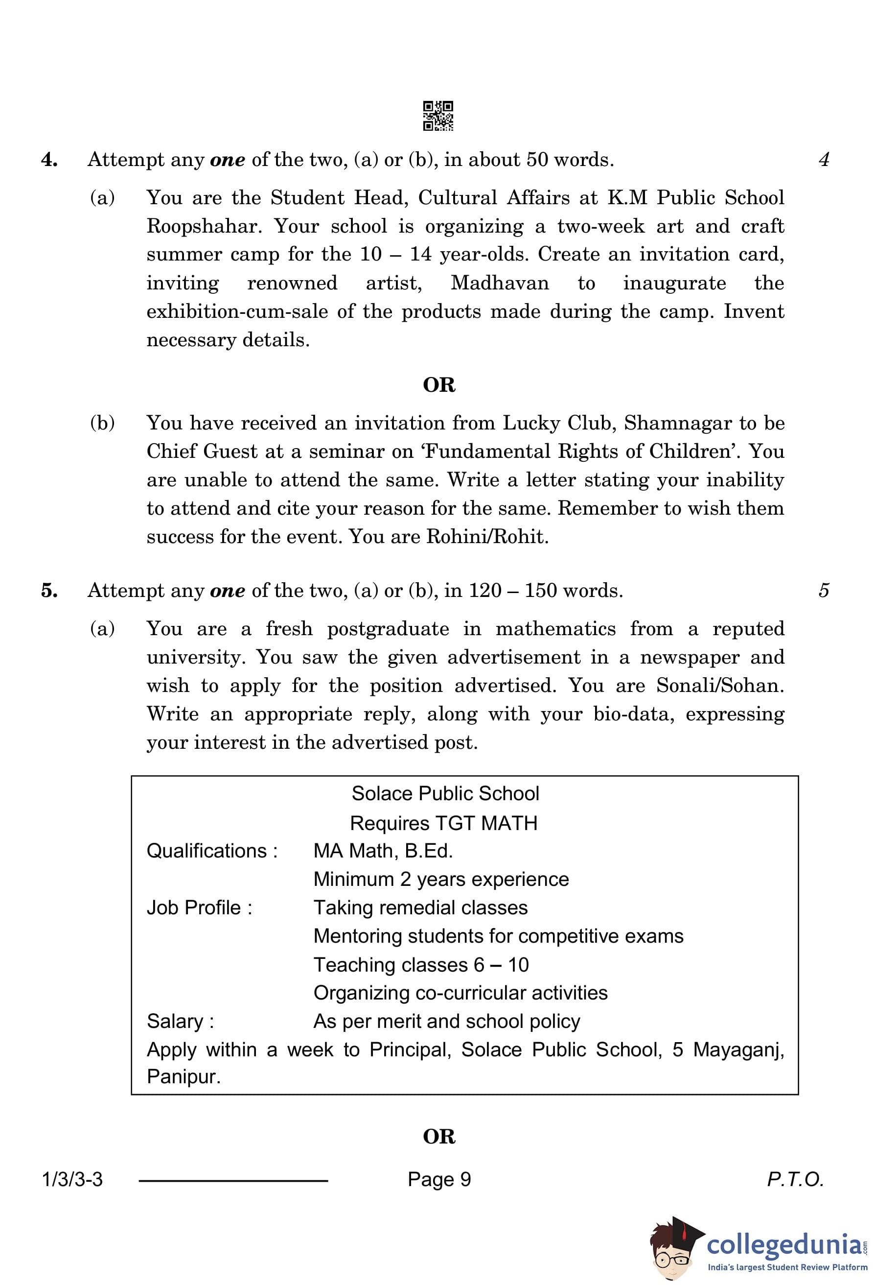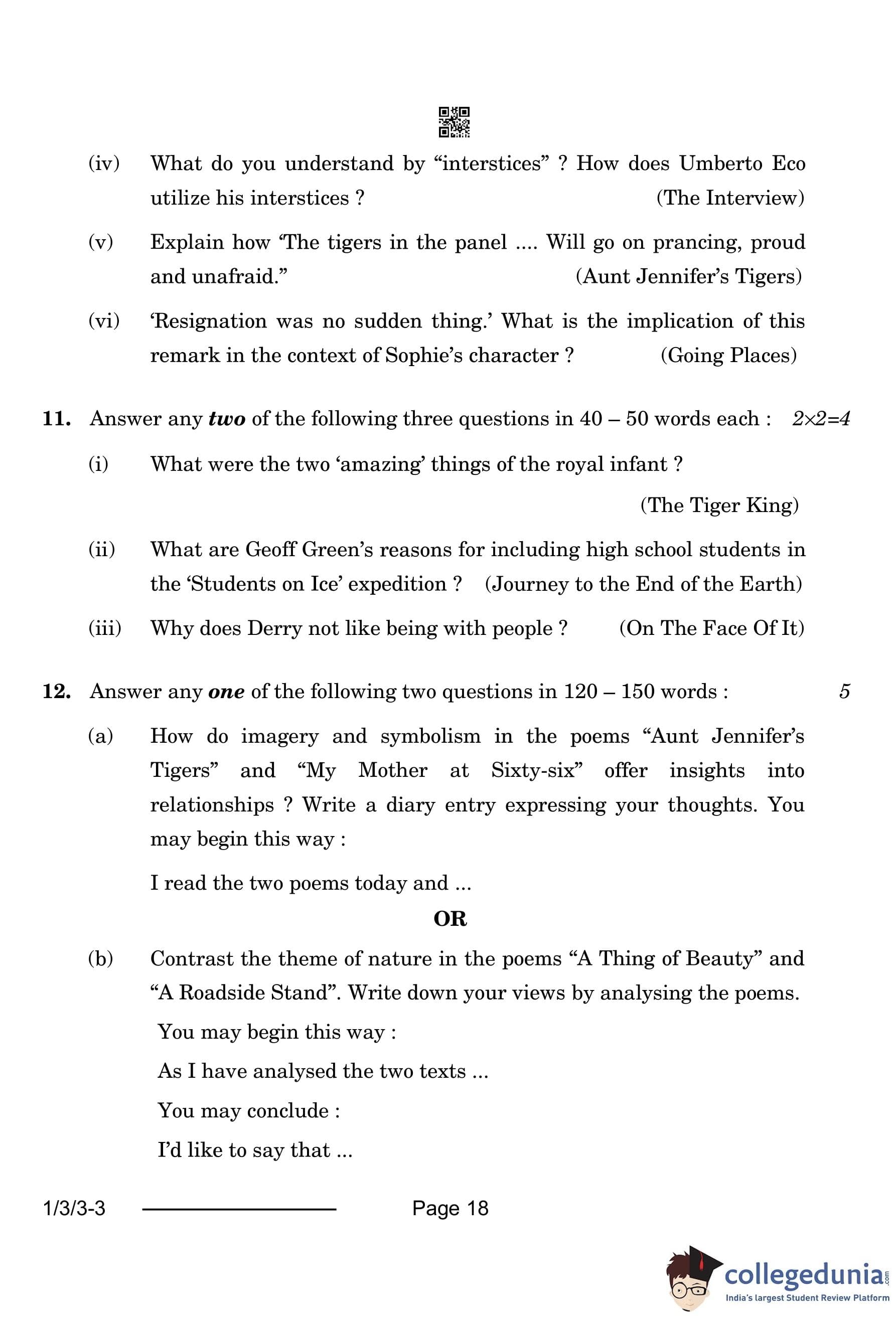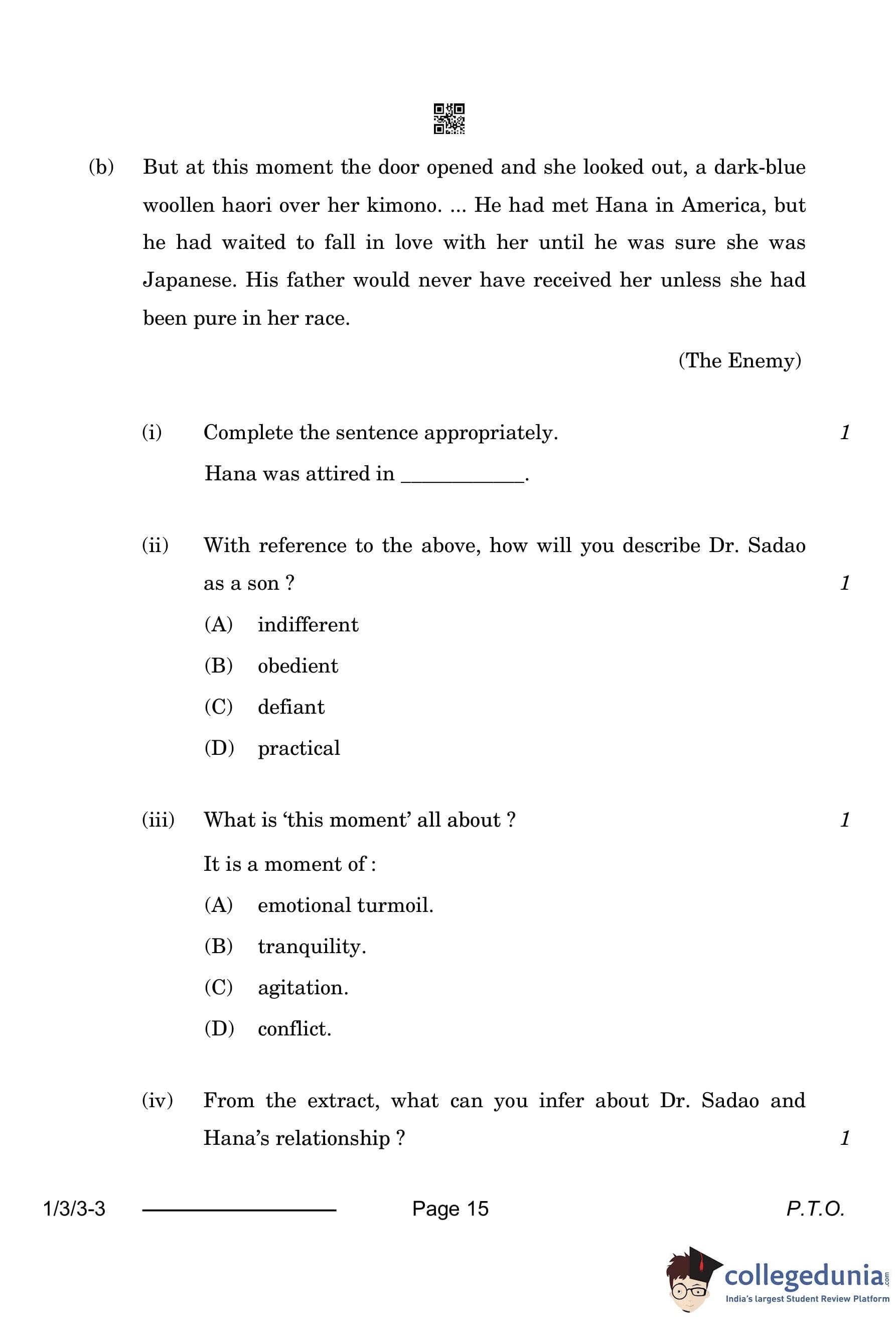 CBSE Class 12 English Question Paper 2024 (Set 3 - 1/3/3) with Answer Key
