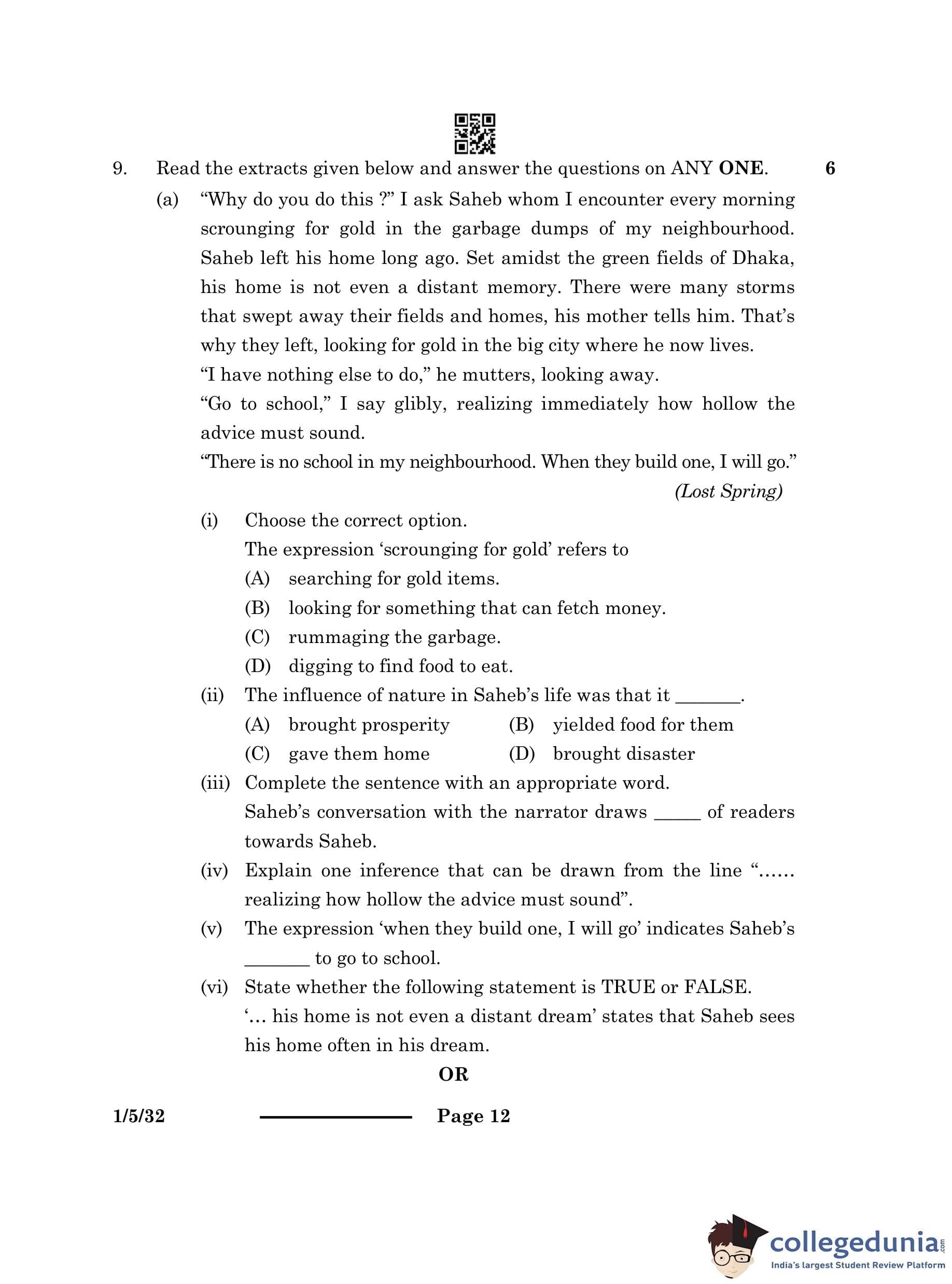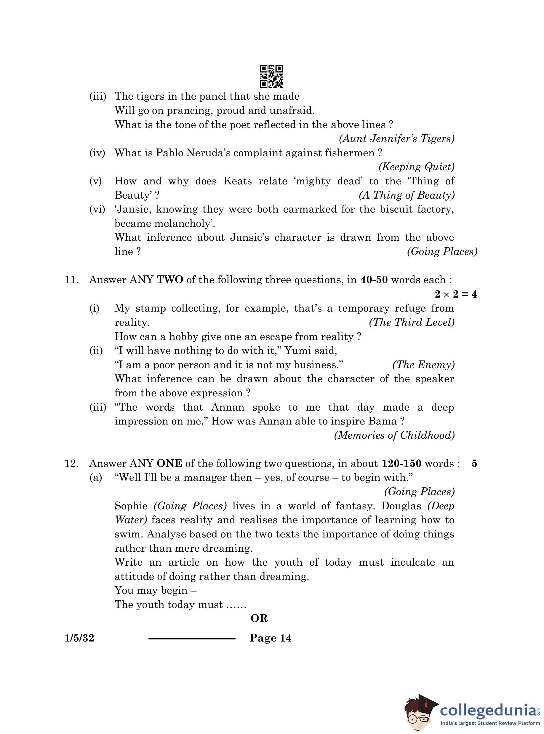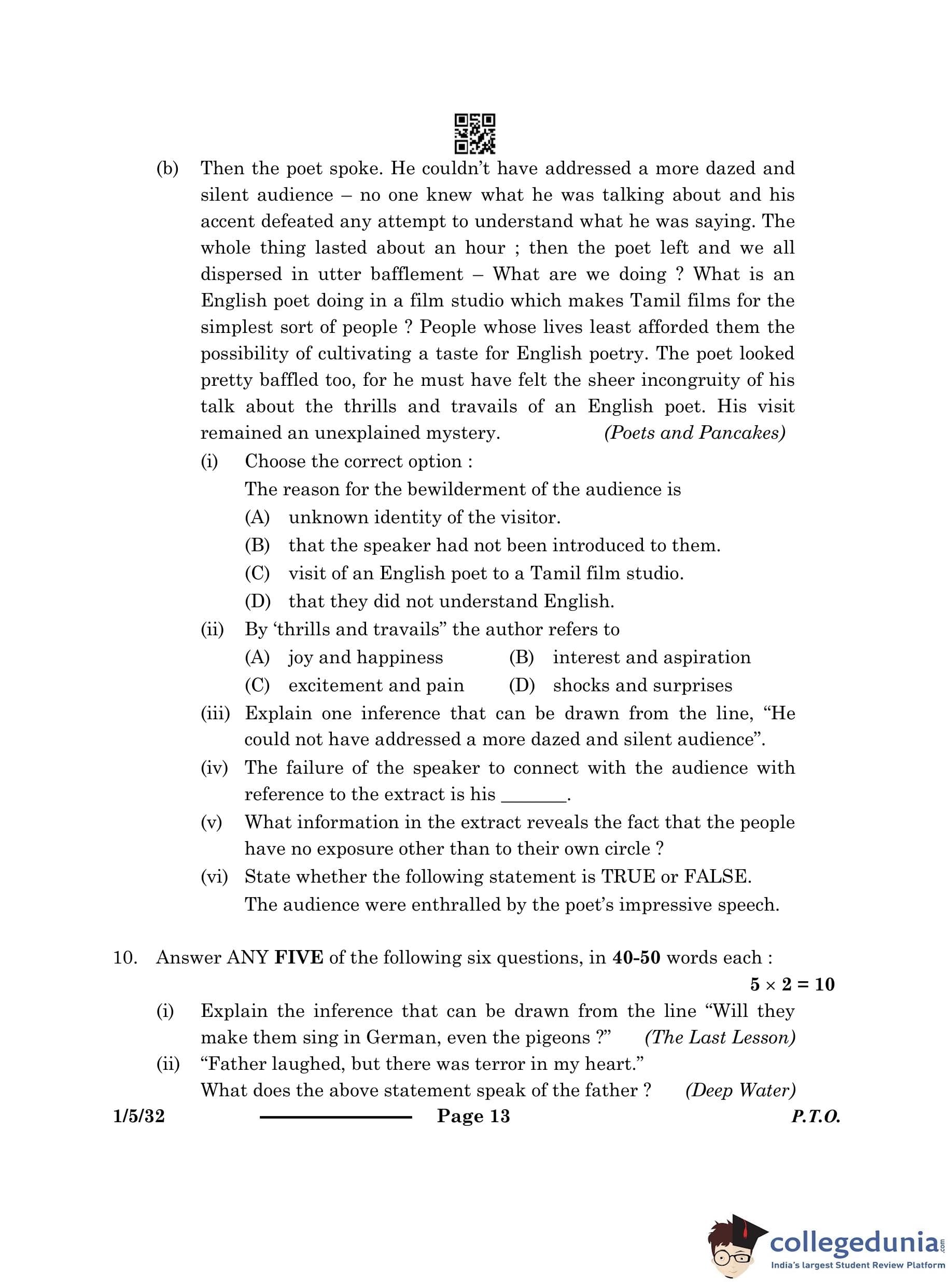 | CBSE Class 12 2024 English Question Paper with Answer Key | Check Solution |