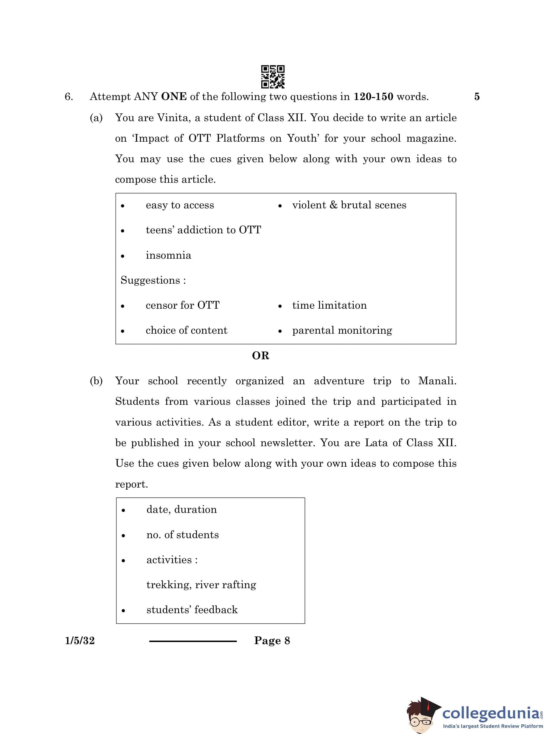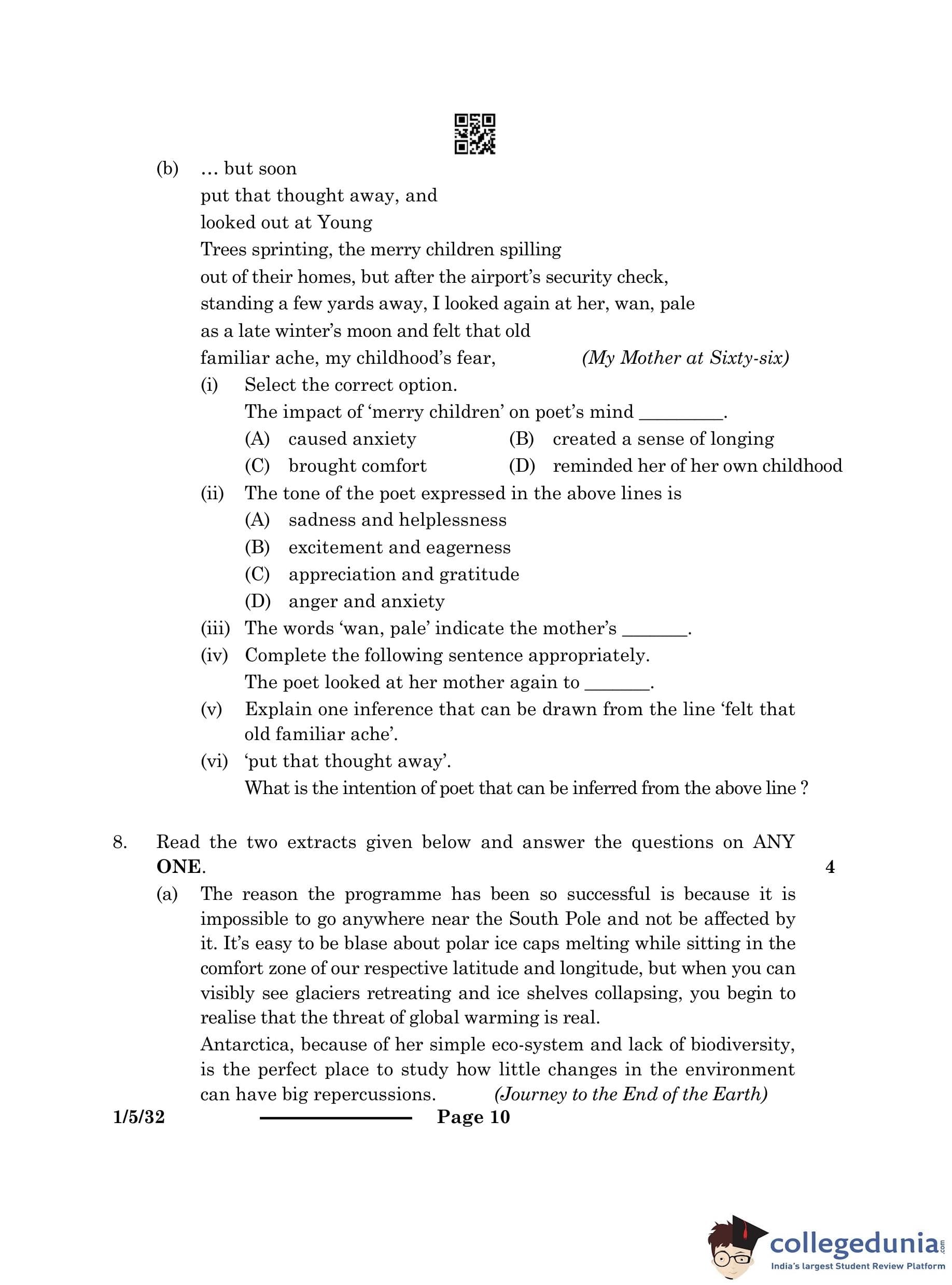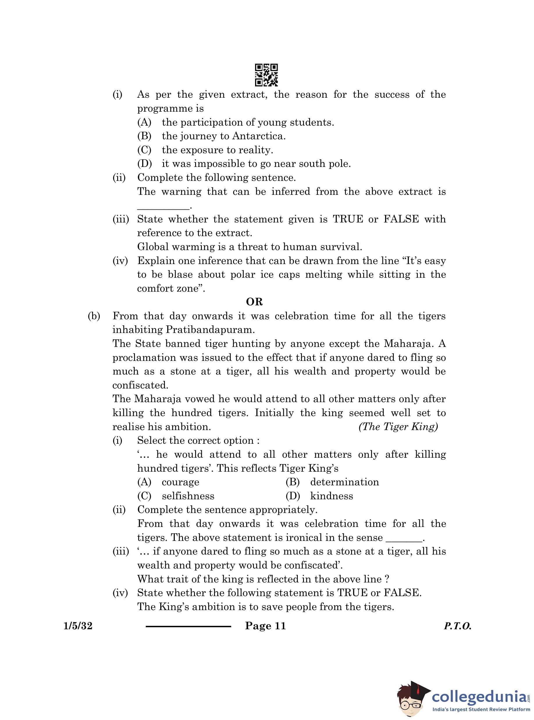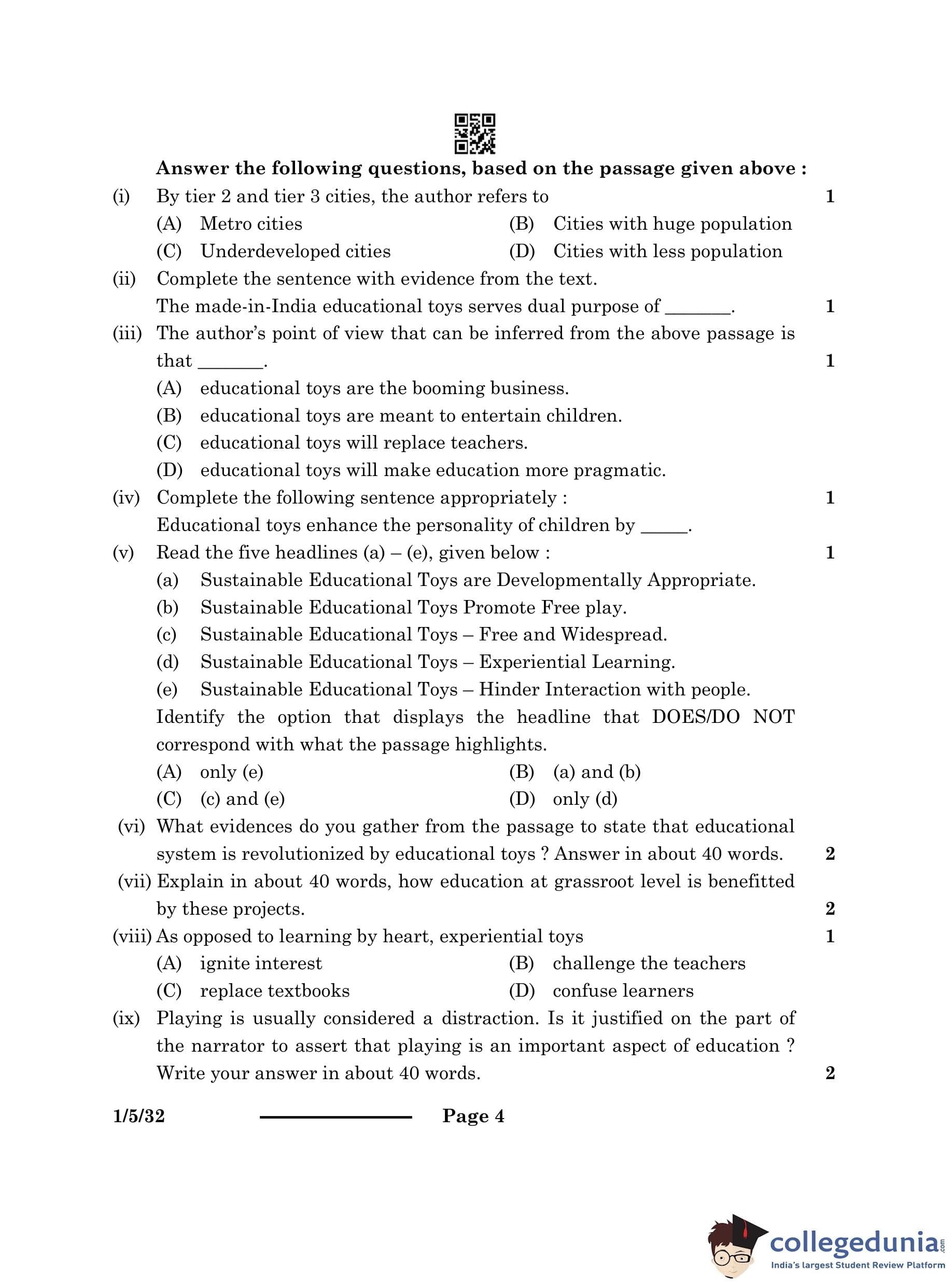 | CBSE Class 12 2024 English Question Paper with Answer Key | Check Solution |