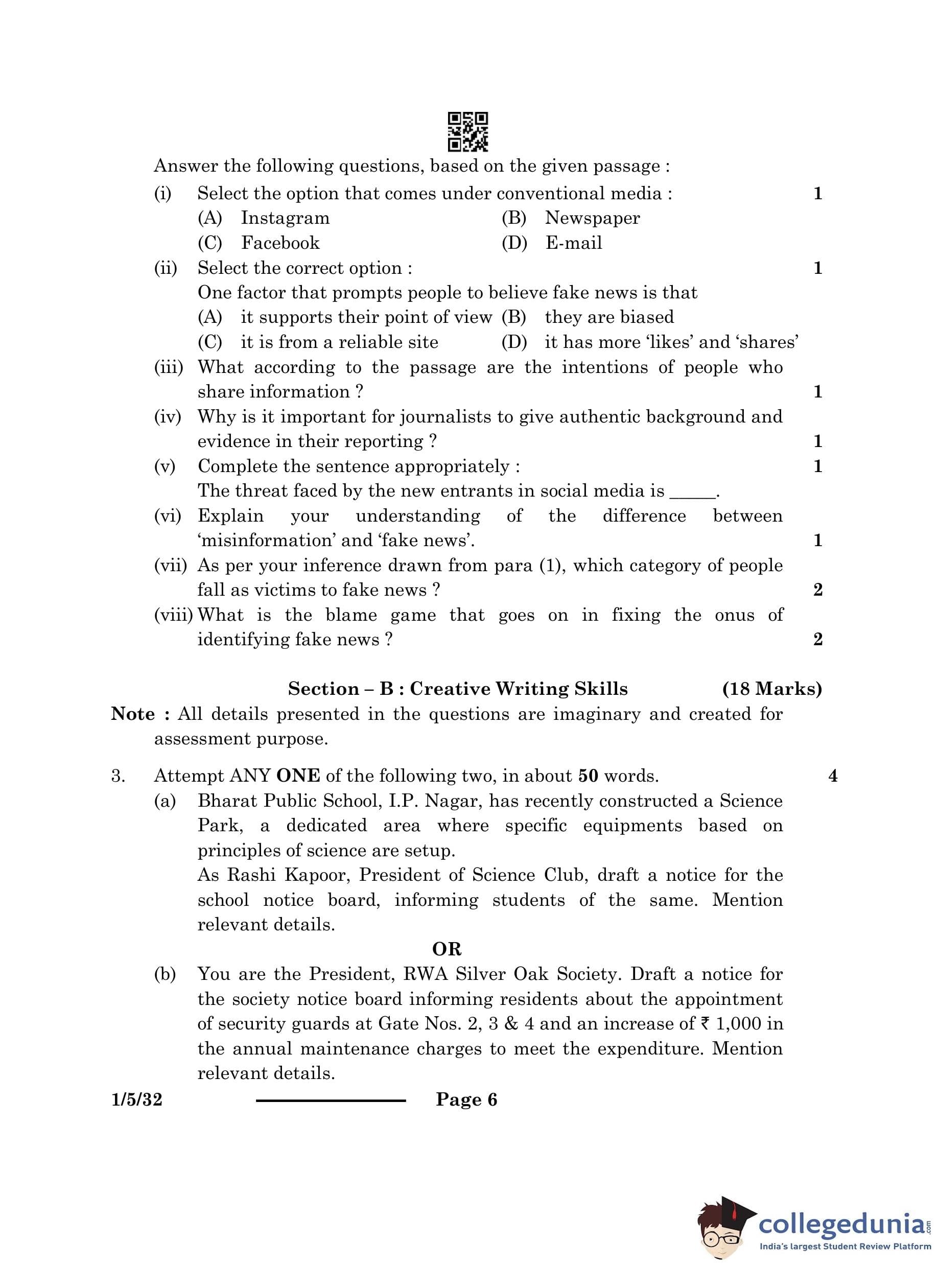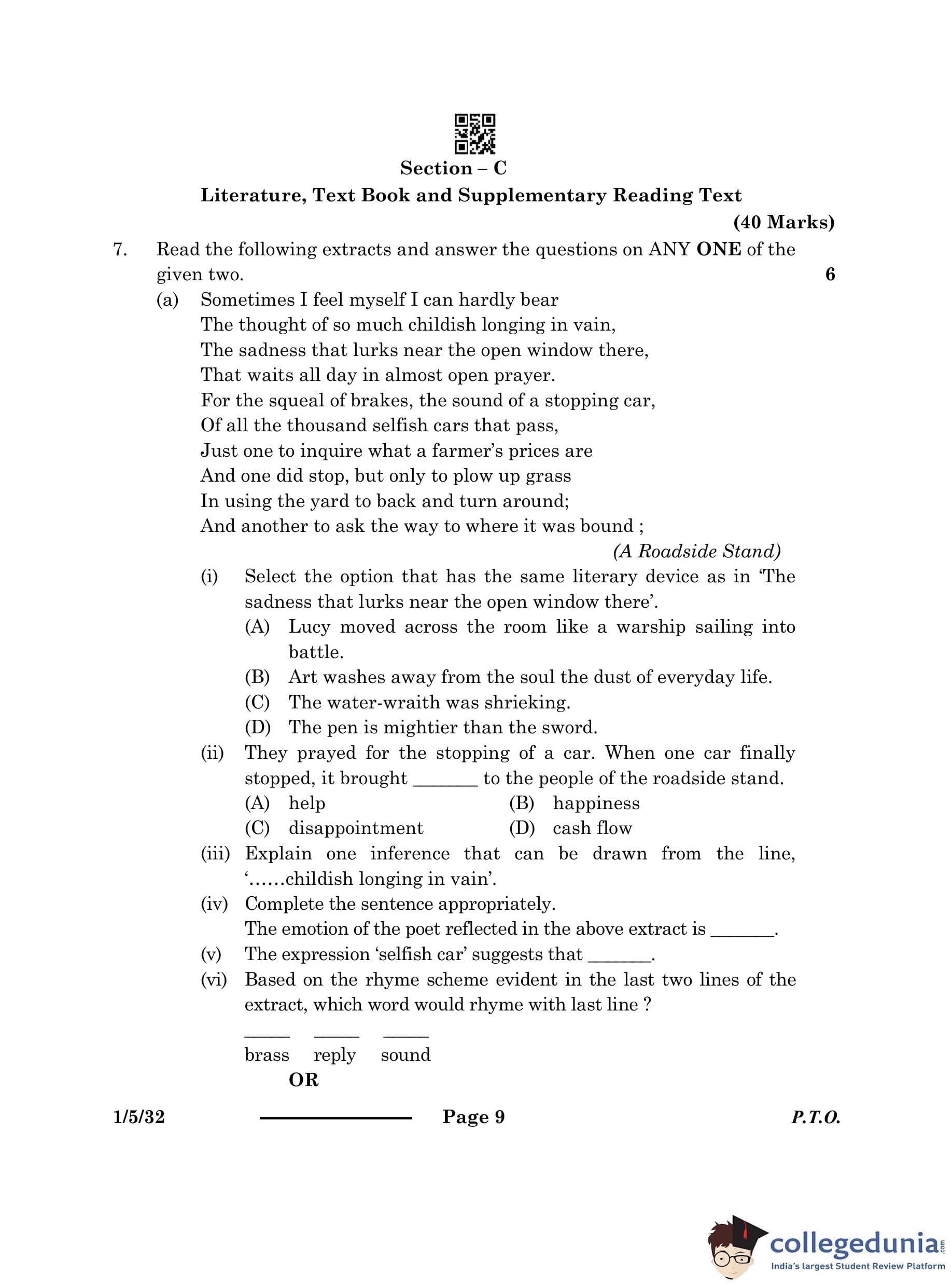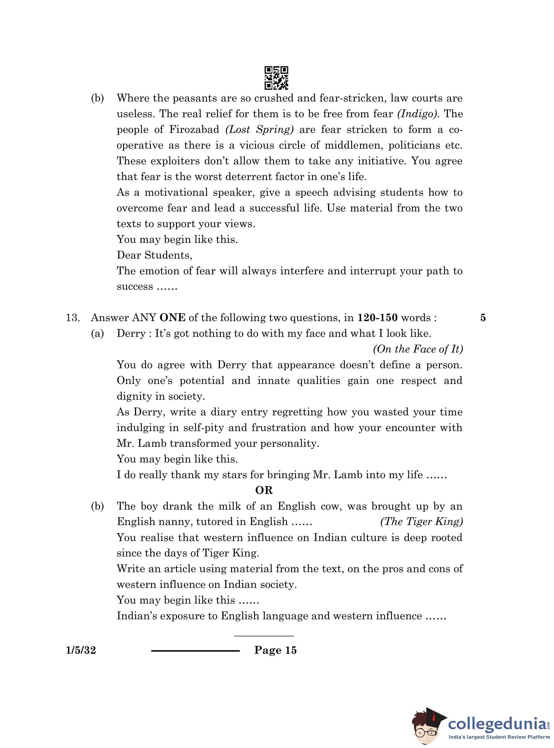 CBSE Class 12 English Question Paper 2024 (Set 3 - 1/5/3) with Answer Key
