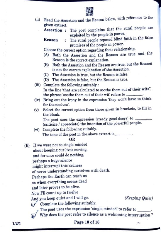 (ii) Read the Assertion and the Reason below, with reference to the given extract.
