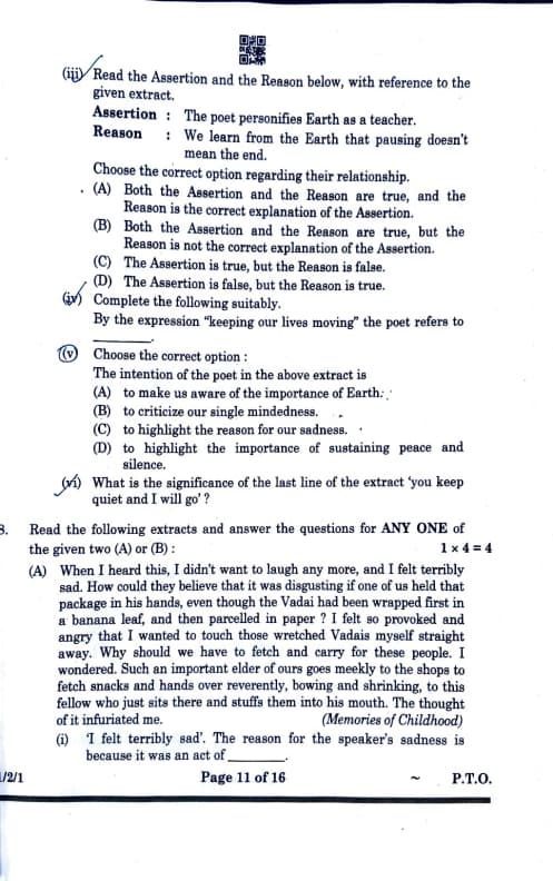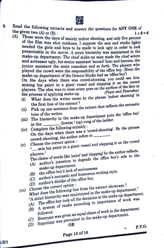 Read the following extracts and answer the questions for ANY ONE of the given two (A) or (B):