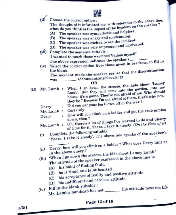 (ii) ‘The thought of it infuriated me’ with reference to the above line, what do you think was the impact of the incident on the speaker?