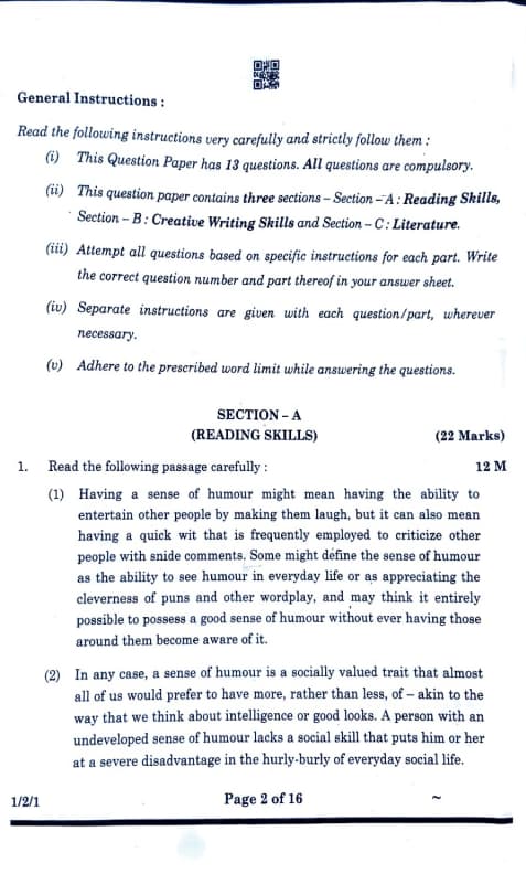 CBSE Board Class 12 English Question Paper 2025 Set 1 with Solutions