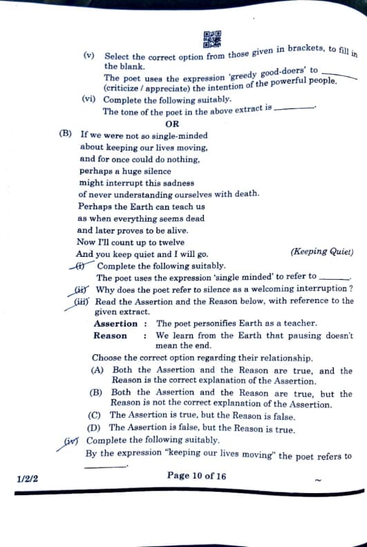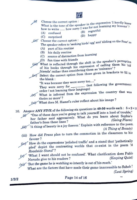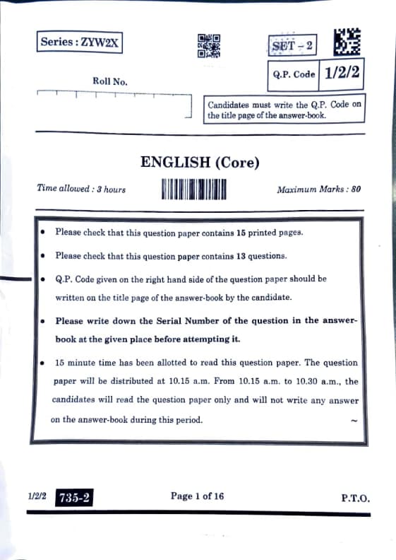 CBSE Board Class 12 English Question Paper 2025 Set 2 with Solutions