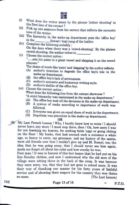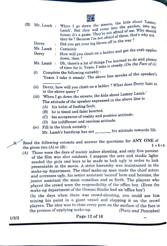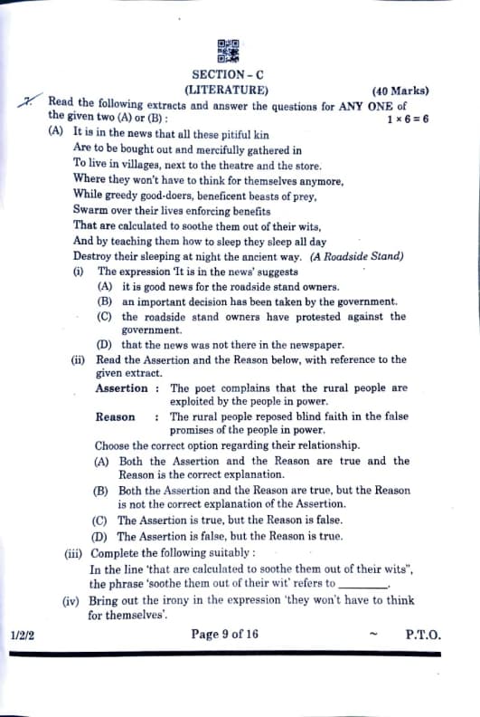 Read the following extracts and answer the questions for ANY ONE of the given two (A) or (B):