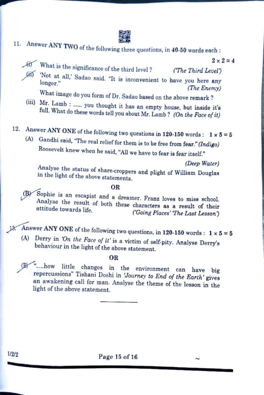| CBSE Board Class 12 English Question Paper with Answer Key | Download | Check Solution |