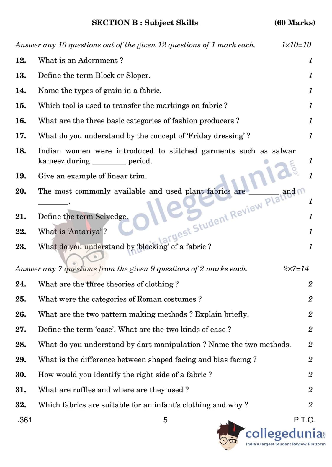 CBSE Class 12 Fashion Studies Question Paper 2020 with Answer Key (February 29)