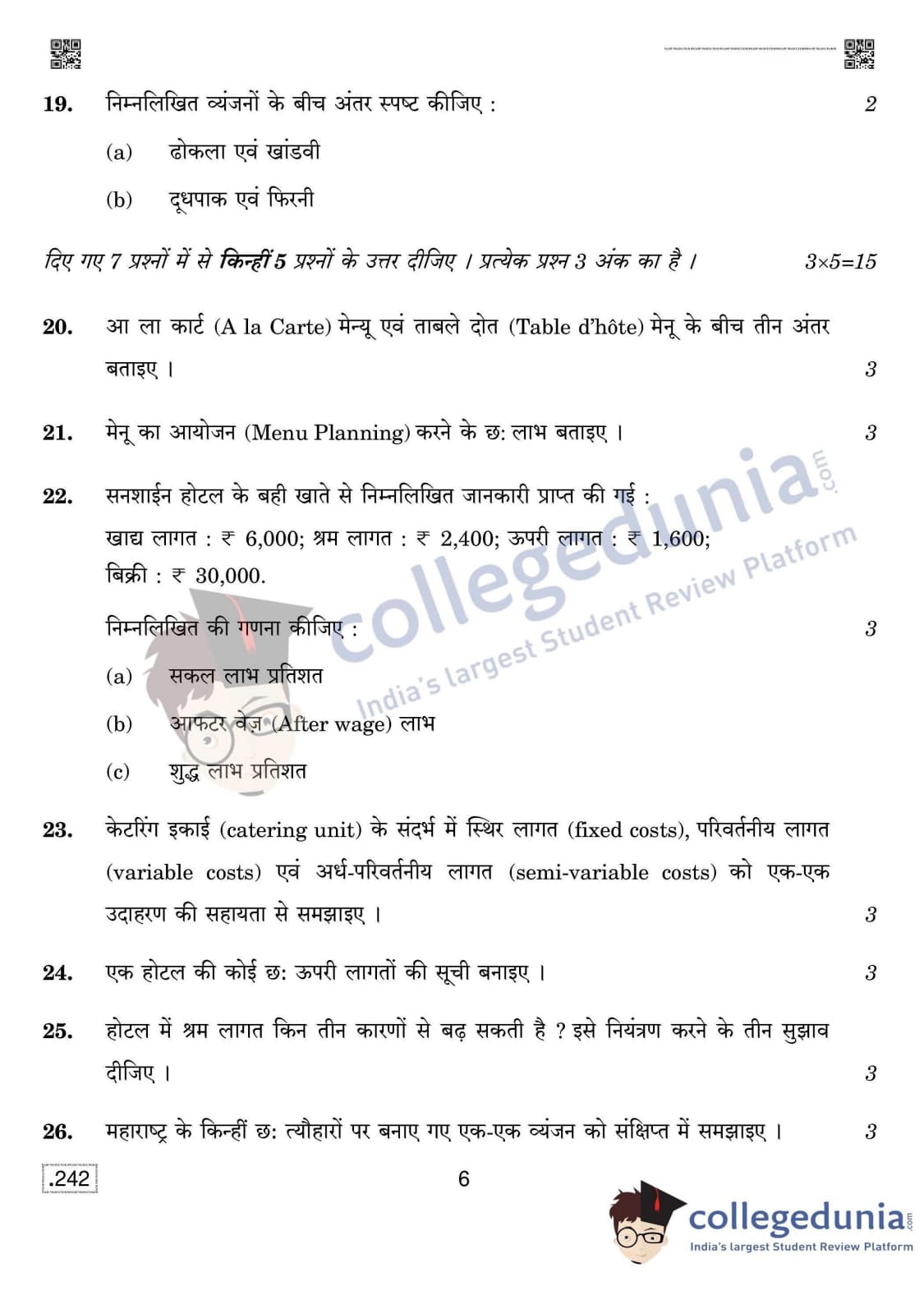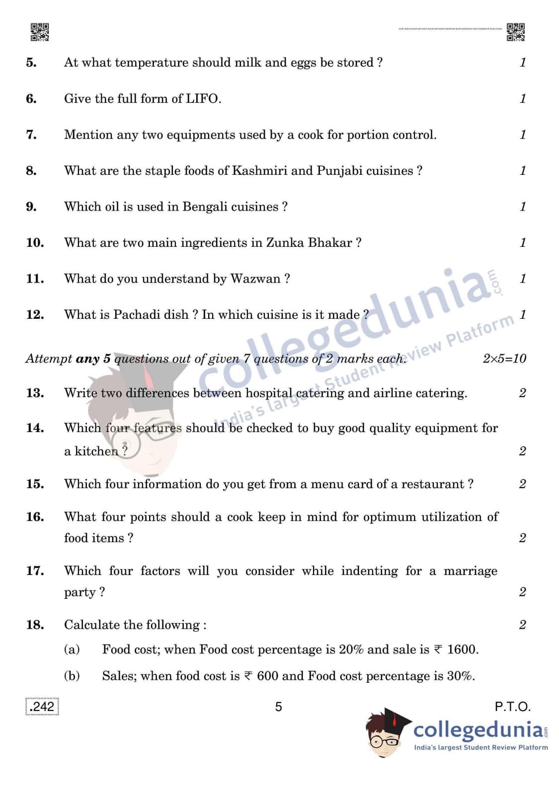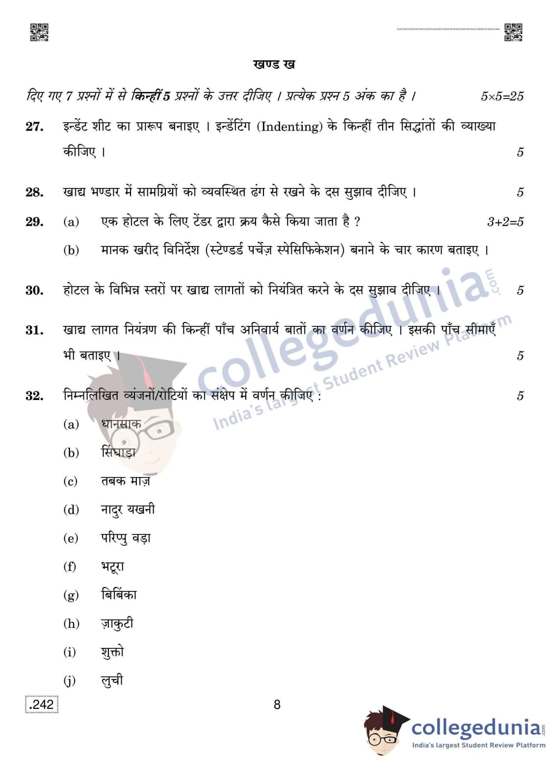 CBSE Class 12 Food Production IV Question Paper 2020 with Answer Key Set 4 - 242 is available for download. The exam was conducted by the Central Board of Secondary Education on February 15, 2020 in the Morning Session 10:30 AM to 1:30 PM. The medium of paper was English & Hindi. The question paper comprised a total of 33 questions divided among 2 sections.