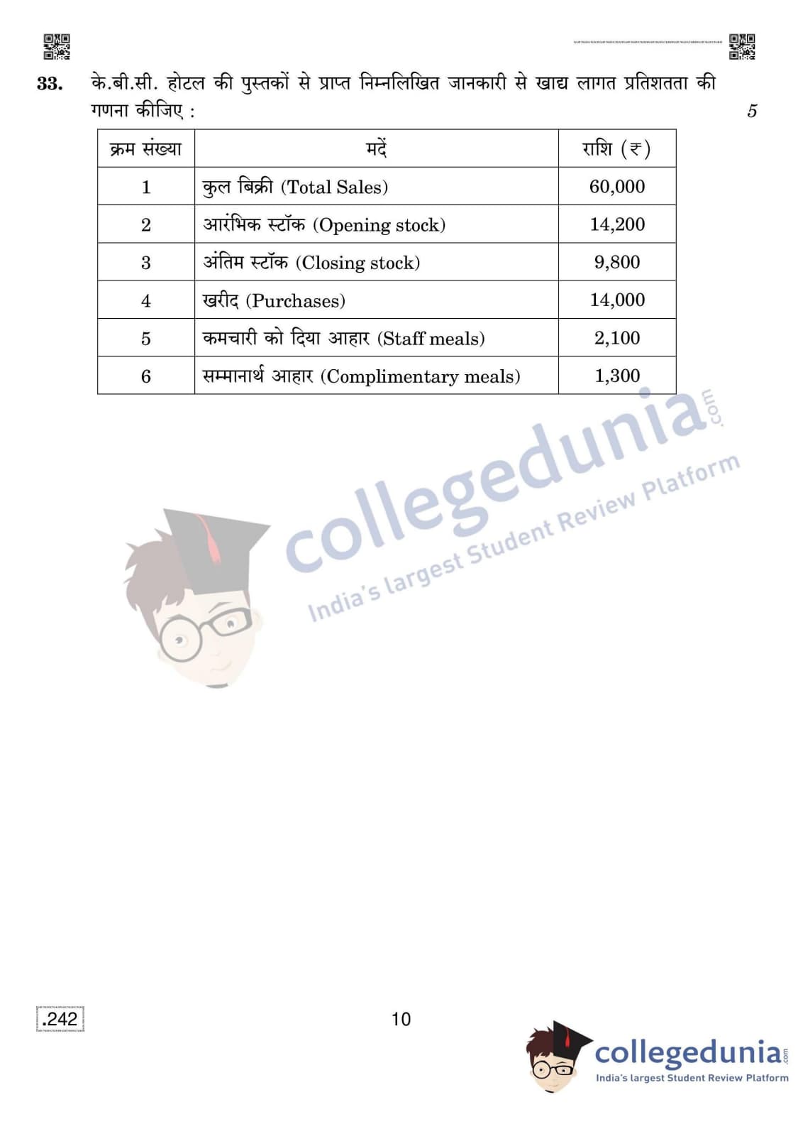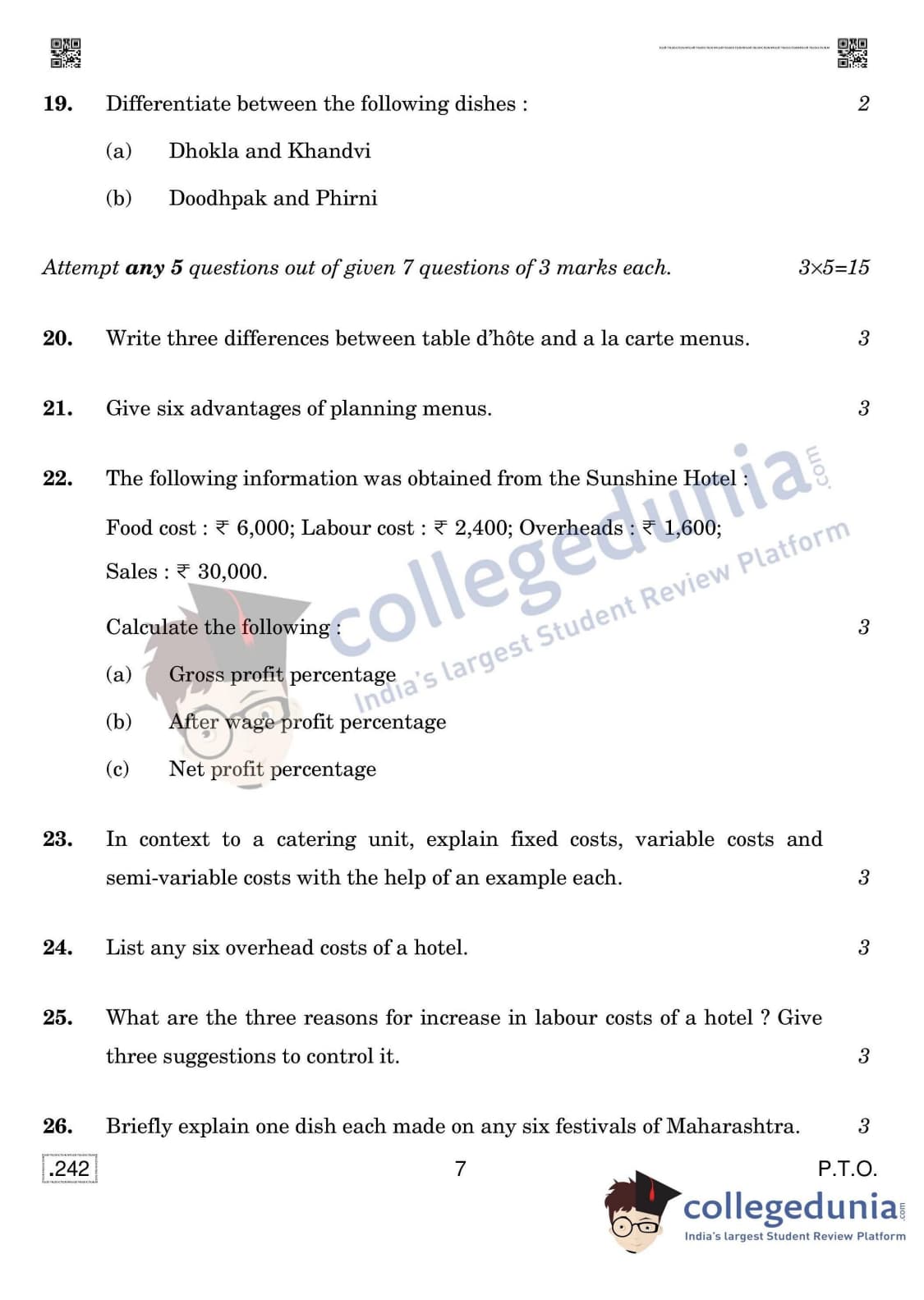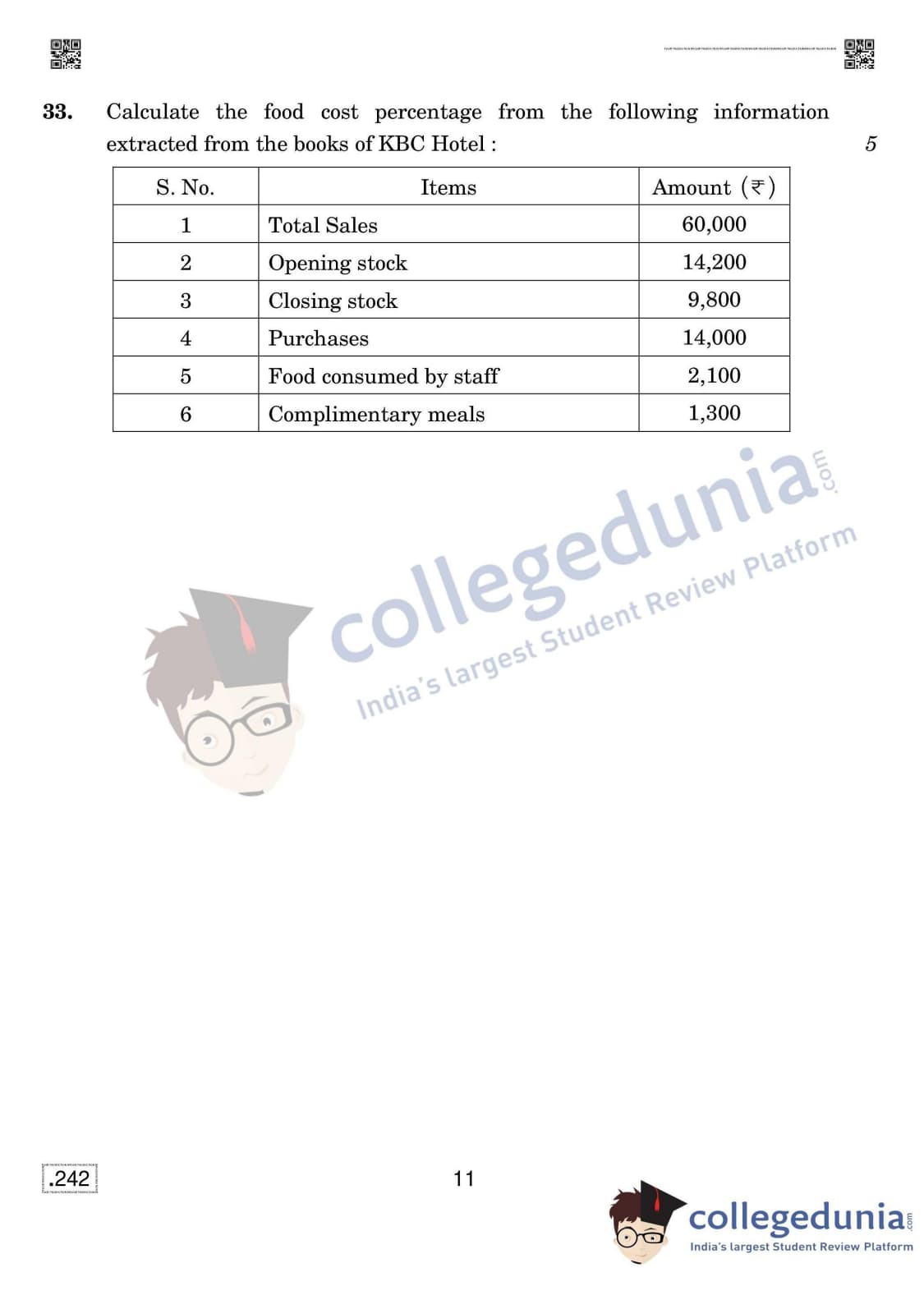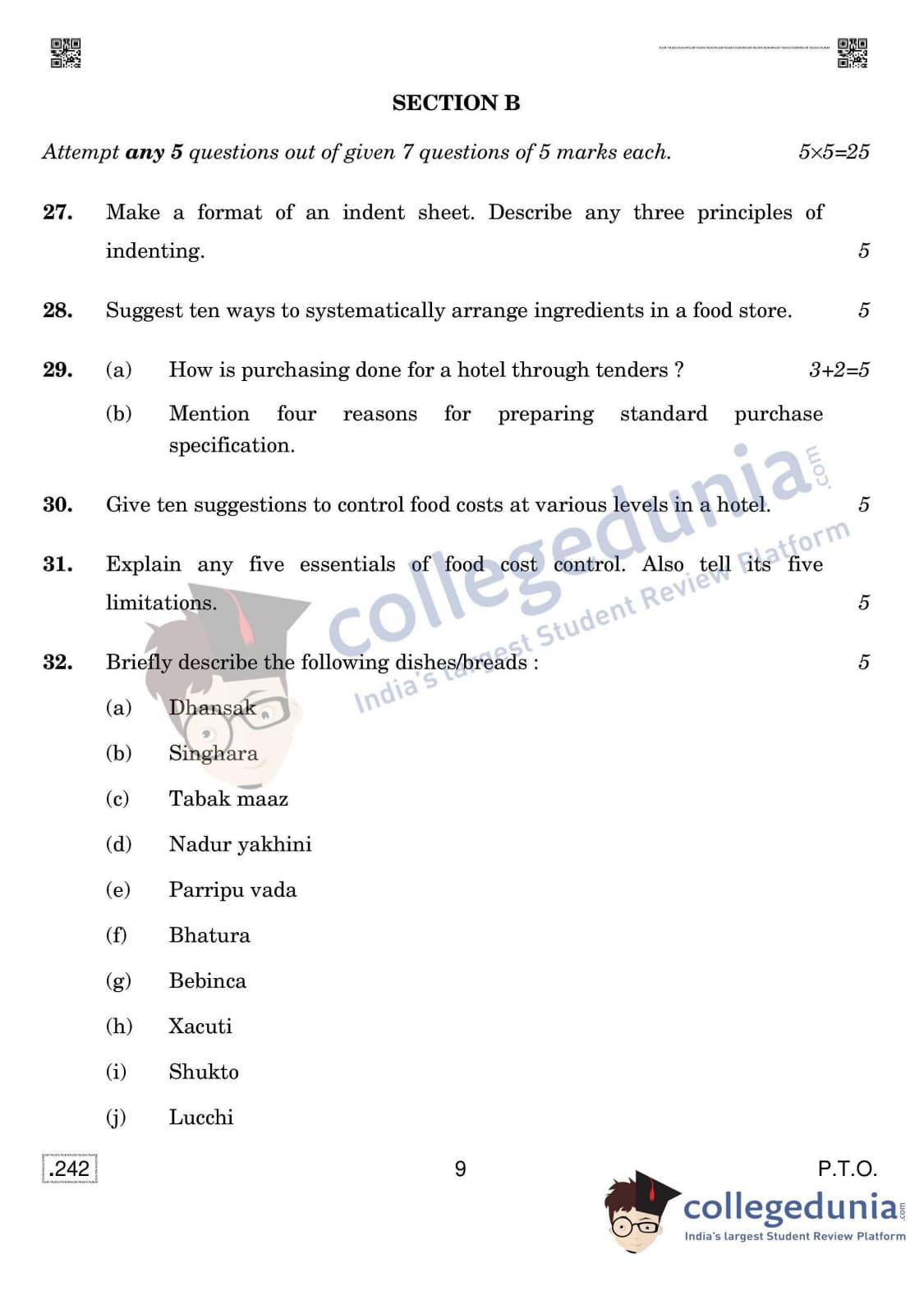 CBSE Class 12 Food Production IV Question Paper 2020 with Answer Key Set 4 - 242 is available for download. The exam was conducted by the Central Board of Secondary Education on February 15, 2020 in the Morning Session 10:30 AM to 1:30 PM. The medium of paper was English & Hindi. The question paper comprised a total of 33 questions divided among 2 sections.
