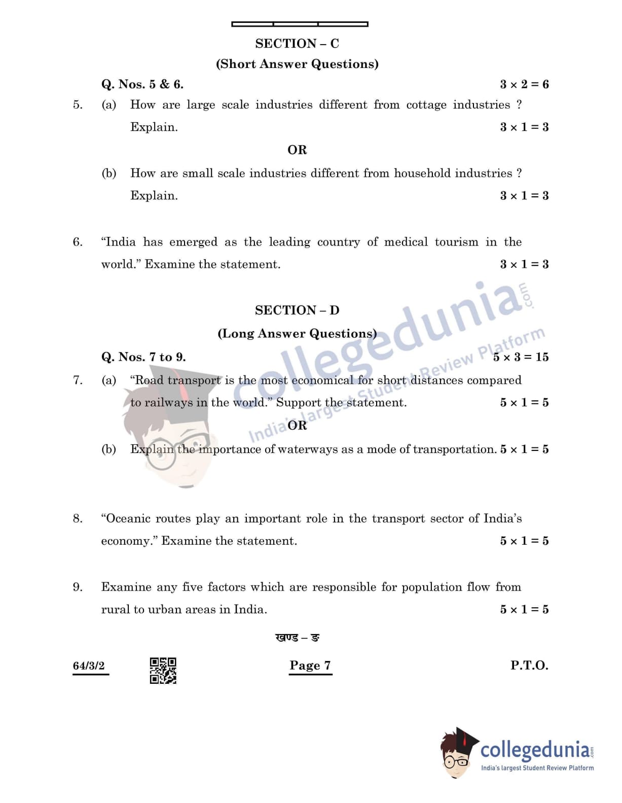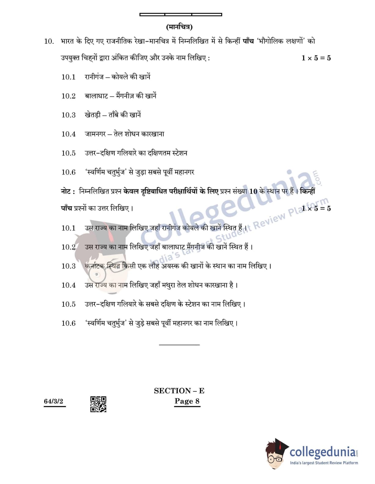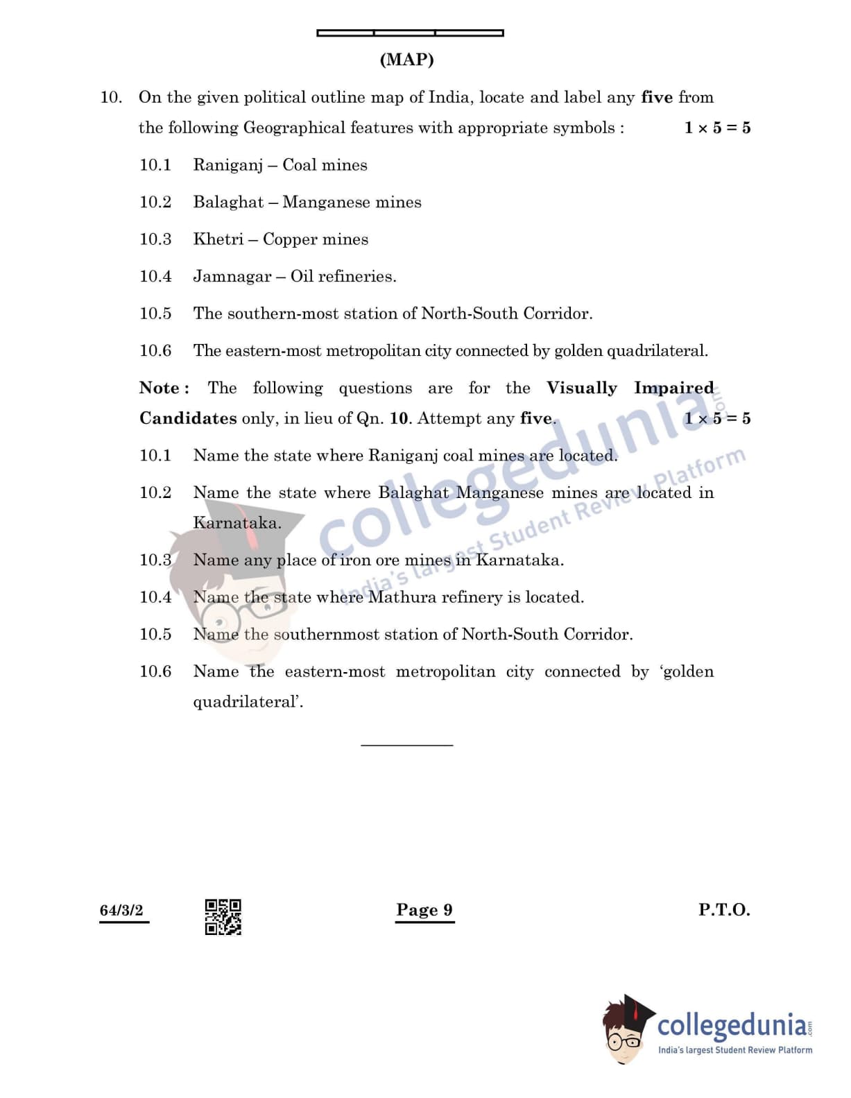 CBSE Class 12 Geography Question Paper 2022 with Answer Key (May 20, Set 2 - 64/3/2- Morning Session)