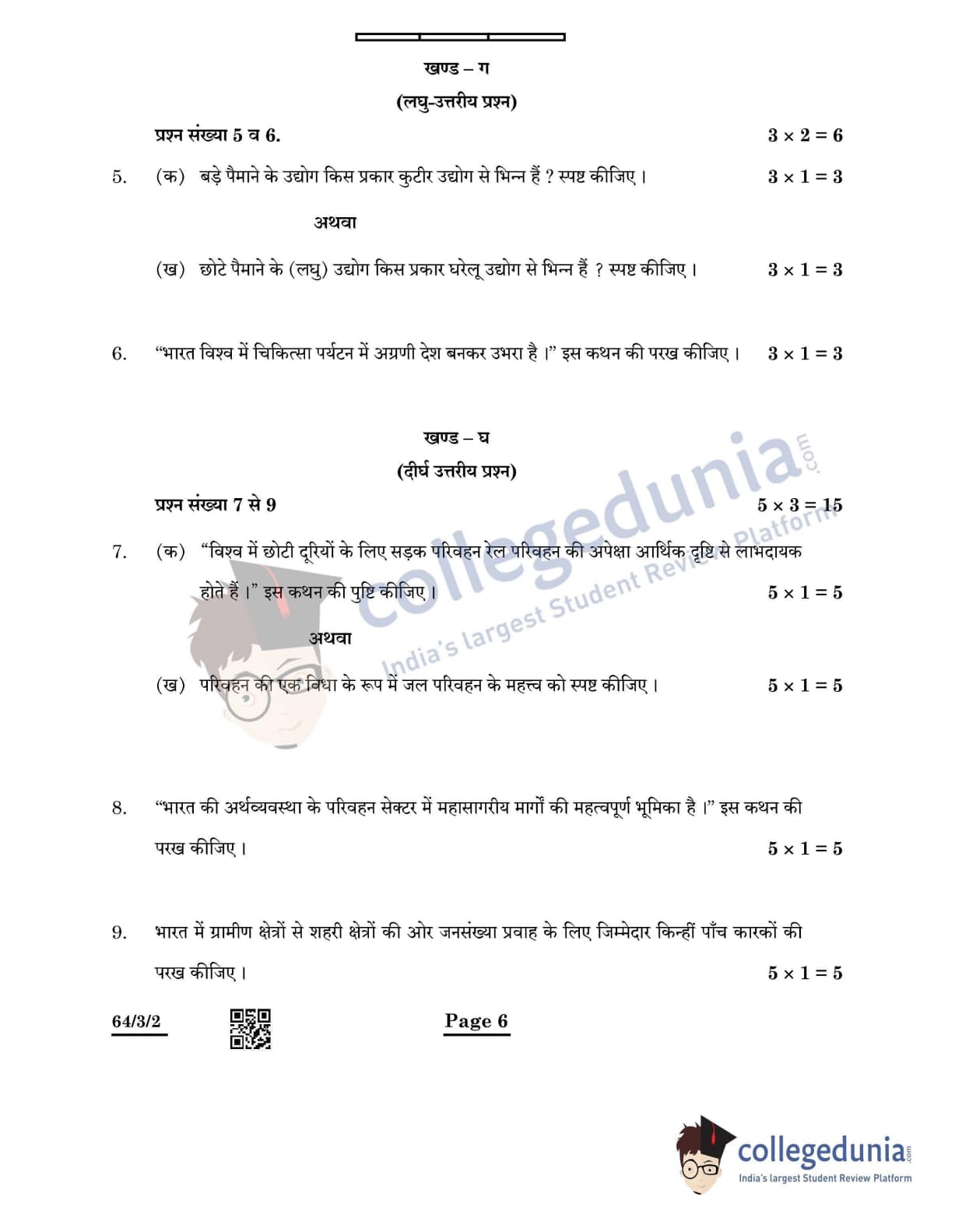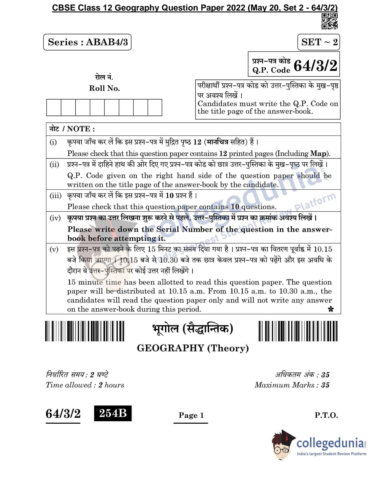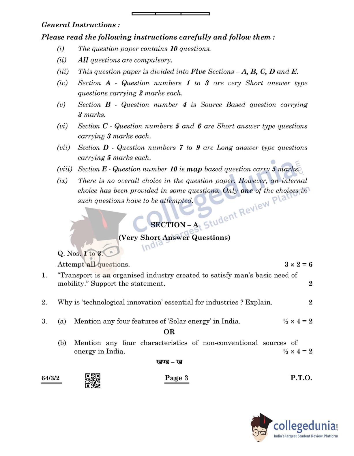 CBSE Class 12 Geography Question Paper 2022 with Answer Key (May 20, Set 2 - 64/3/2- Morning Session)