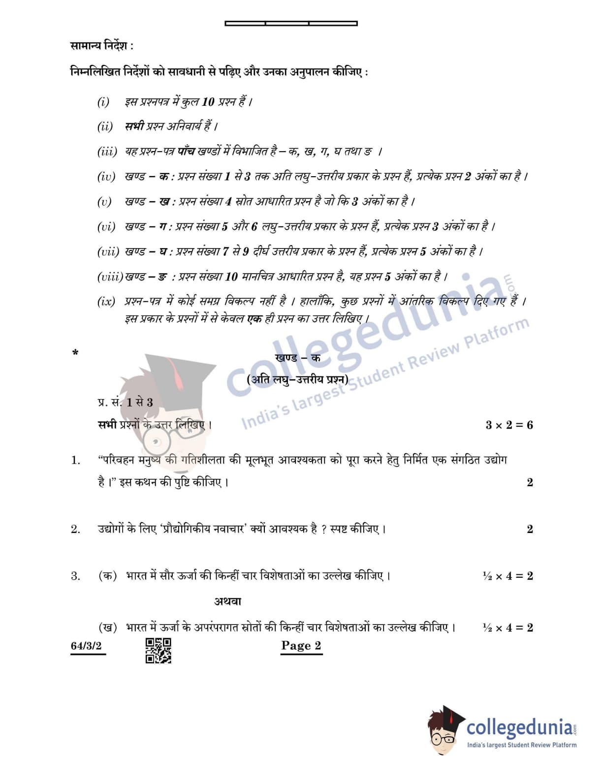 CBSE Class 12 2022 Geography Question Paper Set 2 - 64/3/2 with Answer Key pdf is available for download. The exam was conducted by Central Board of Secondary Education on May 20, 2022 in the Morning Session 10:30 AM to 12:30 PM. The medium of paper was English & Hindi. In terms of difficulty level, CBSE Class 12 Geography paper was of Moderate level. The question paper comprised a total of 10 questions divided among 5 sections.