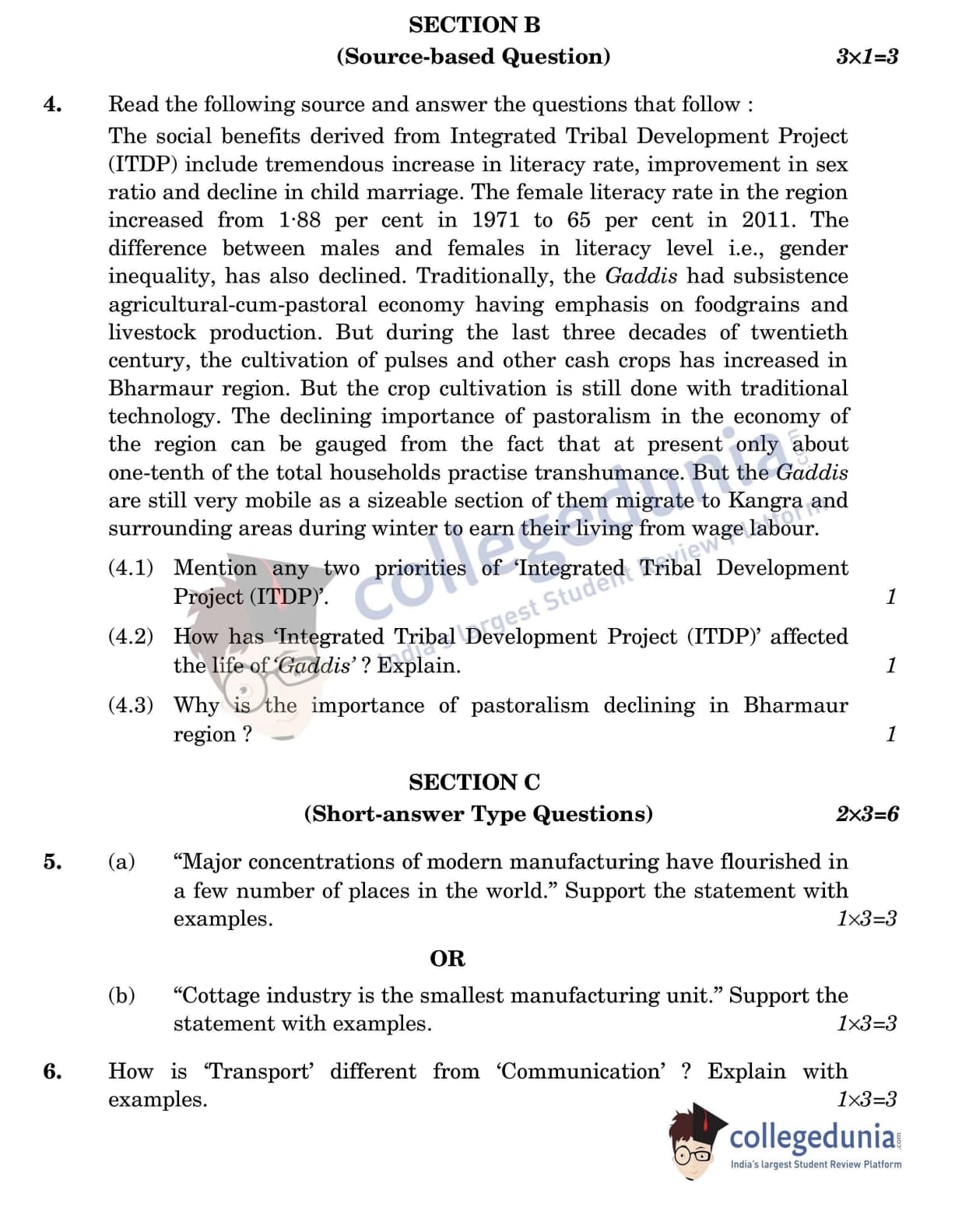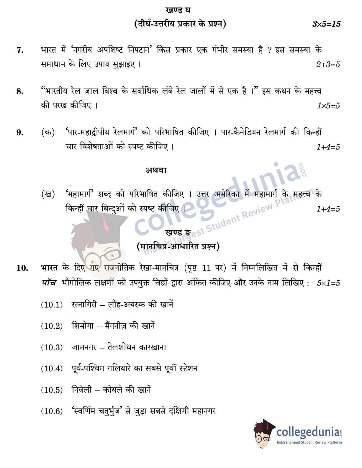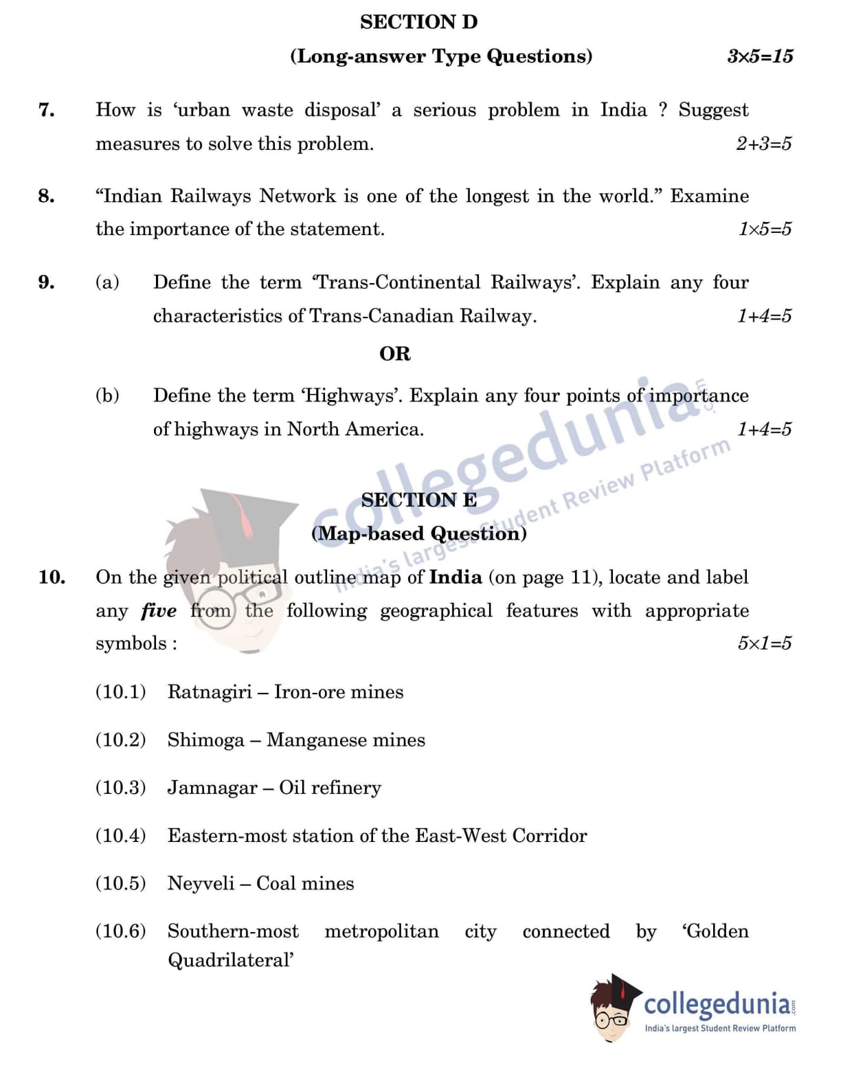 CBSE Class 12 Geography Question Paper 2022 with Answer Key (May 20, Set 3 - 64/2/3- Morning Session)