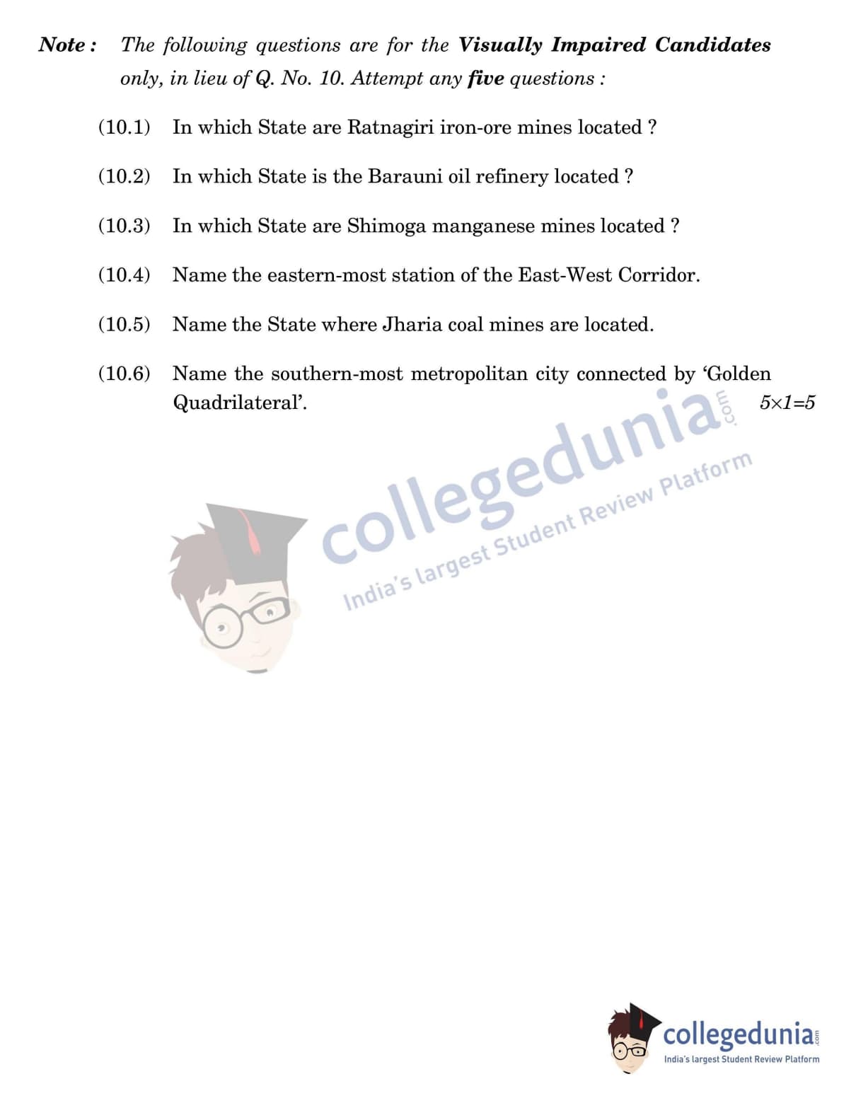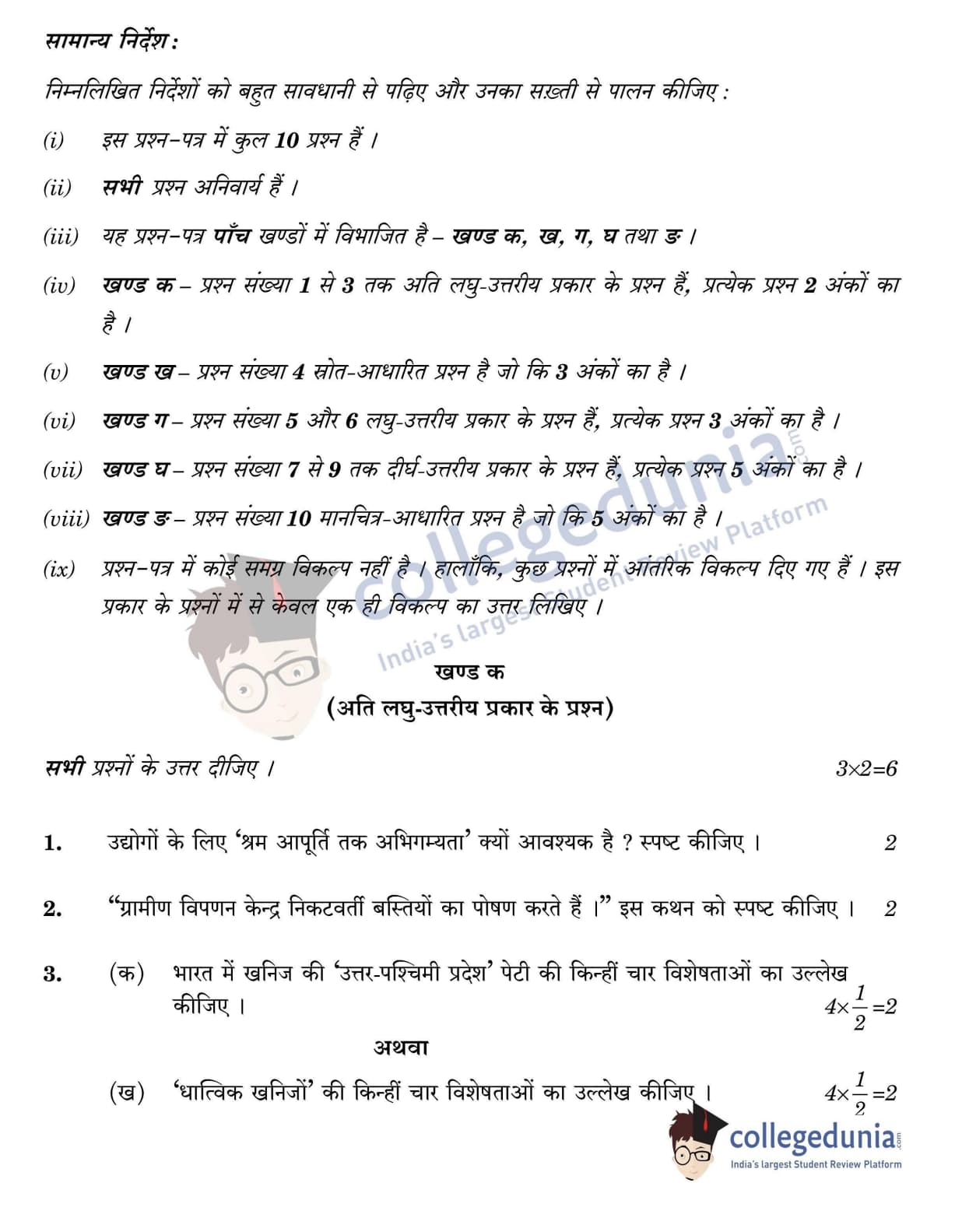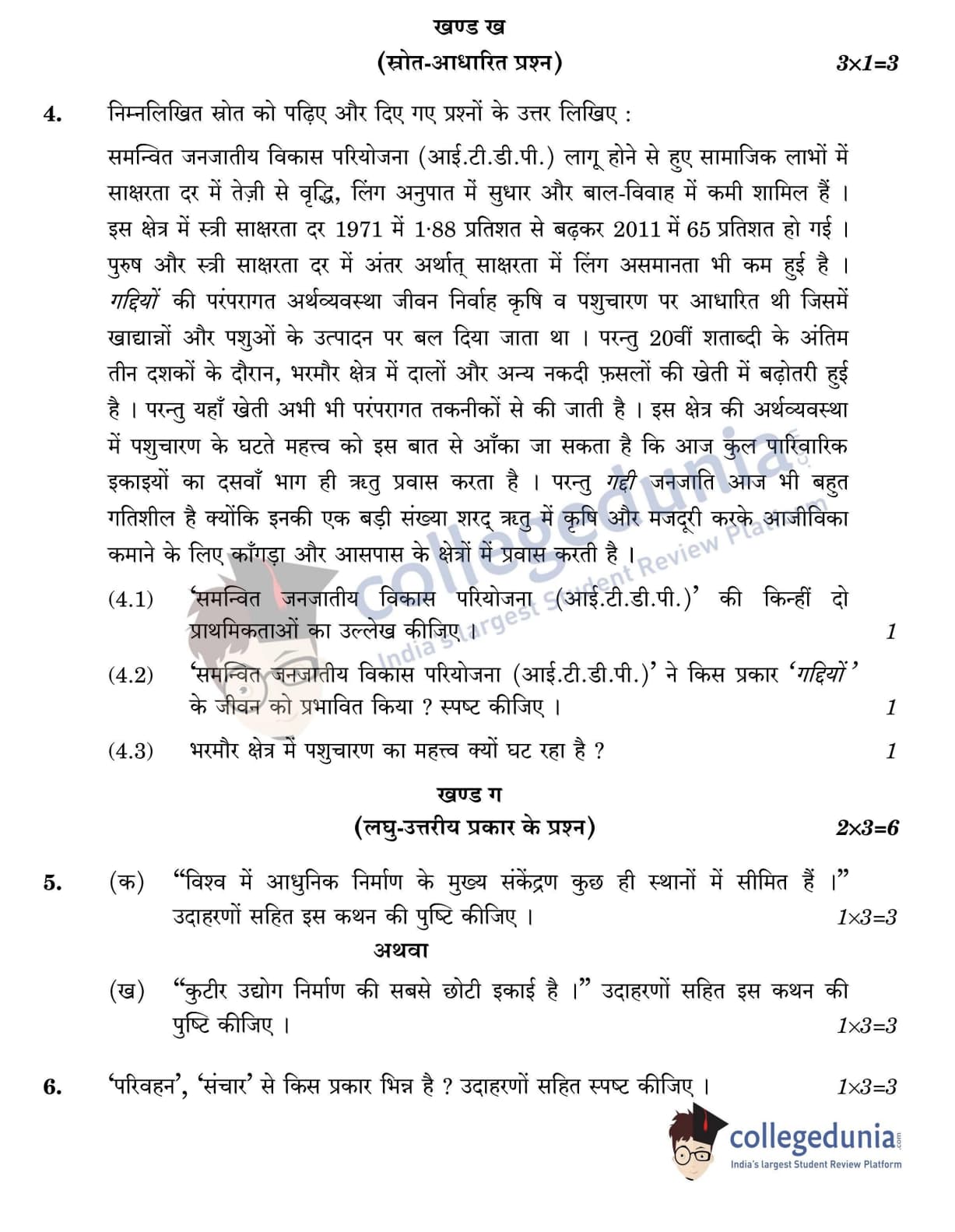 CBSE Class 12 Geography Question Paper 2022 with Answer Key (May 20, Set 3 - 64/2/3- Morning Session)