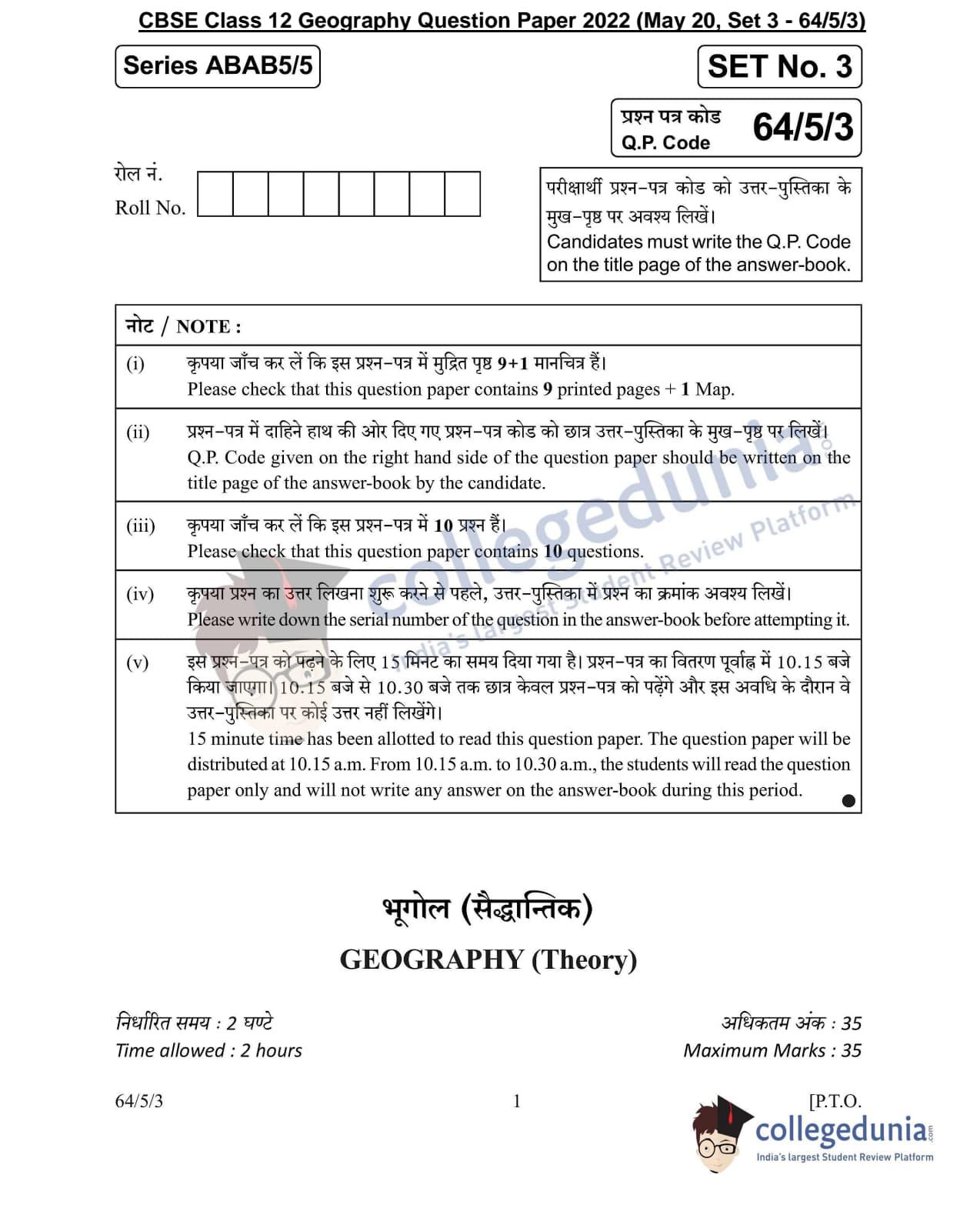 CBSE Class 12 Geography Question Paper 2022 with Answer Key (May 20)