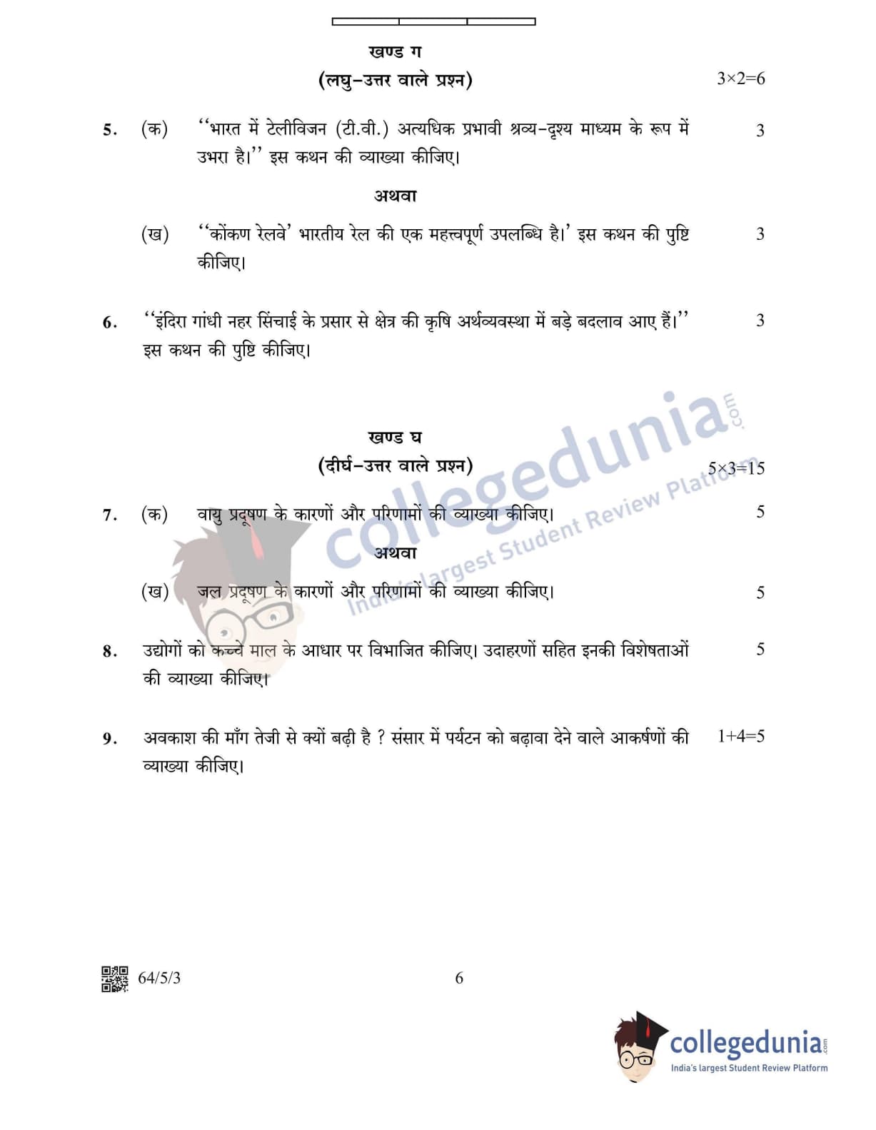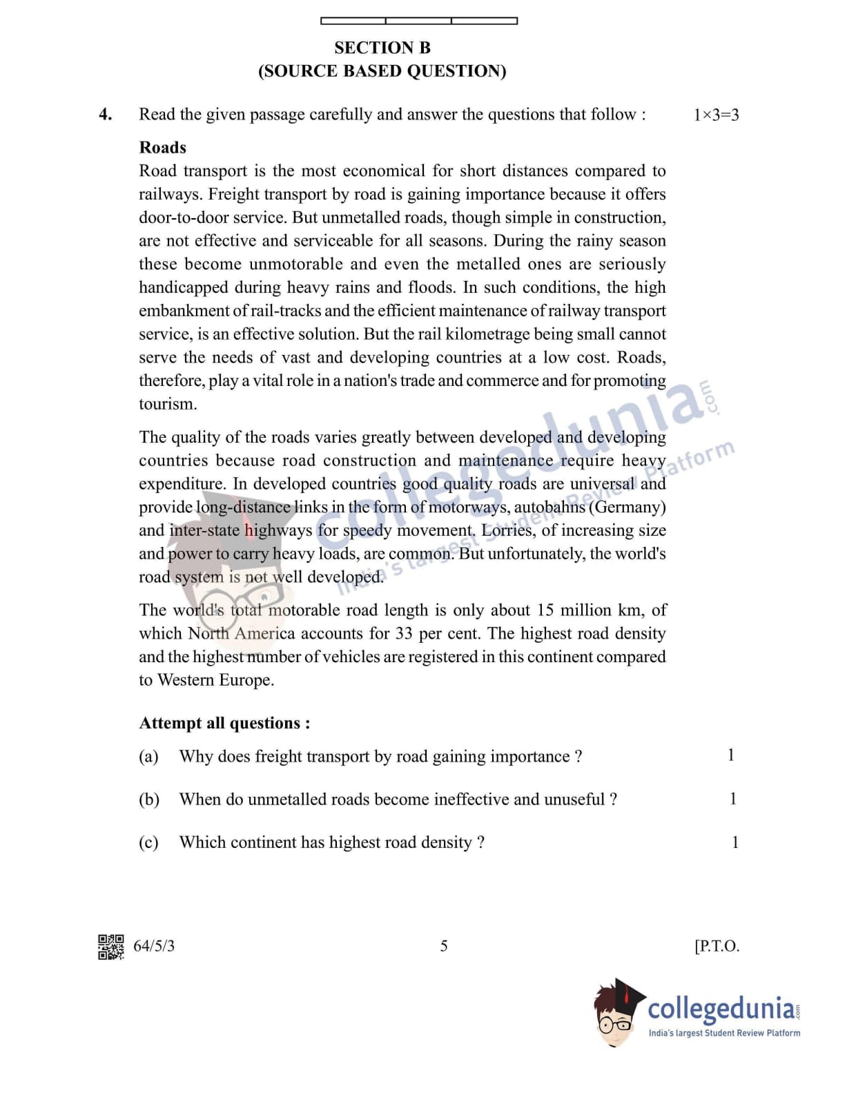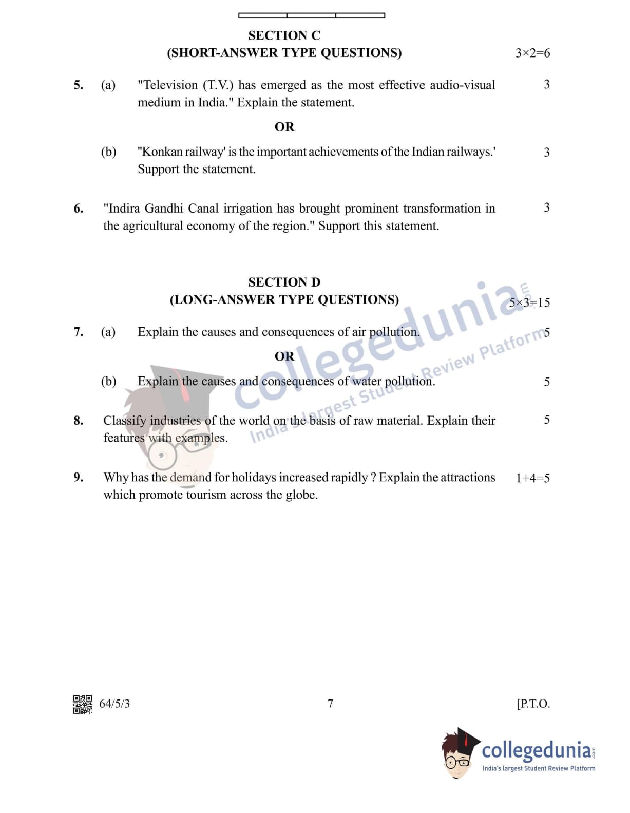 CBSE Class 12 2022 Geography Question Paper Set 3 - 64/5/3 with Answer Key pdf is available for download. The exam was conducted by Central Board of Secondary Education on May 20, 2022 in the Morning Session 10:30 AM to 12:30 PM. The medium of paper was English & Hindi. In terms of difficulty level, CBSE Class 12 Geography paper was of Moderate level. The question paper comprised a total of 10 questions divided among 5 sections.