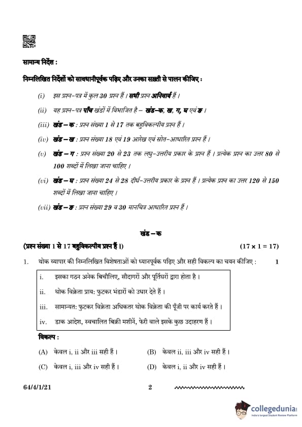 | CBSE Class 12 2024 Geography Question Paper with Answer Key | Check Solution |