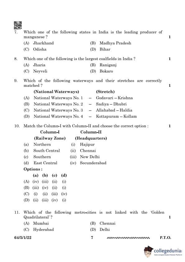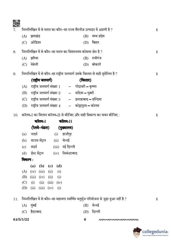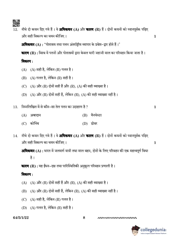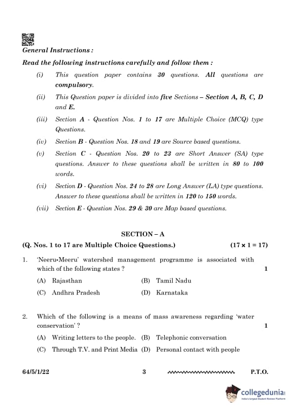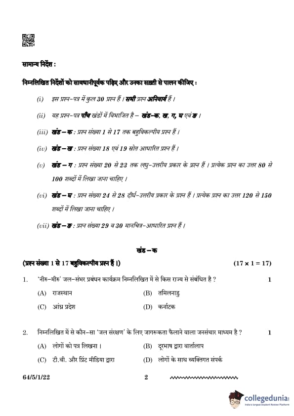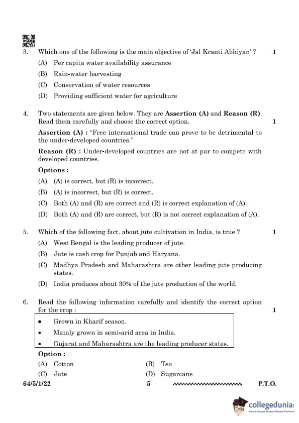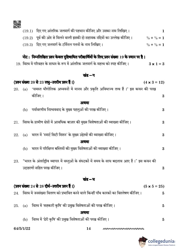 | CBSE Class 12 2024 Geography Question Paper with Answer Key | Check Solution |