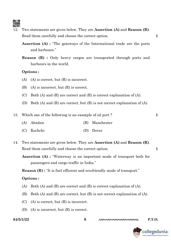 Assertion (A): "Waterway is an important mode of transport both for passengers and cargo traffic in India."