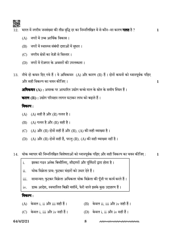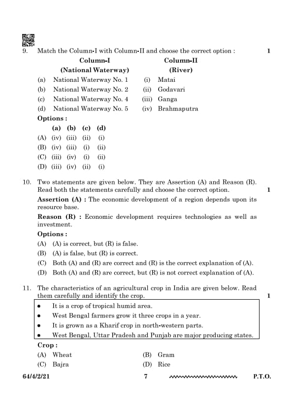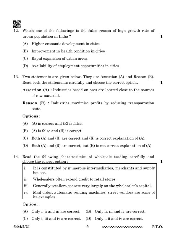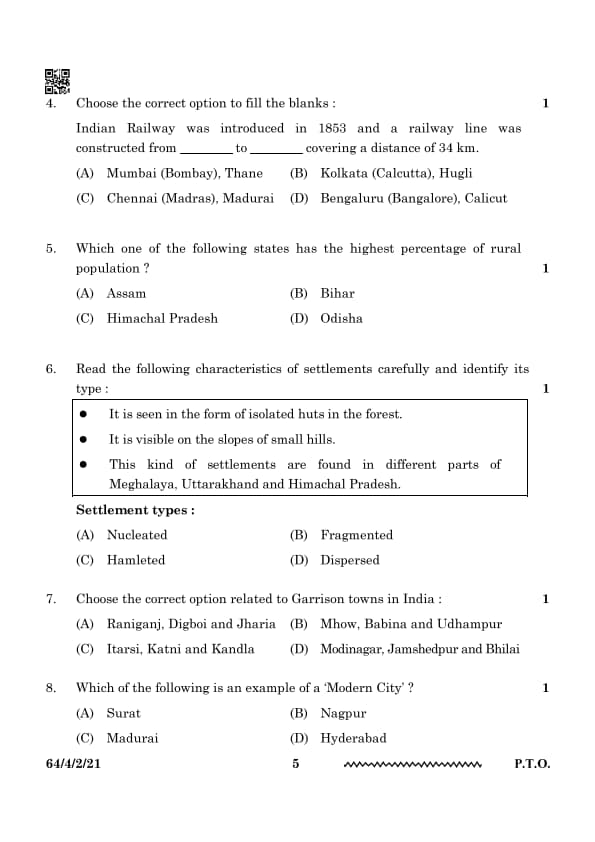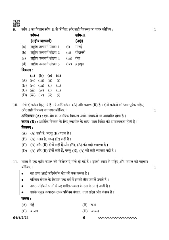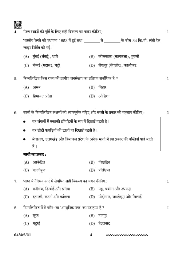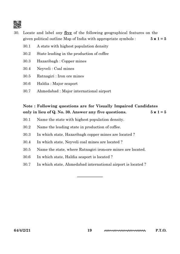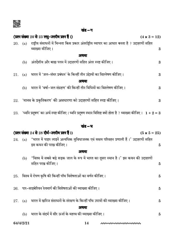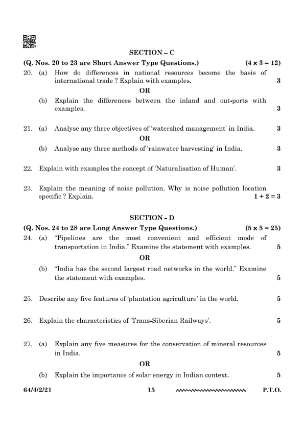 | CBSE Class 12 2024 Geography Question Paper with Answer Key | Check Solution |