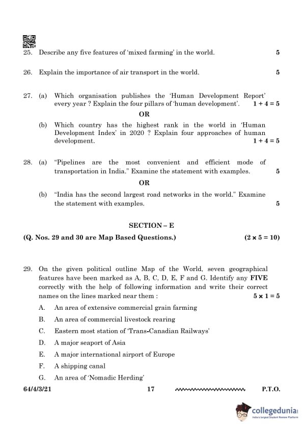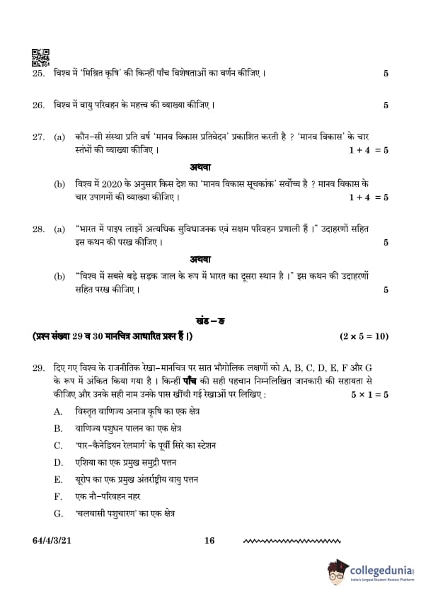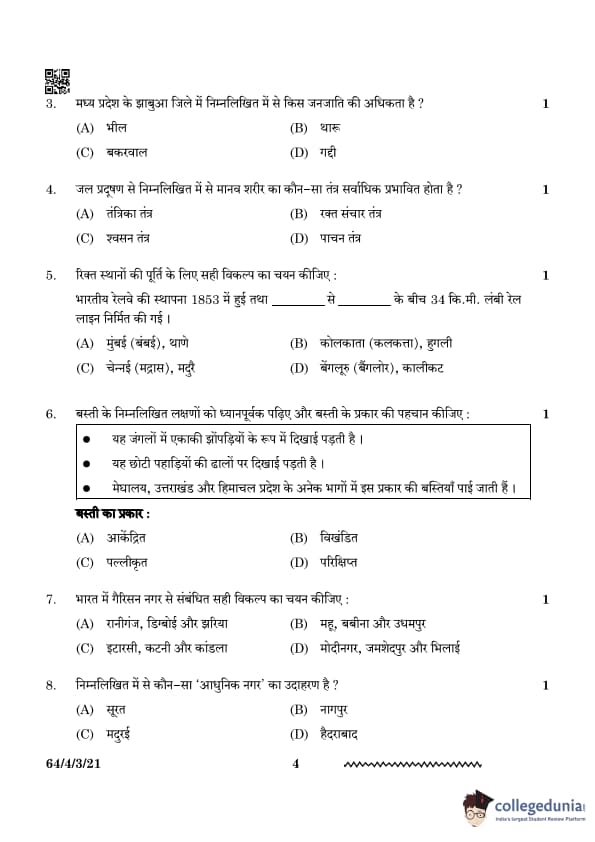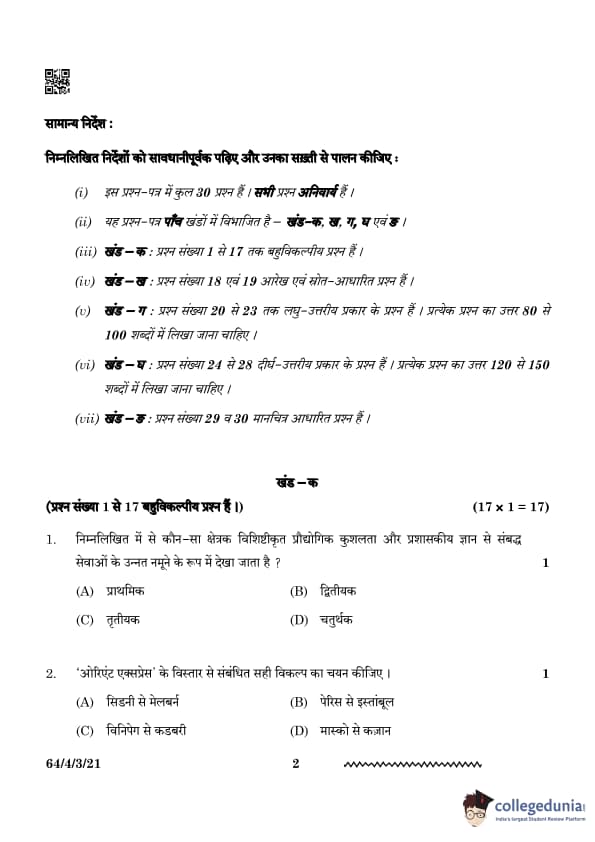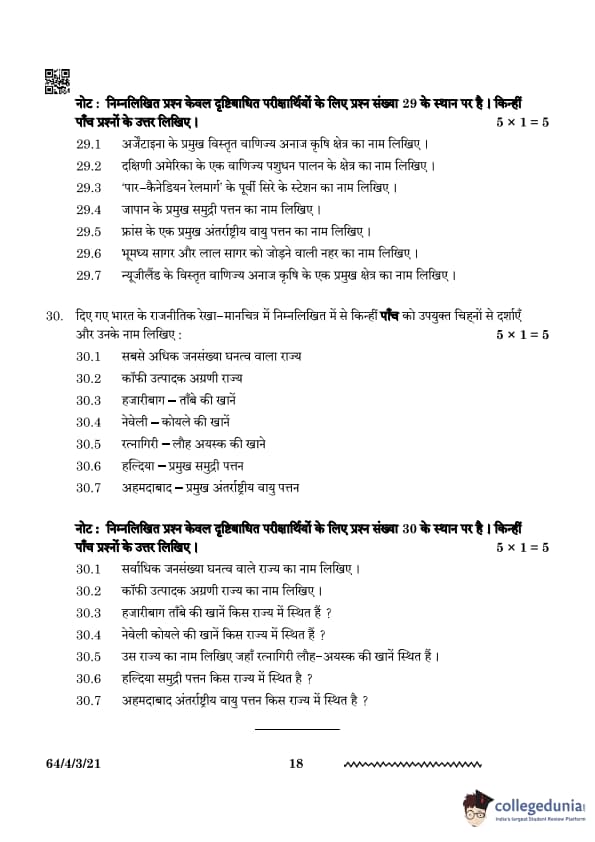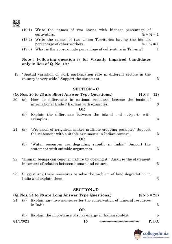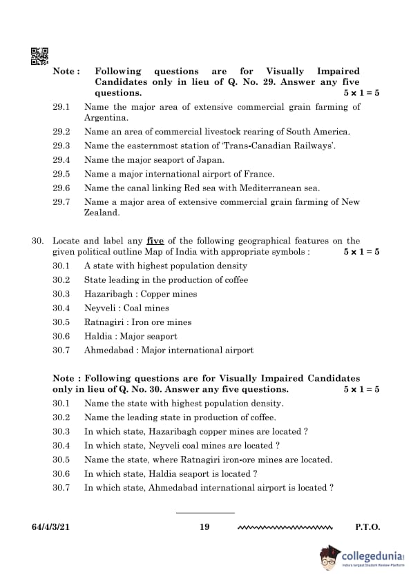 | CBSE Class 12 2024 Geography Question Paper with Answer Key | Check Solution |