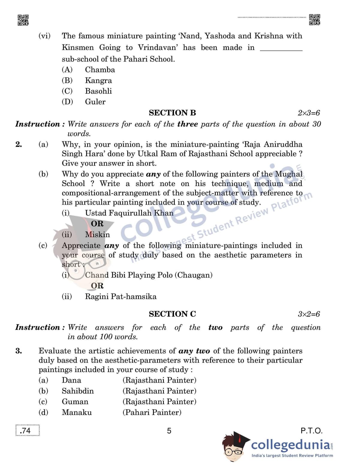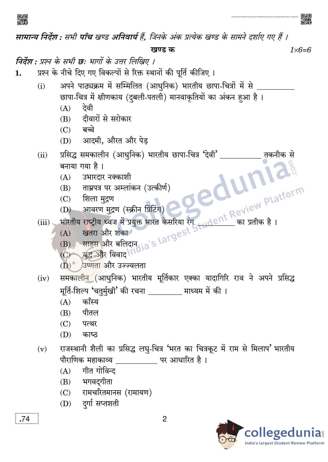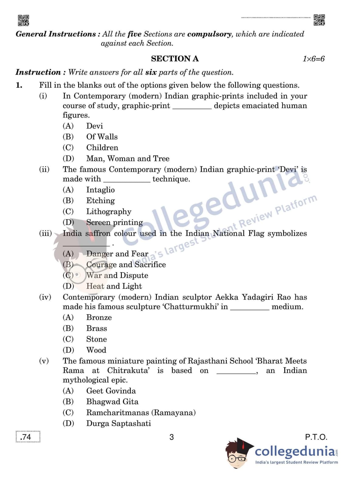 CBSE Class 12 Graphics Set 4 Question Paper 2020 with Answer Key (February 20)