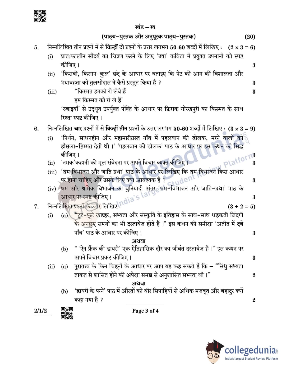 CBSE Class 12 2022 Hindi Core Question Paper Set 2 - 2/1/2 with Answer Key pdf is available for download. The exam was conducted by Central Board of Secondary Education on May 2, 2022 in the Morning Session 10:30 AM to 12:30 PM. The medium of paper was Hindi. In terms of difficulty level, CBSE Class 12 Hindi Core paper was of Moderate to Difficult level. The question paper comprised a total of 7 questions divided among 2 sections.