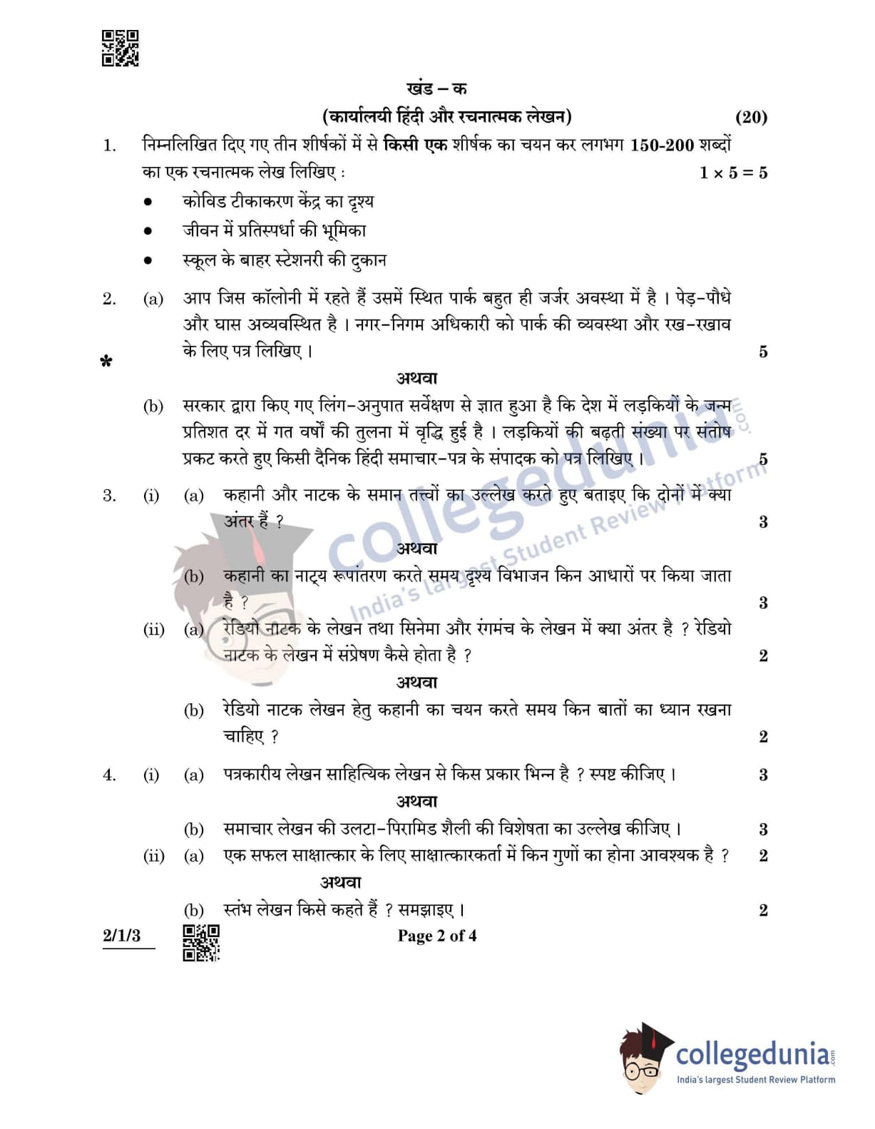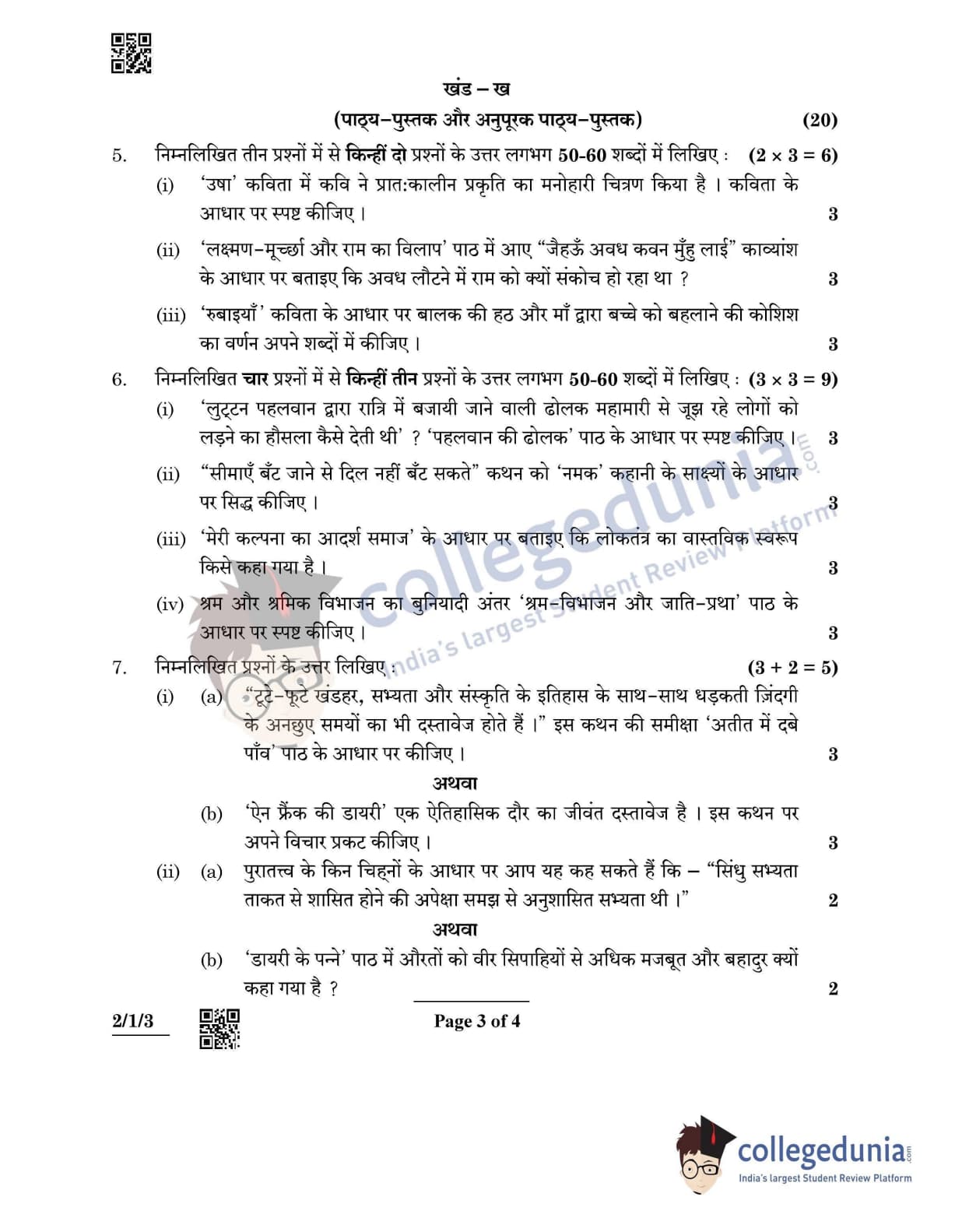 CBSE Class 12 Hindi Core Set 3 - 2/1/3 Question Paper 2022 with Answer Key (May 2)