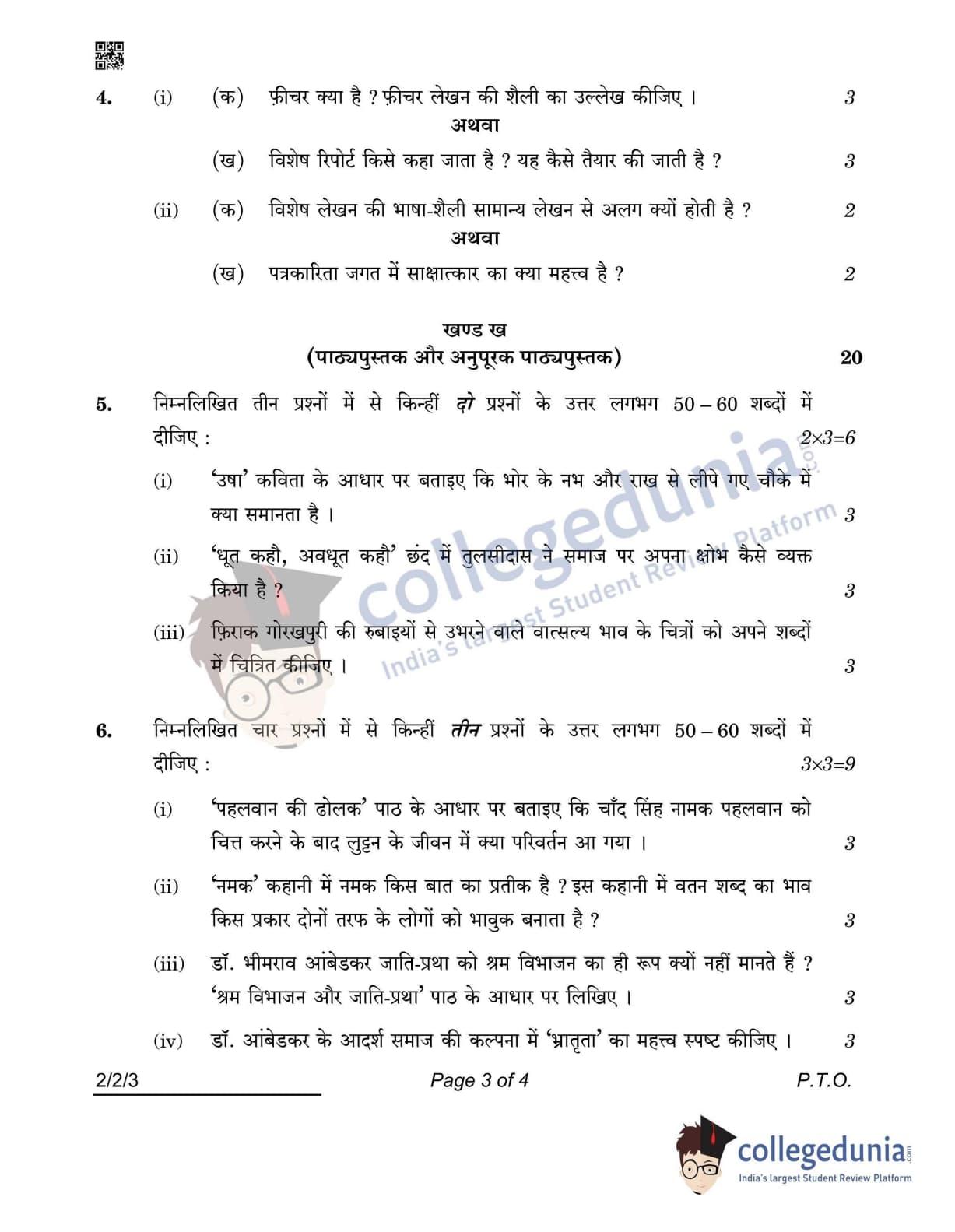 CBSE Class 12 Hindi Core Set 3 - 2/2/3 Question Paper 2022 with Answer Key (May 2)