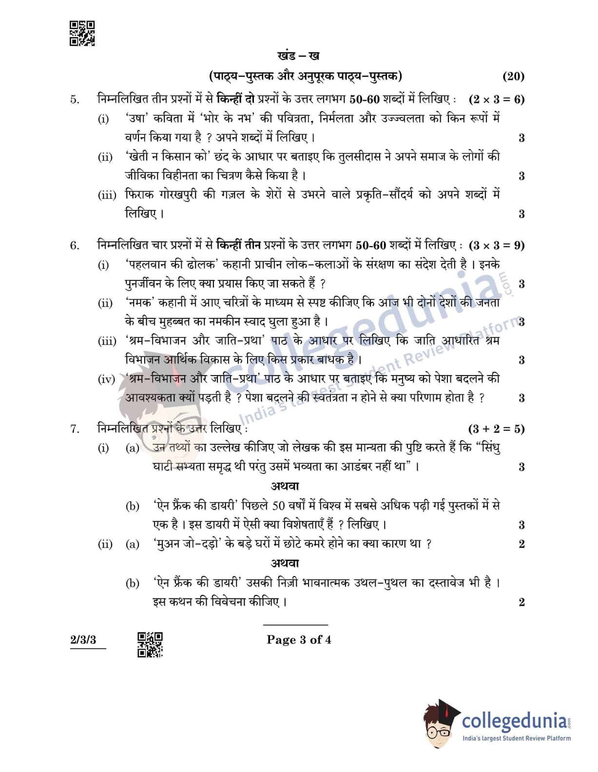 CBSE Class 12 Hindi Core Set 3 - 2/3/3 Question Paper 2022 with Answer Key (May 2)