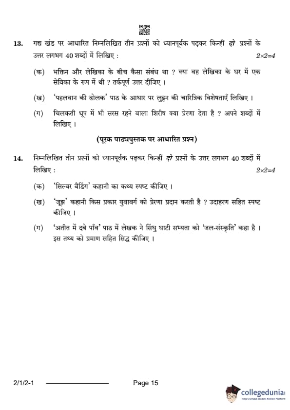 गद्य खंड पर आधारित निम्नलिखित तीन प्रश्नों को ध्यानपूर्वक पढ़कर किन्हीं दो प्रश्नों के उत्तर लगभग 40 शब्दों में लिखिए: