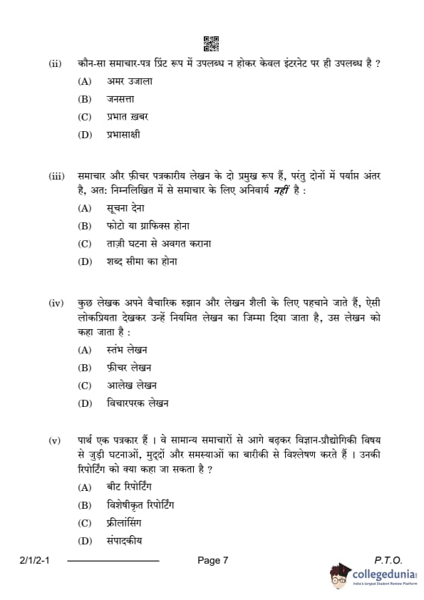 'प्रभासाक्षी' एक डिजिटल समाचार पोर्टल है, जो केवल इंटरनेट पर उपलब्ध है और इसे प्रिंट में प्रकाशित नहीं किया जाता। अन्य समाचार-पत्रों की तरह इसका कोई मुद्रित संस्करण नहीं होता।(iii) समाचार और फीचर पत्रकारीय लेखन के दो प्रमुख रूप हैं, परंतु दोनों में पर्याप्त अंतर है। अतः निम्नलिखित में से समाचार के लिए अनिवार्य नहीं है: