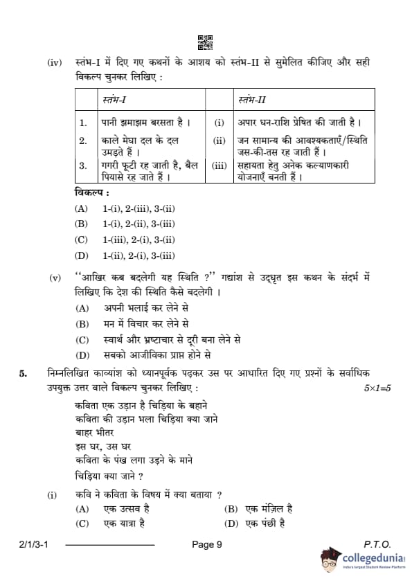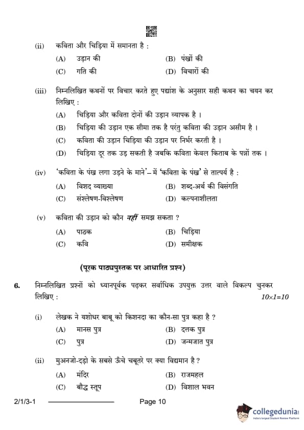 CBSE Class 12 Hindi Question Paper with Solution