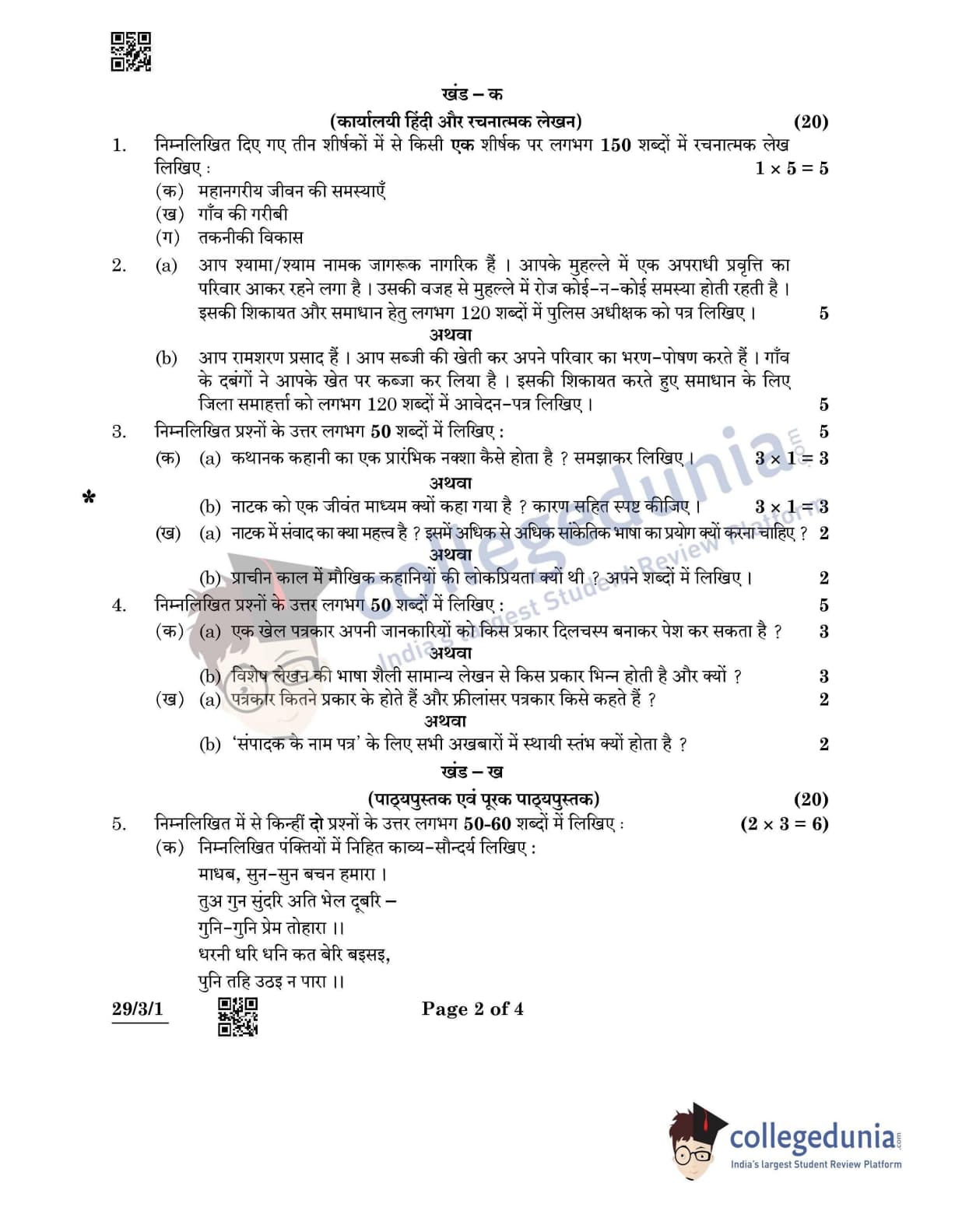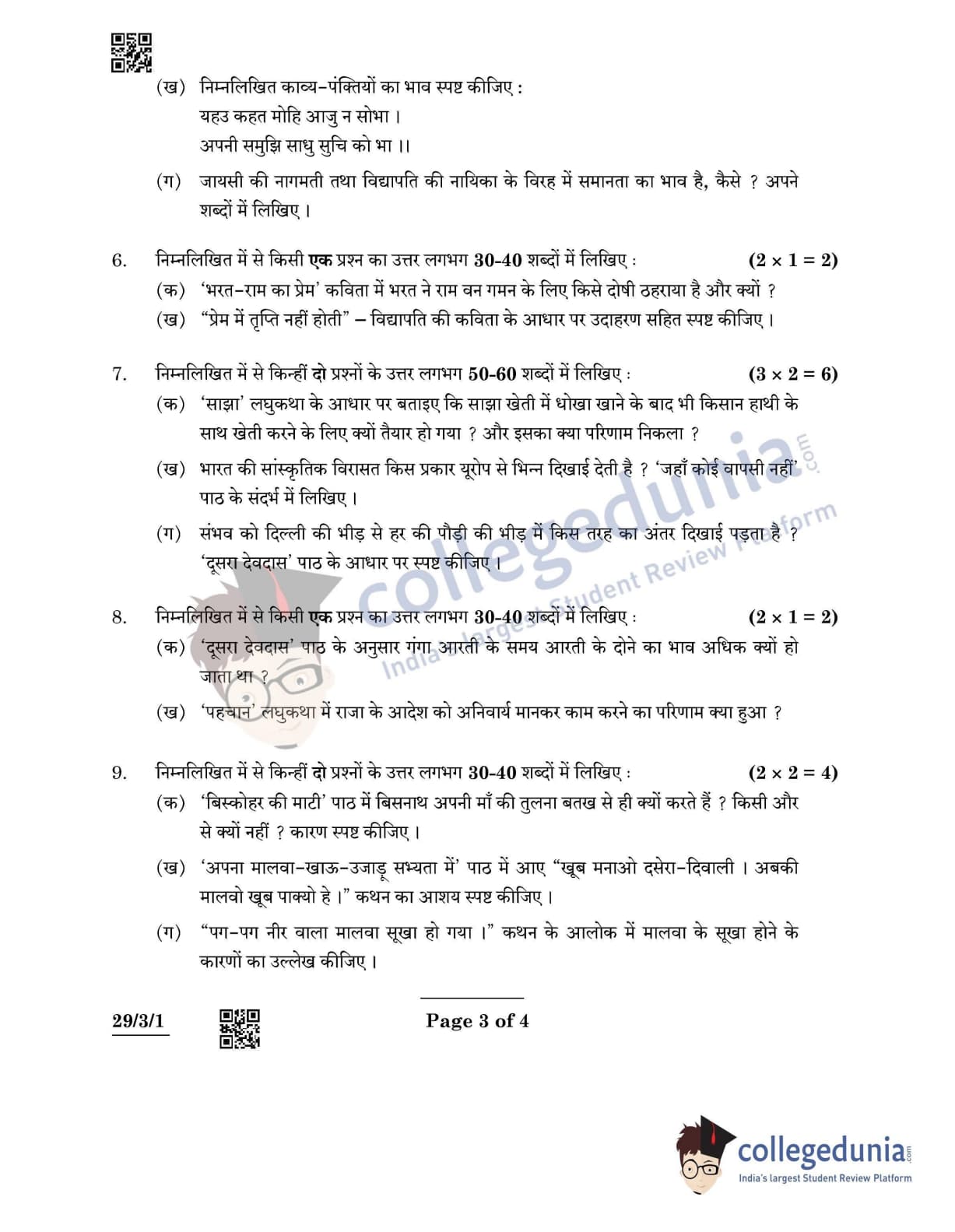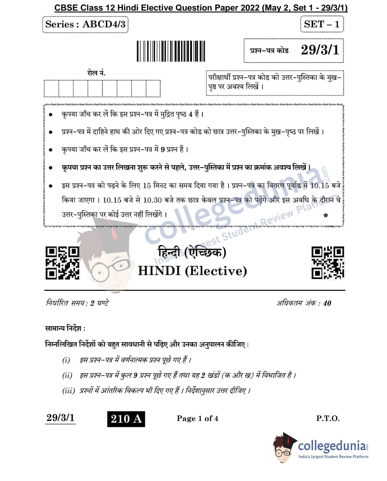 CBSE Class 12 Hindi Elective Set 1 - 29/3/1 Question Paper 2022 with Answer Key (May 2)