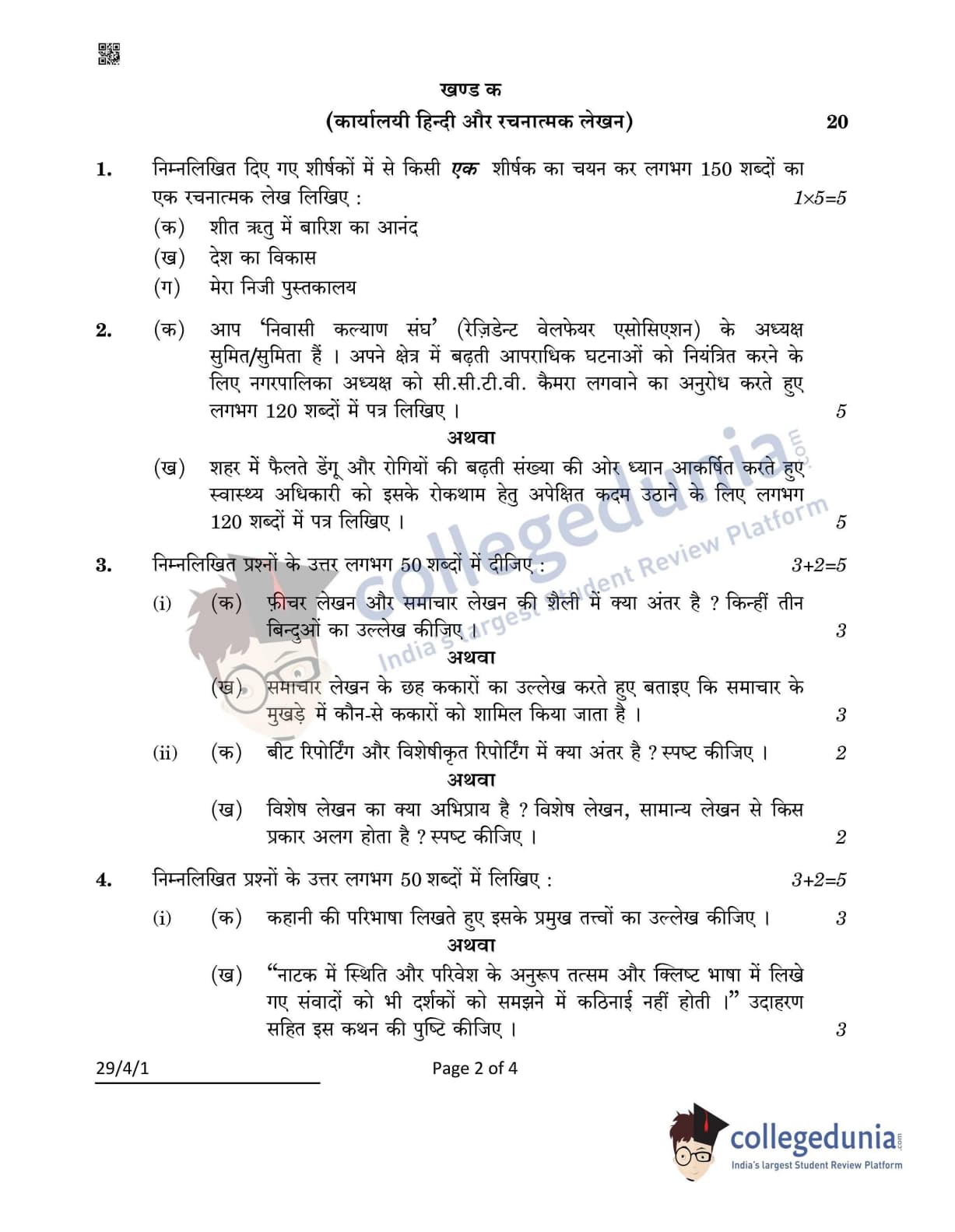 CBSE Class 12 Hindi Elective Set 1 - 29/4/1 Question Paper 2022 with Answer Key (May 2)