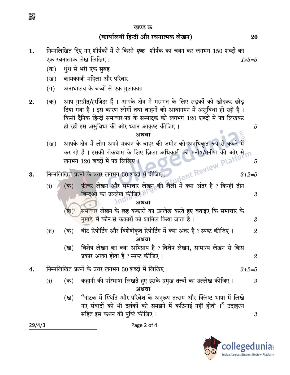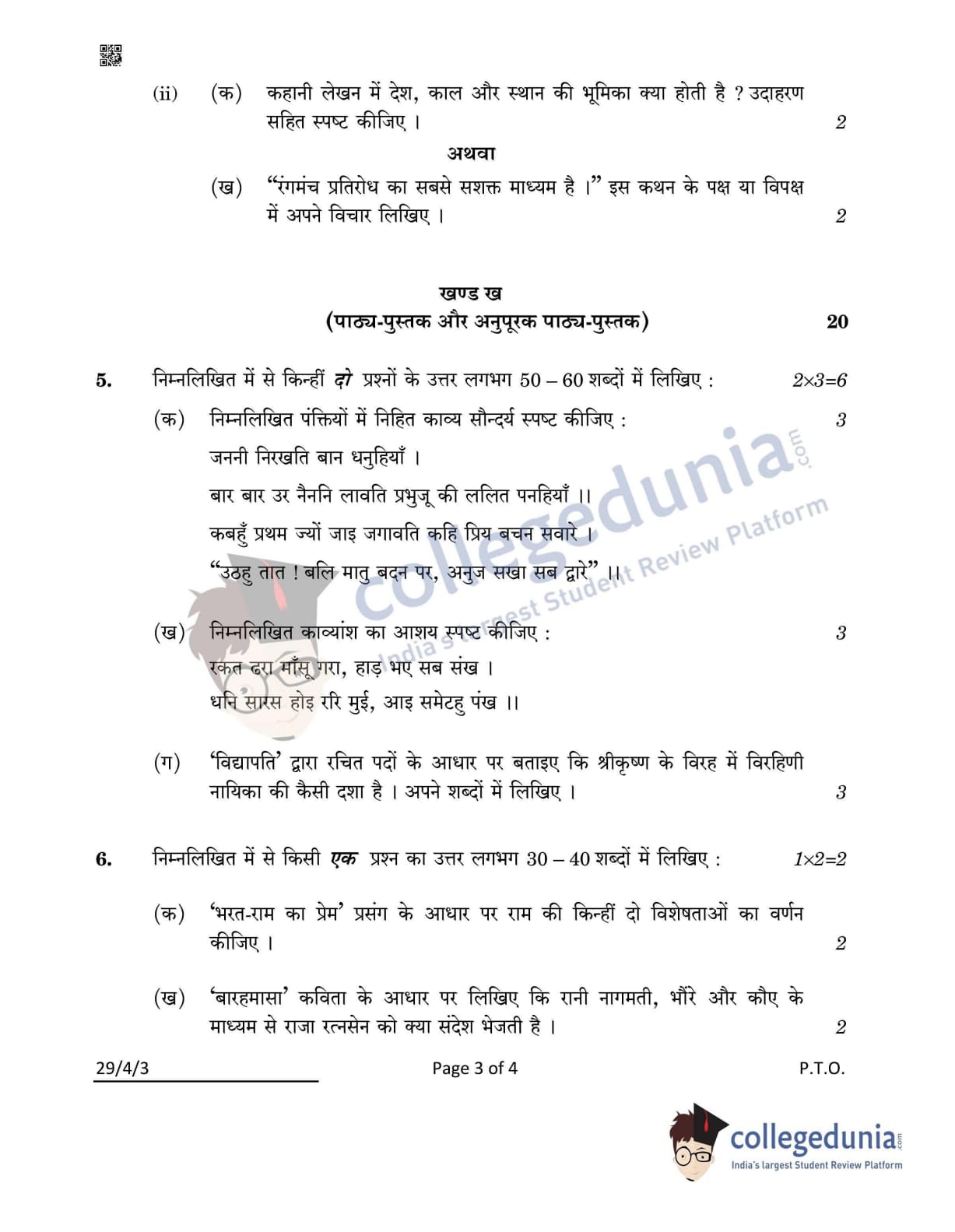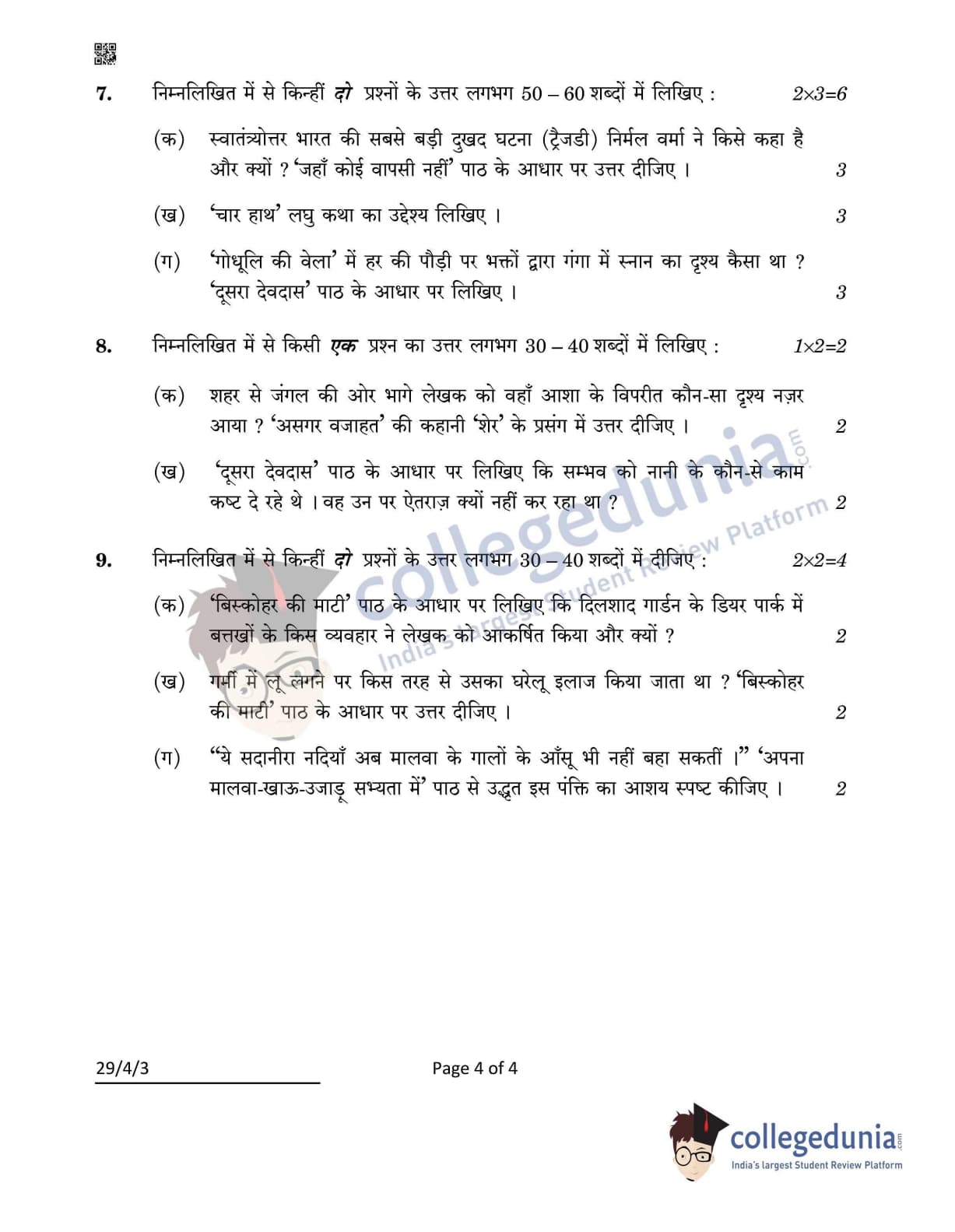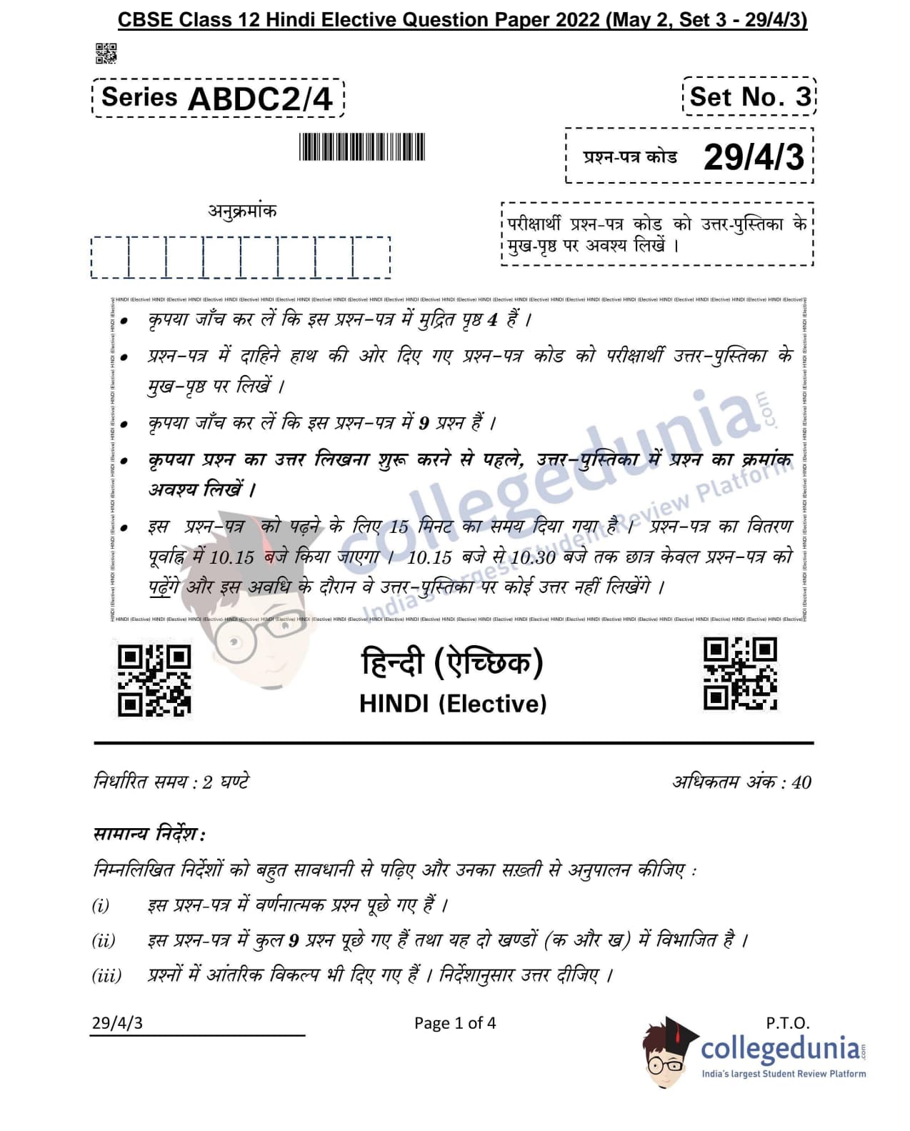 CBSE Class 12 Hindi Elective Set 3 - 29/4/3 Question Paper 2022 with Answer Key (May 2)