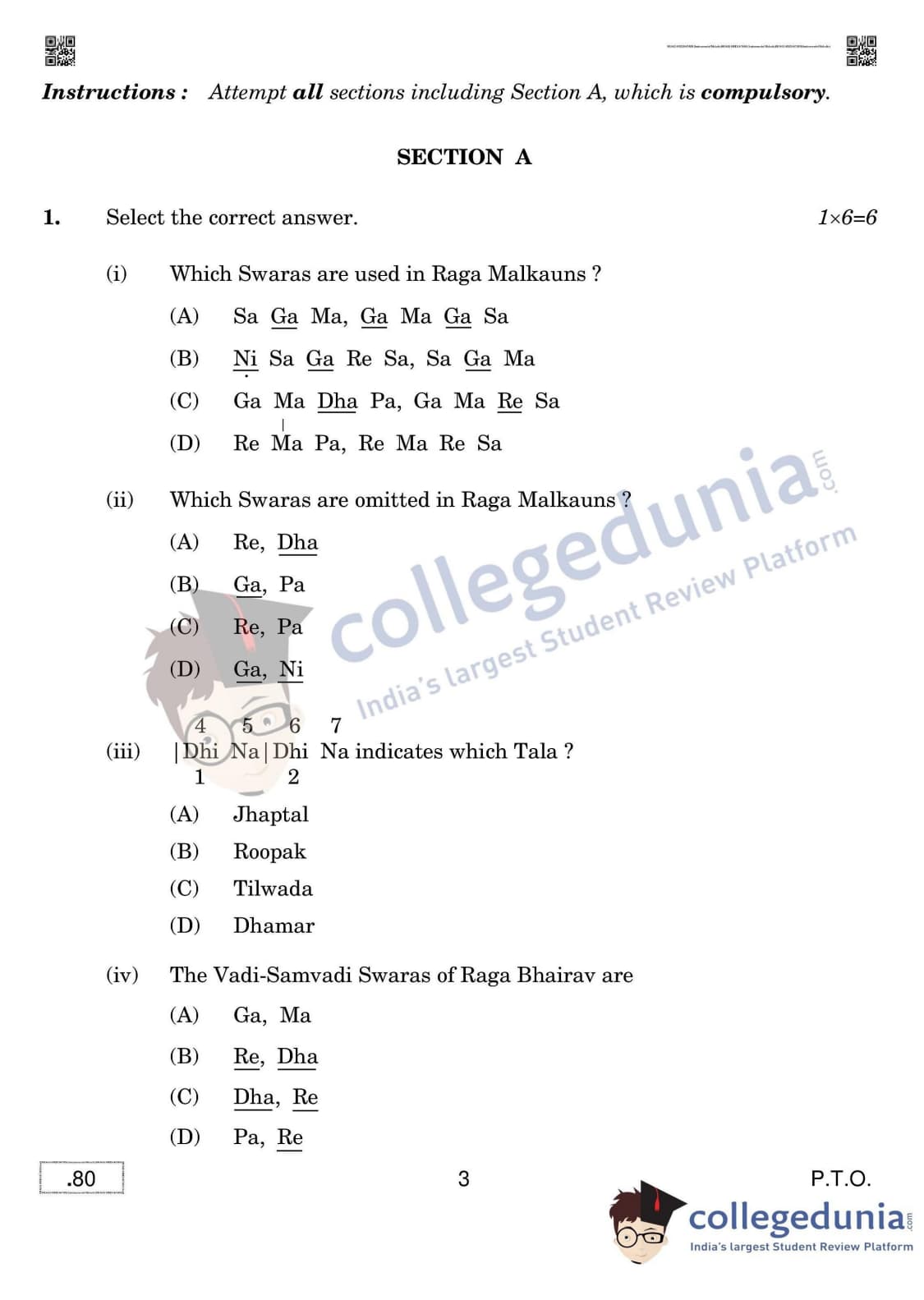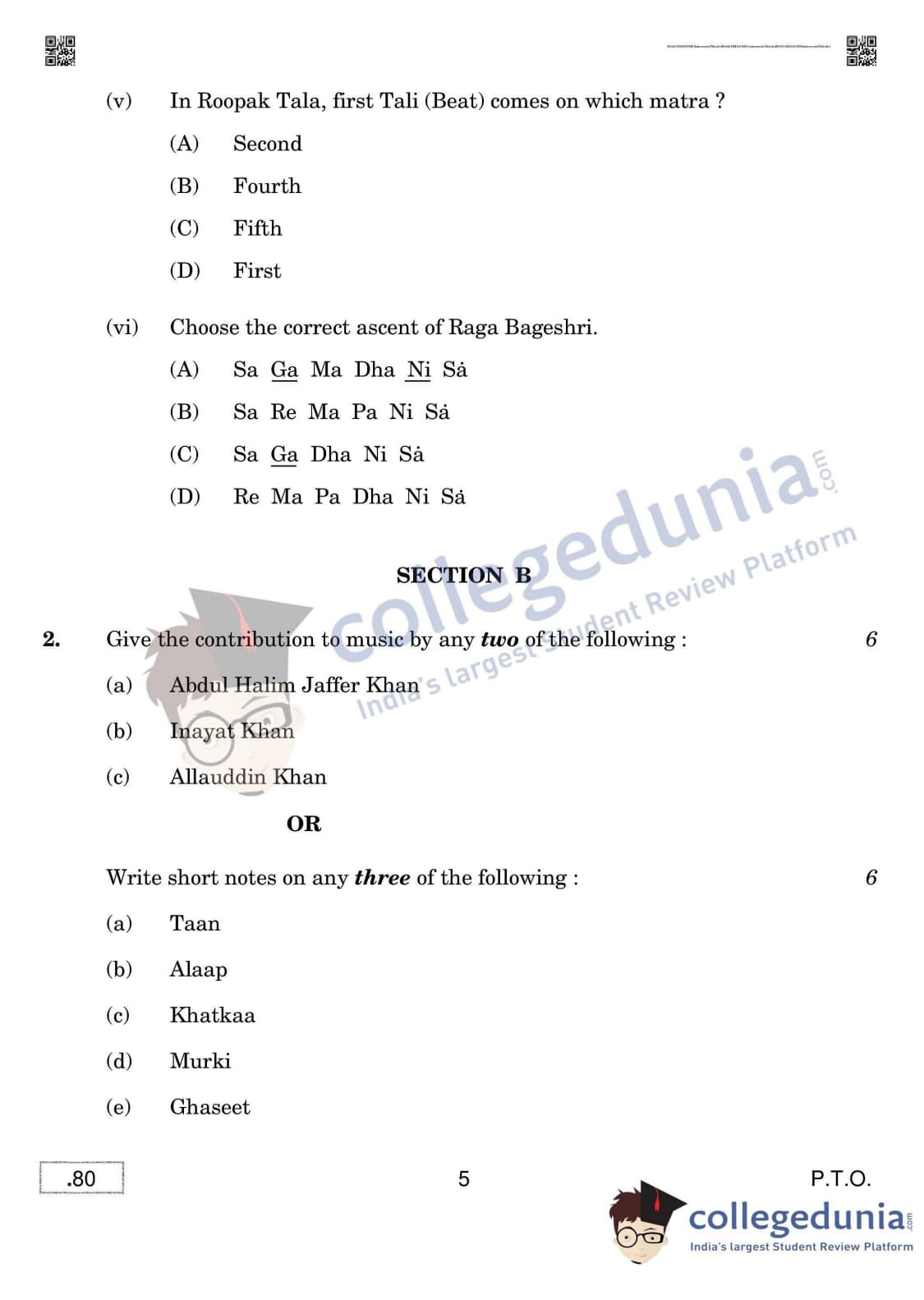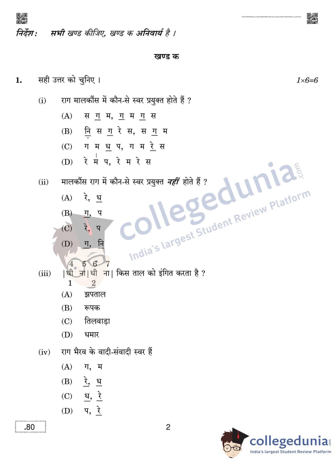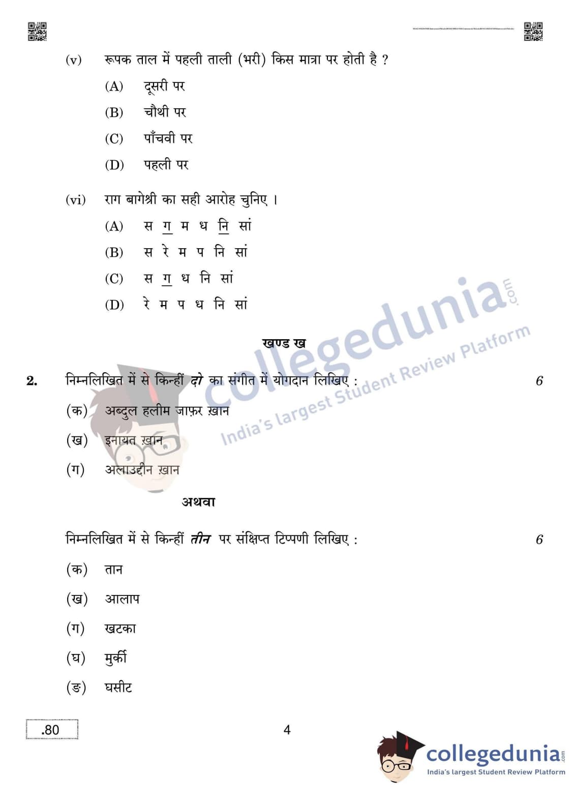 CBSE Class 12 Hindustani Music (Melodic Instruments) Question Paper 2020 with Answer Key Set 4 is available for download. The exam was conducted by the Central Board of Secondary Education on March 16, 2020 in the Morning Session 10:30 AM to 12:30 PM. The medium of paper was English & Hindi. The question paper comprised a total of 5 questions divided among 5 sections.