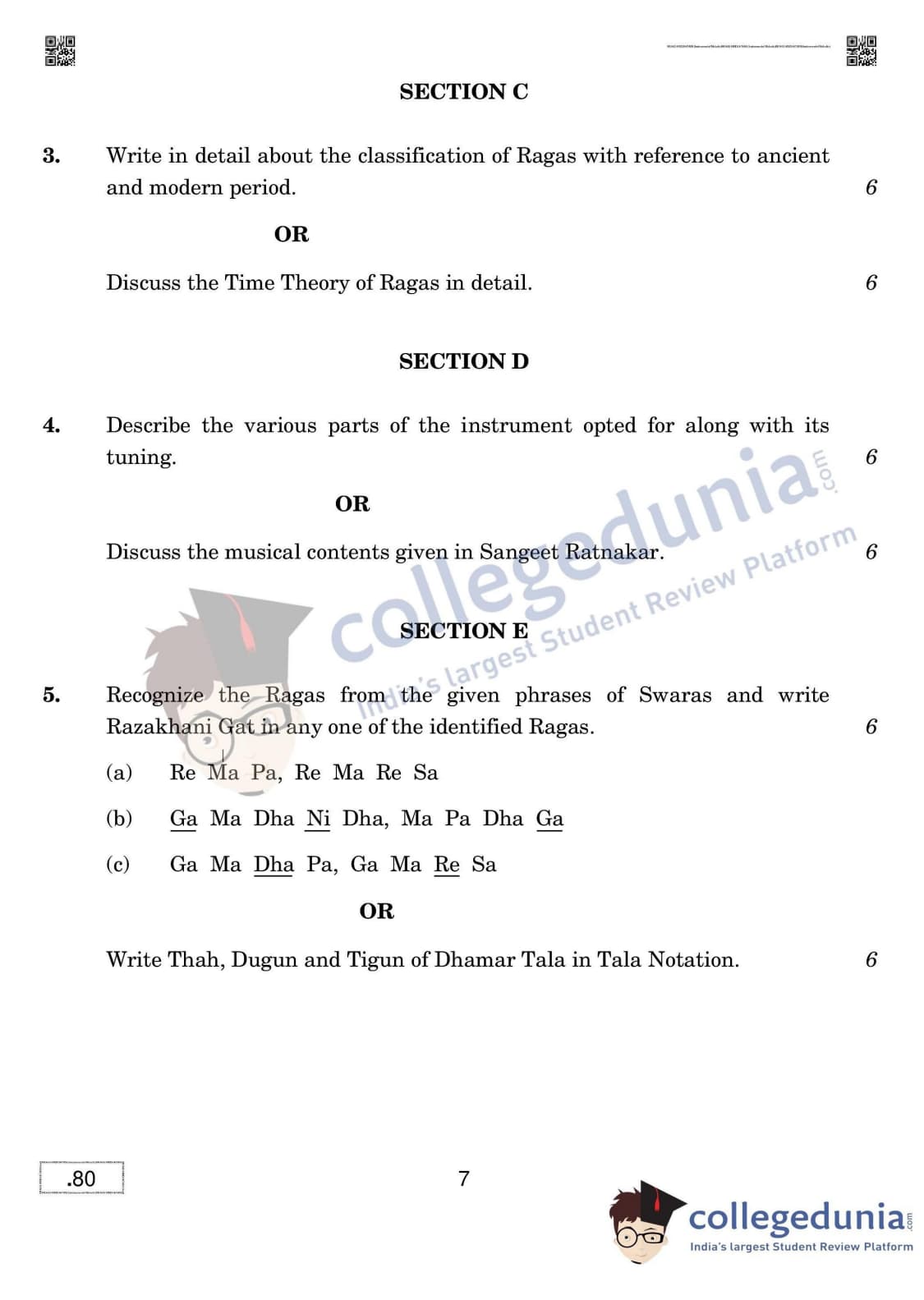CBSE Class 12 Hindustani Music (Melodic Instruments) Question Paper 2020 with Answer Key (March 16)