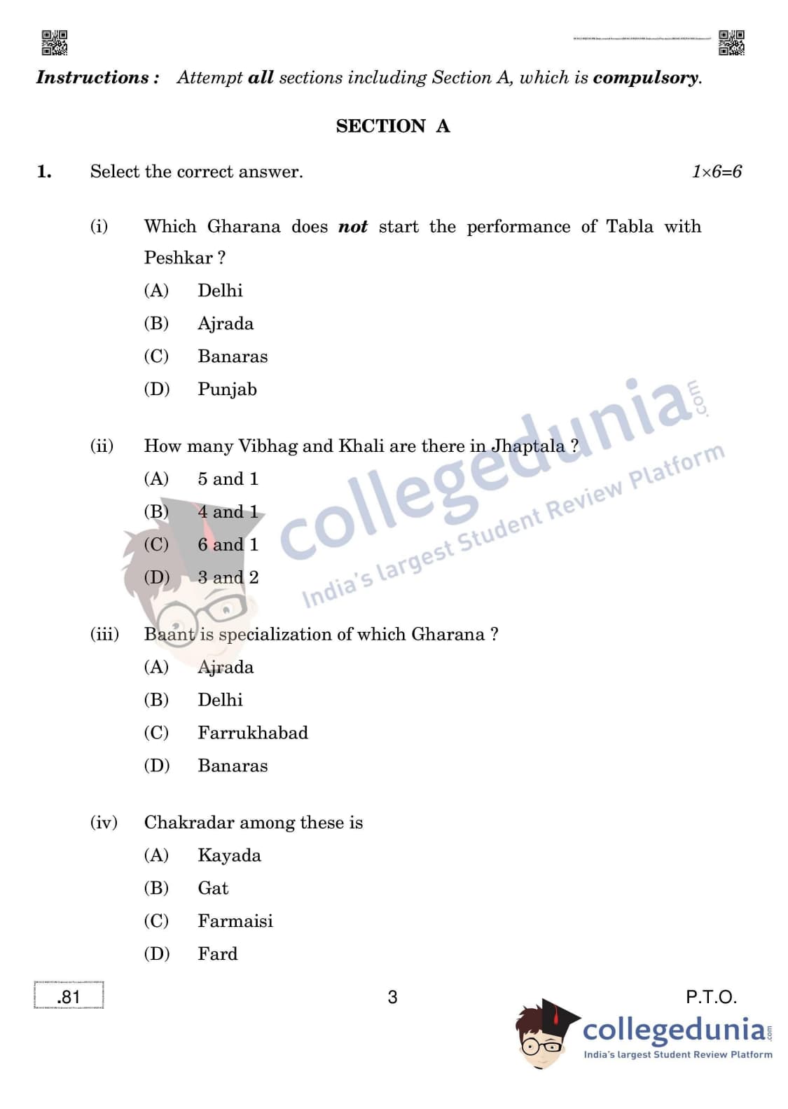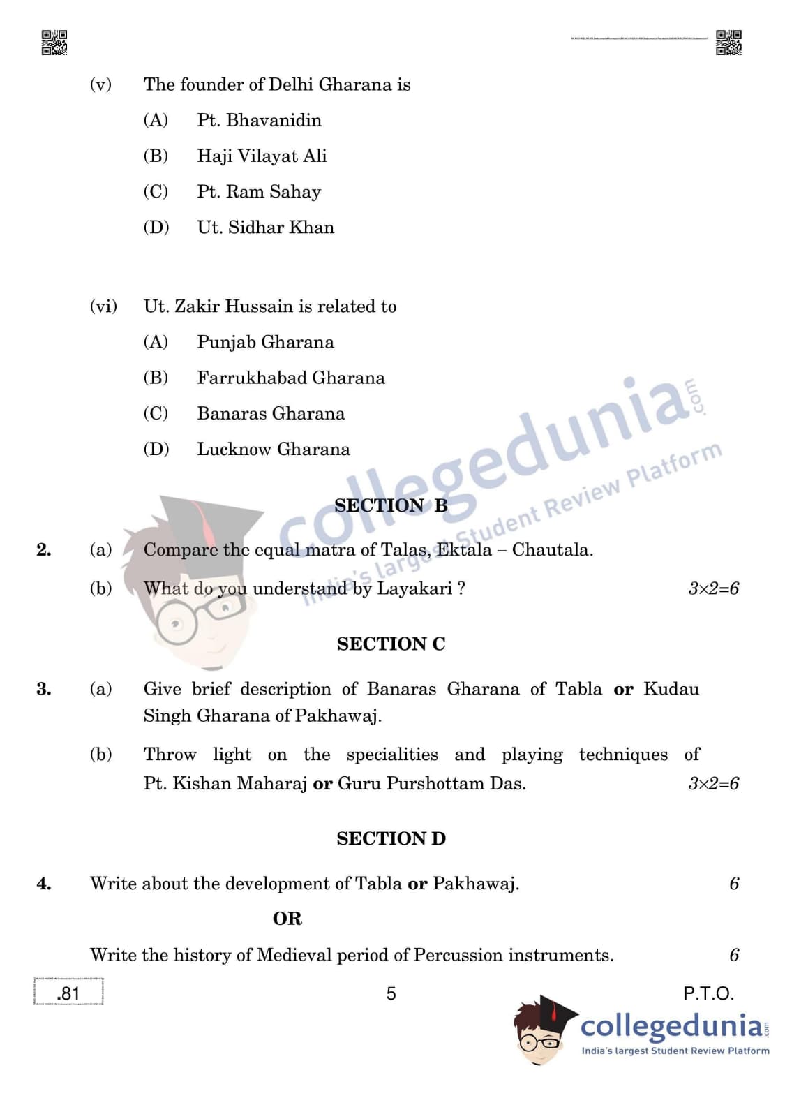 | CBSE Class 12 Hindustani Music (Percussion Instruments) Question Paper 2020 PDF | CBSE Class 12 Hindustani Music (Percussion Instruments) Answer Key 2020 PDF |