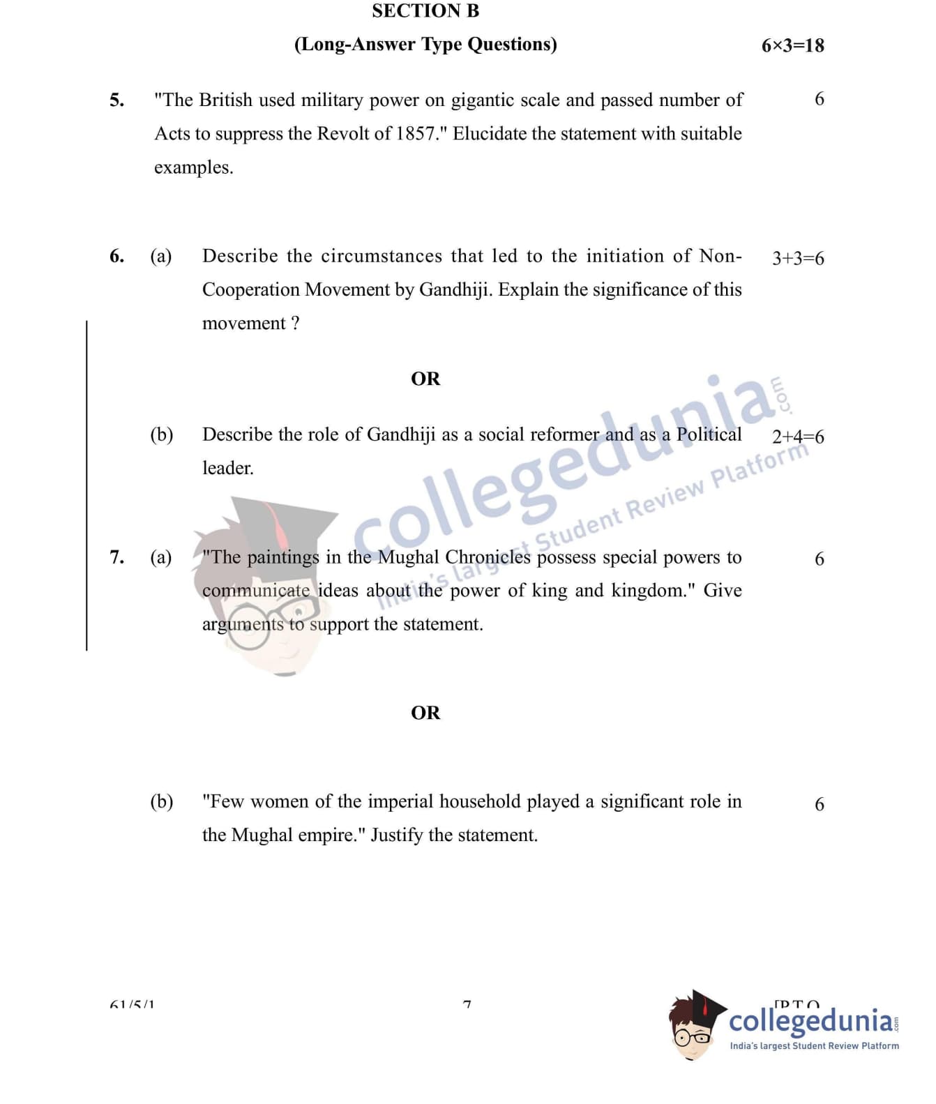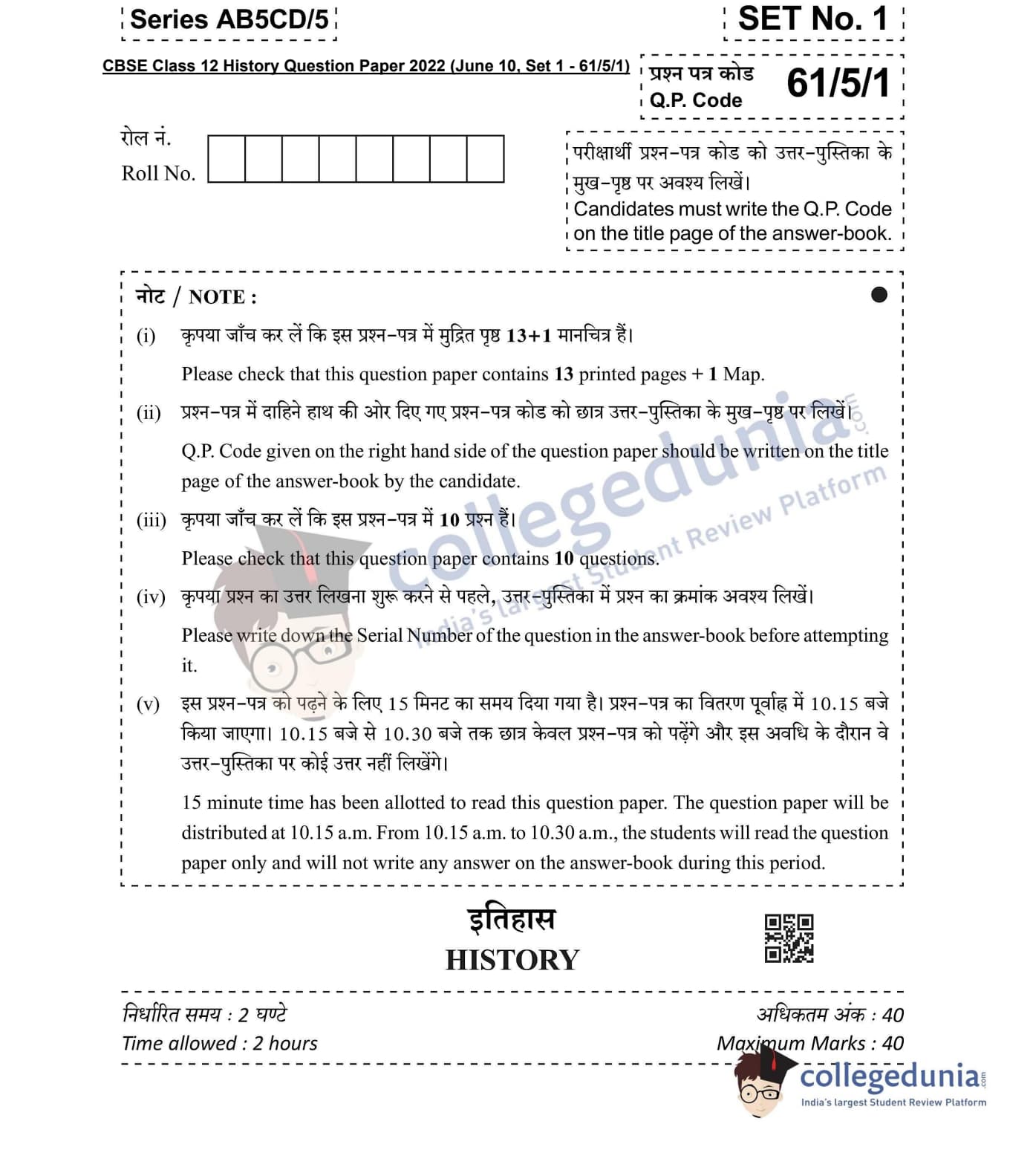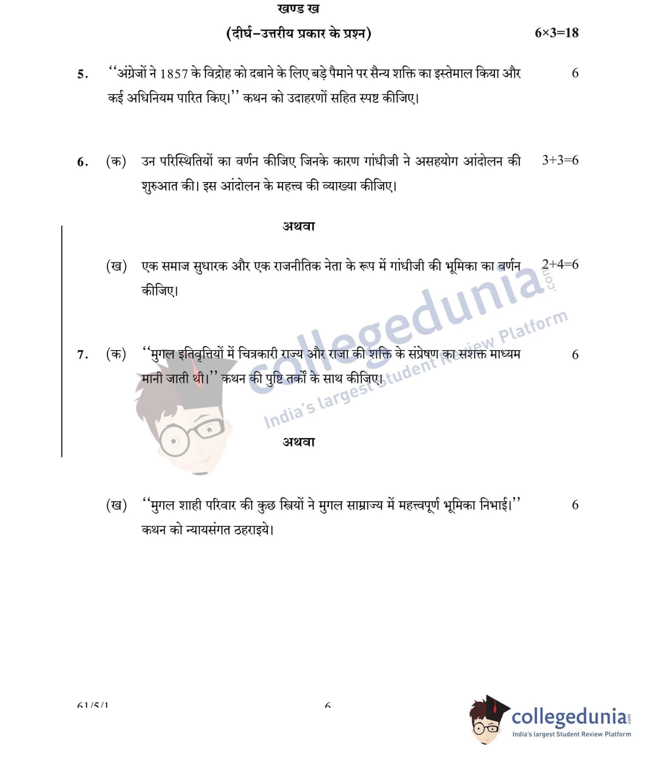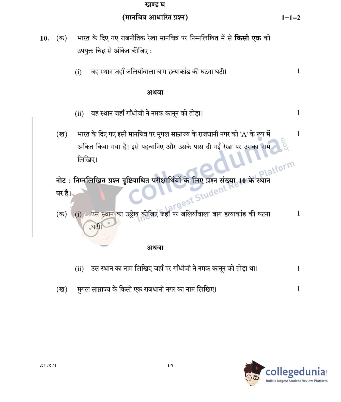 CBSE Class 12 History Set 1 - 61/5/1 Question Paper 2022 with Answer Key (June 10)