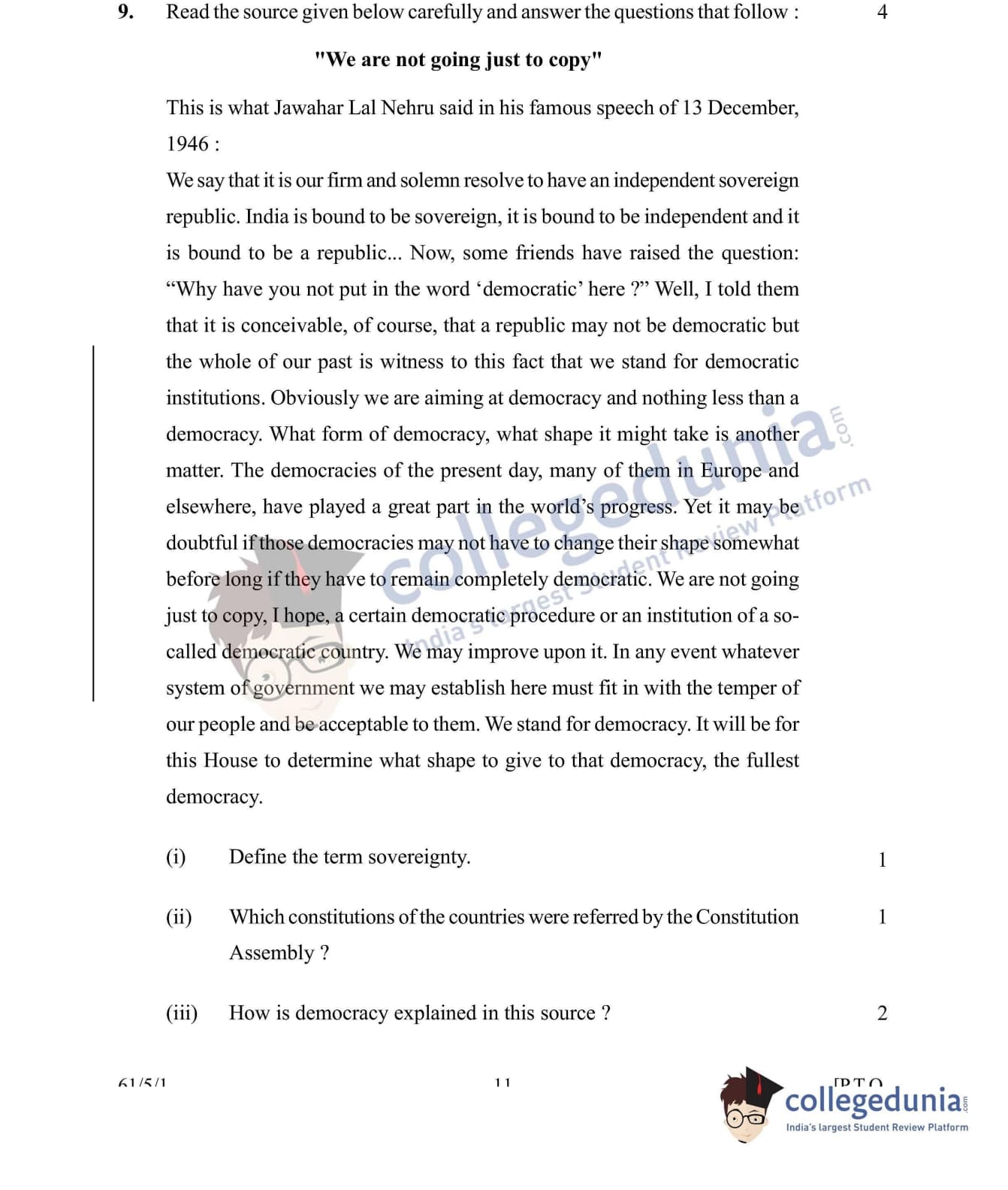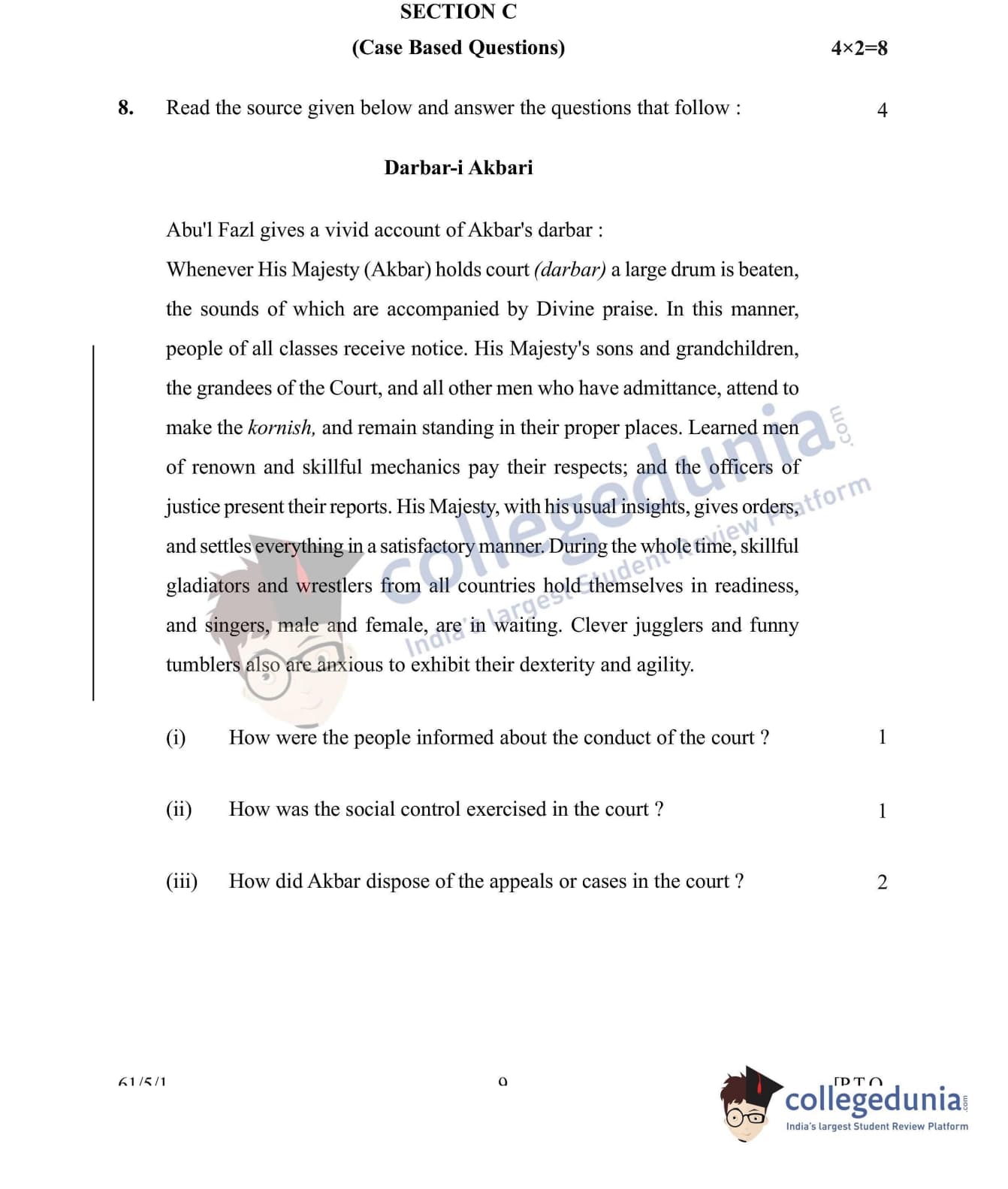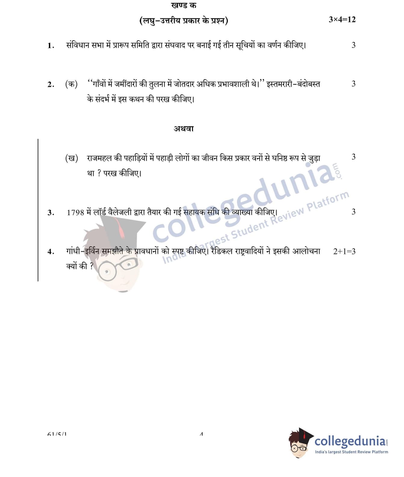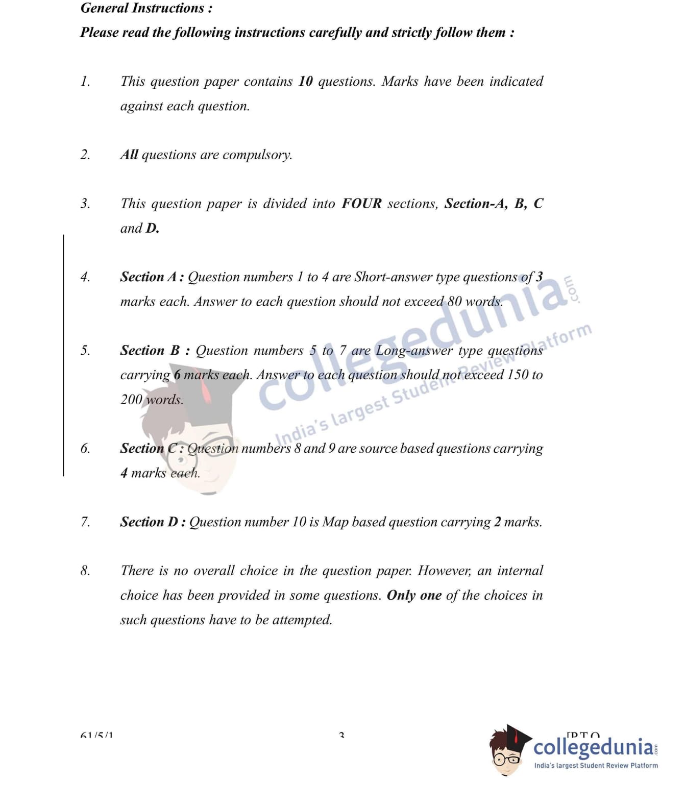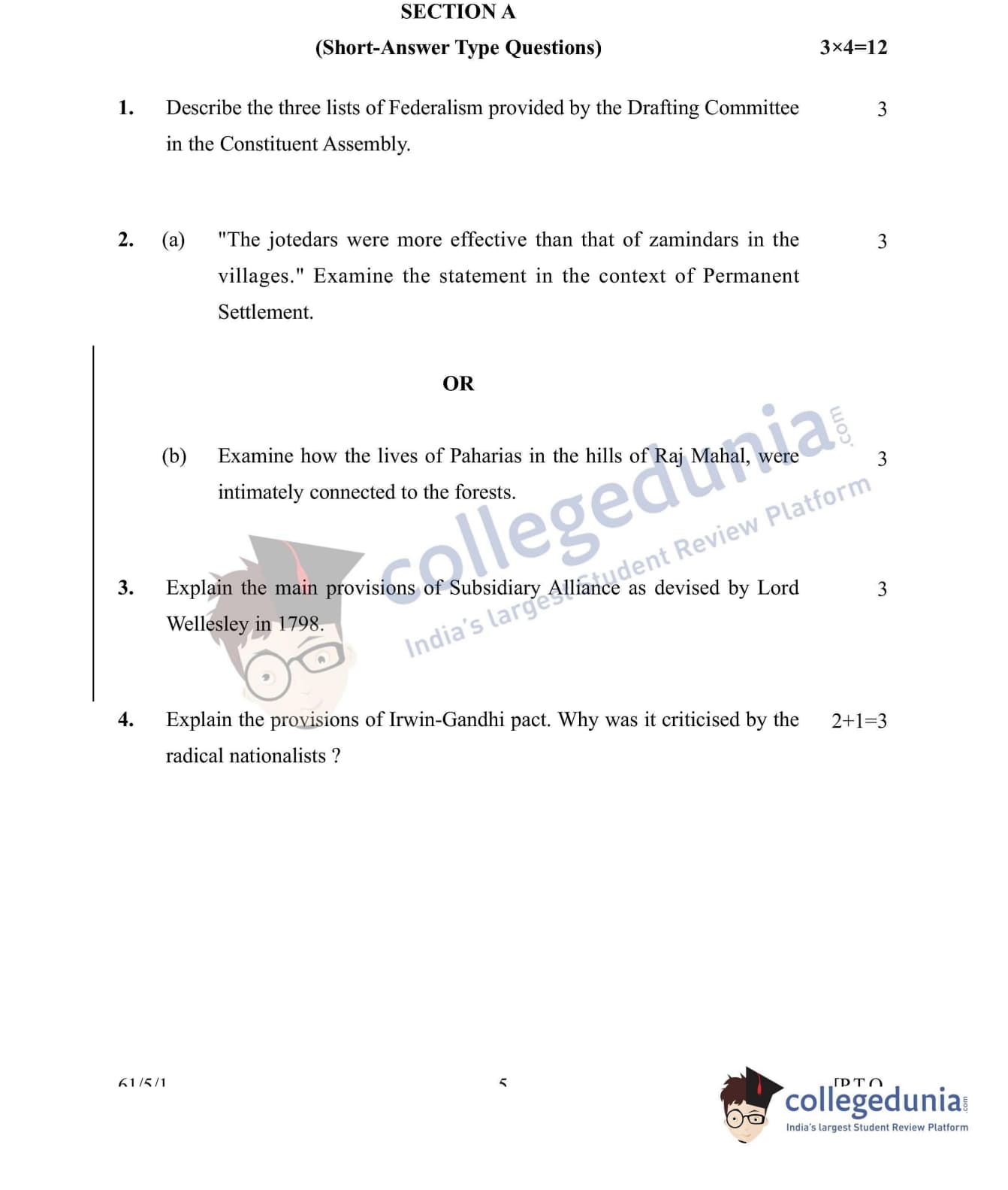 CBSE Class 12 History Set 1 - 61/5/1 Question Paper 2022 with Answer Key (June 10)